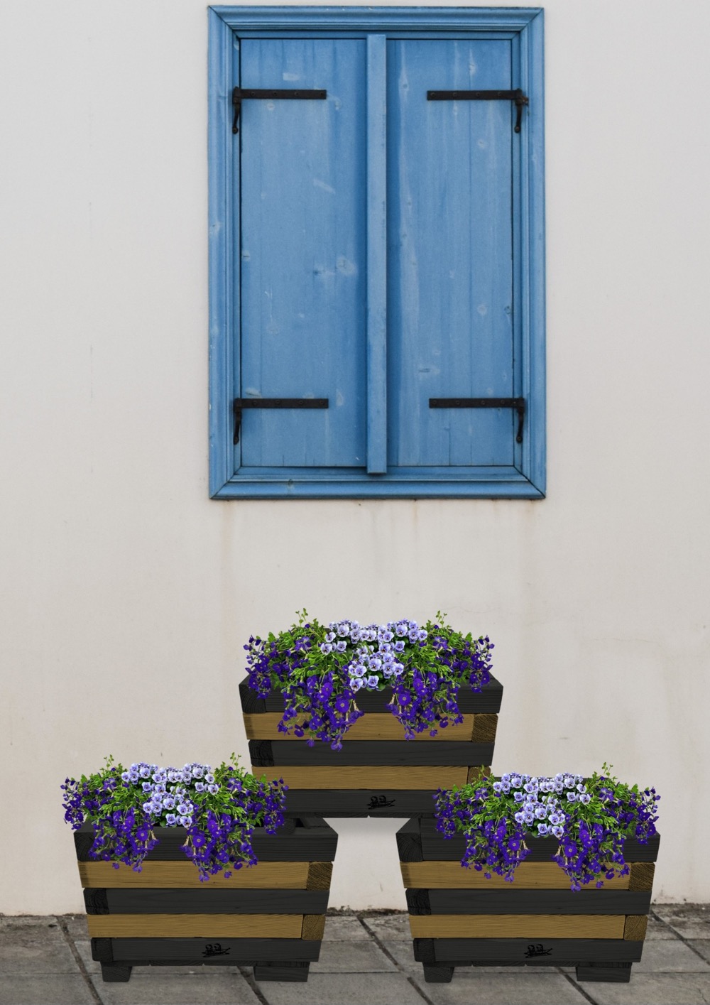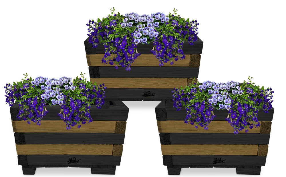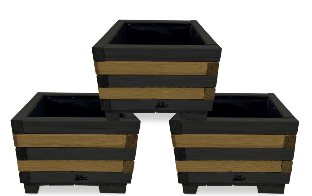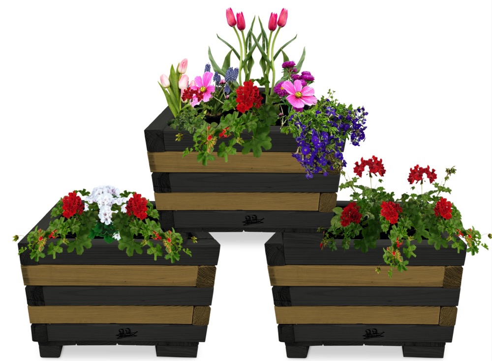 Donica z drewna doniczki kwadratowe 3 szt. kaskada kwiatowa kwietnik ozdobny do domu i ogrodu KASKADA4 CZ DEB