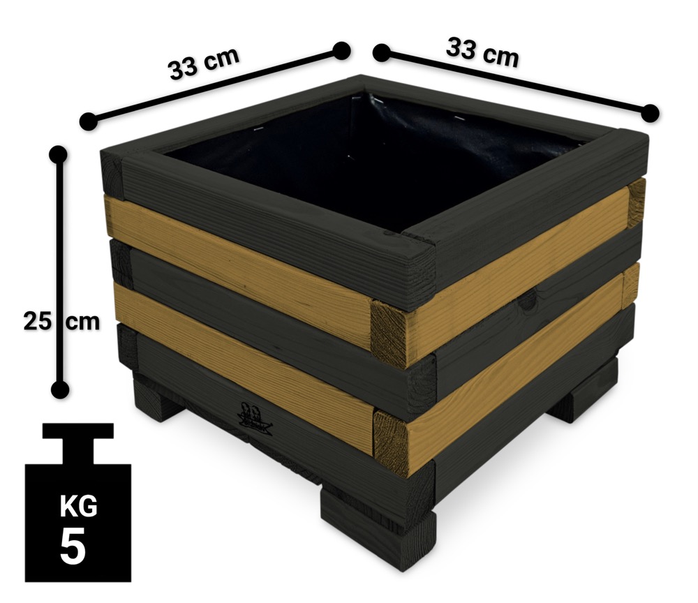 Donica wykonana została w całości z impregnowanego ekologicznie drewna. Dzięki temu uzyskała trwałość i odporność na szkodliwe działanie wody oraz wilgoci, promieni UV, grzybów i pleśni.