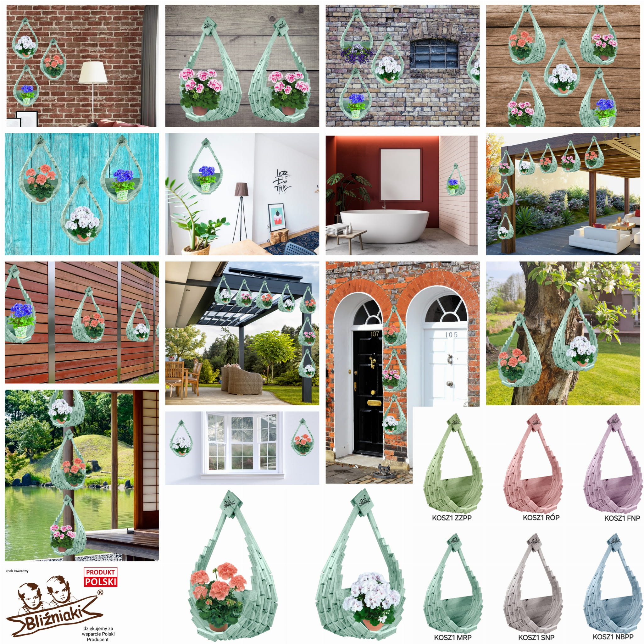 Kosz może zostać w łatwy sposób powieszony na elementach budynku, w ogrodzie, na pergolach lub postawiony na tarasie, w ogrodzie, w obejściu domu lub wewnątrz domu.