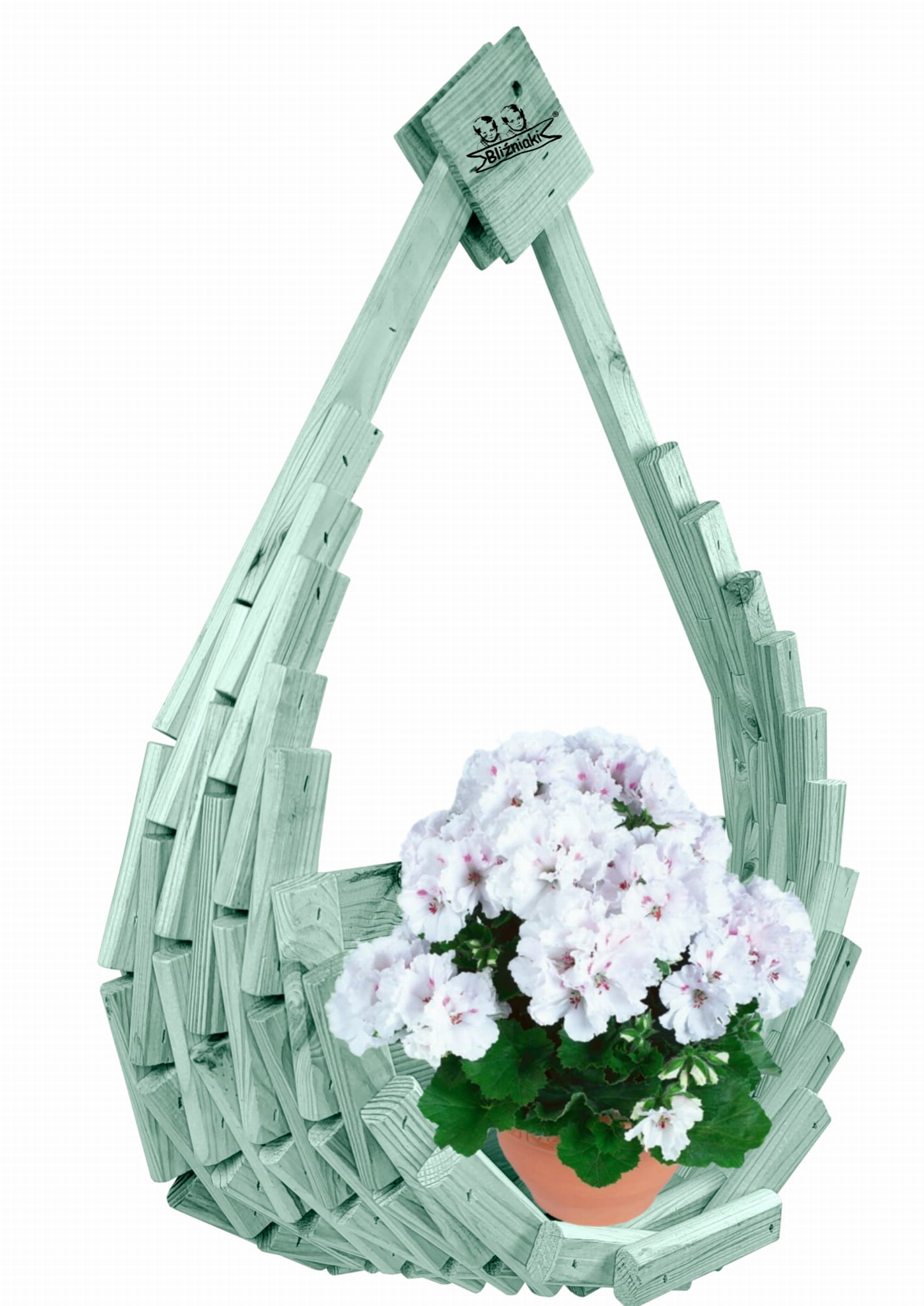 Elegancki drewniany kosz to miejsce na ulubione kwiaty m.in pelargonie, bratki, ale też wszystkie kwiaty wiszące, które dopiero z naszym produktem otrzymają należną im ekspozycję.