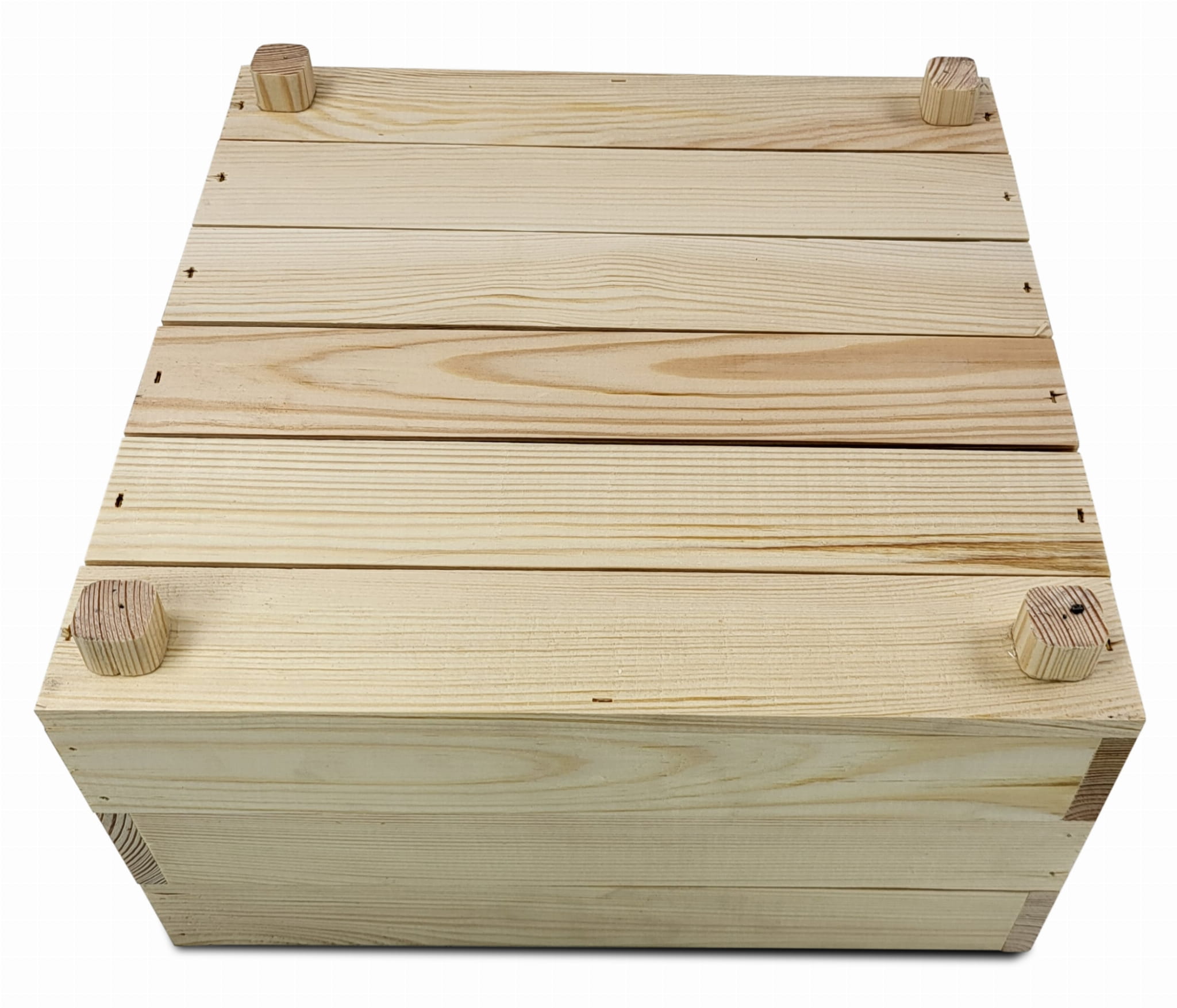 - Skrzynka posiada nóżki, które izolują ją od podłoża, chroniąc drewno przed wilgocią i innymi czynnikami zewnętrznymi