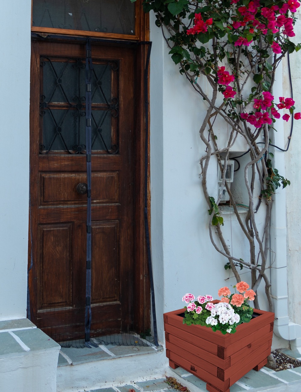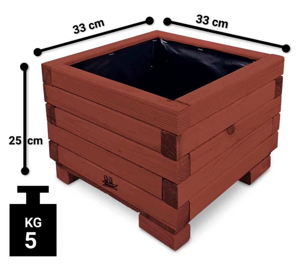 Donica wykonana została w całości z impregnowanego ekologicznie drewna. Dzięki temu uzyskała trwałość i odporność na szkodliwe działanie wody oraz wilgoci, promieni UV, grzybów i pleśni. Wewnątrz wyłożona jest specjalną folią, która nie tylko chroni drewno, ale również zapewnia utrzymanie wilgotnego podłoża jednocześnie umożliwiając swobodny rozwój roślin.