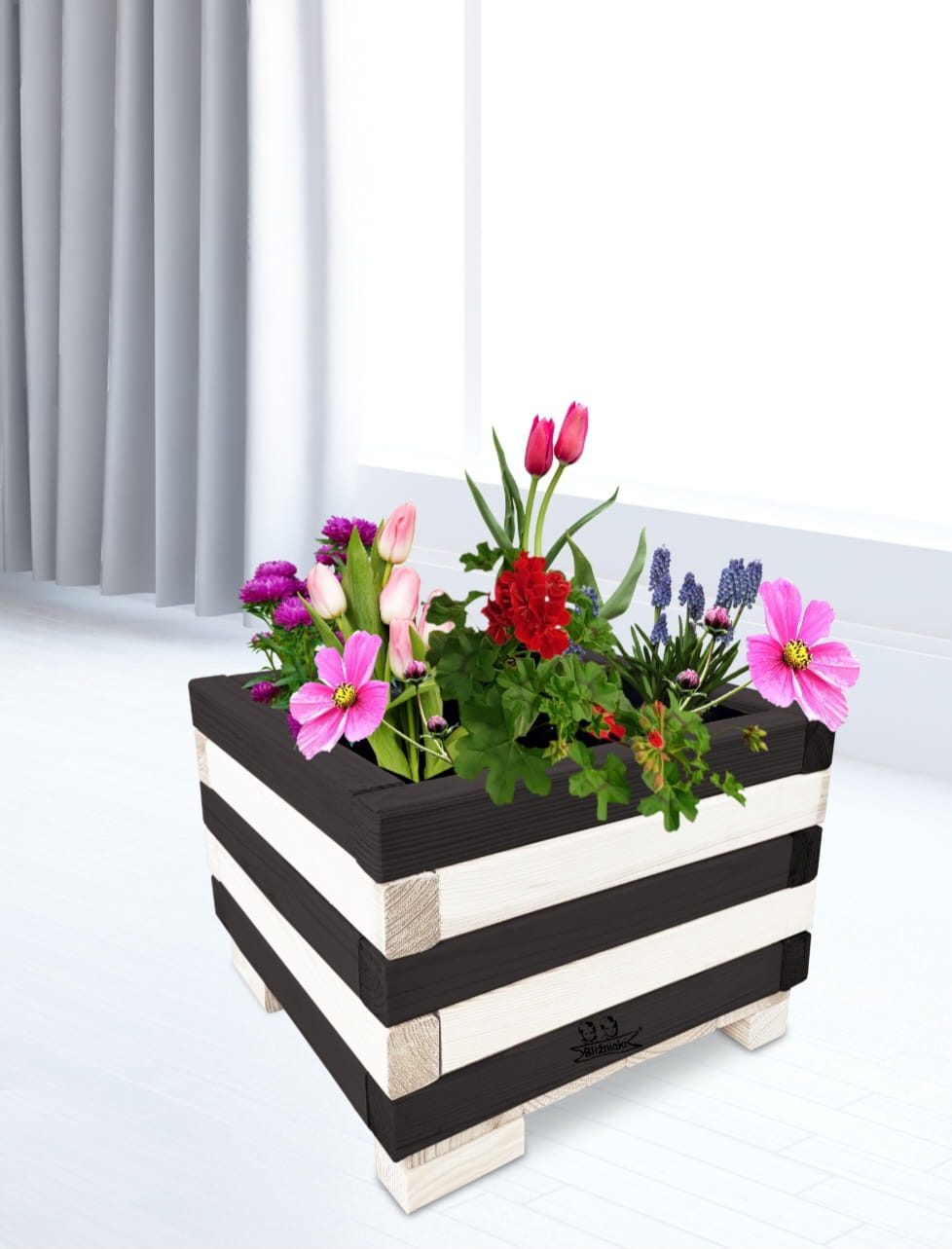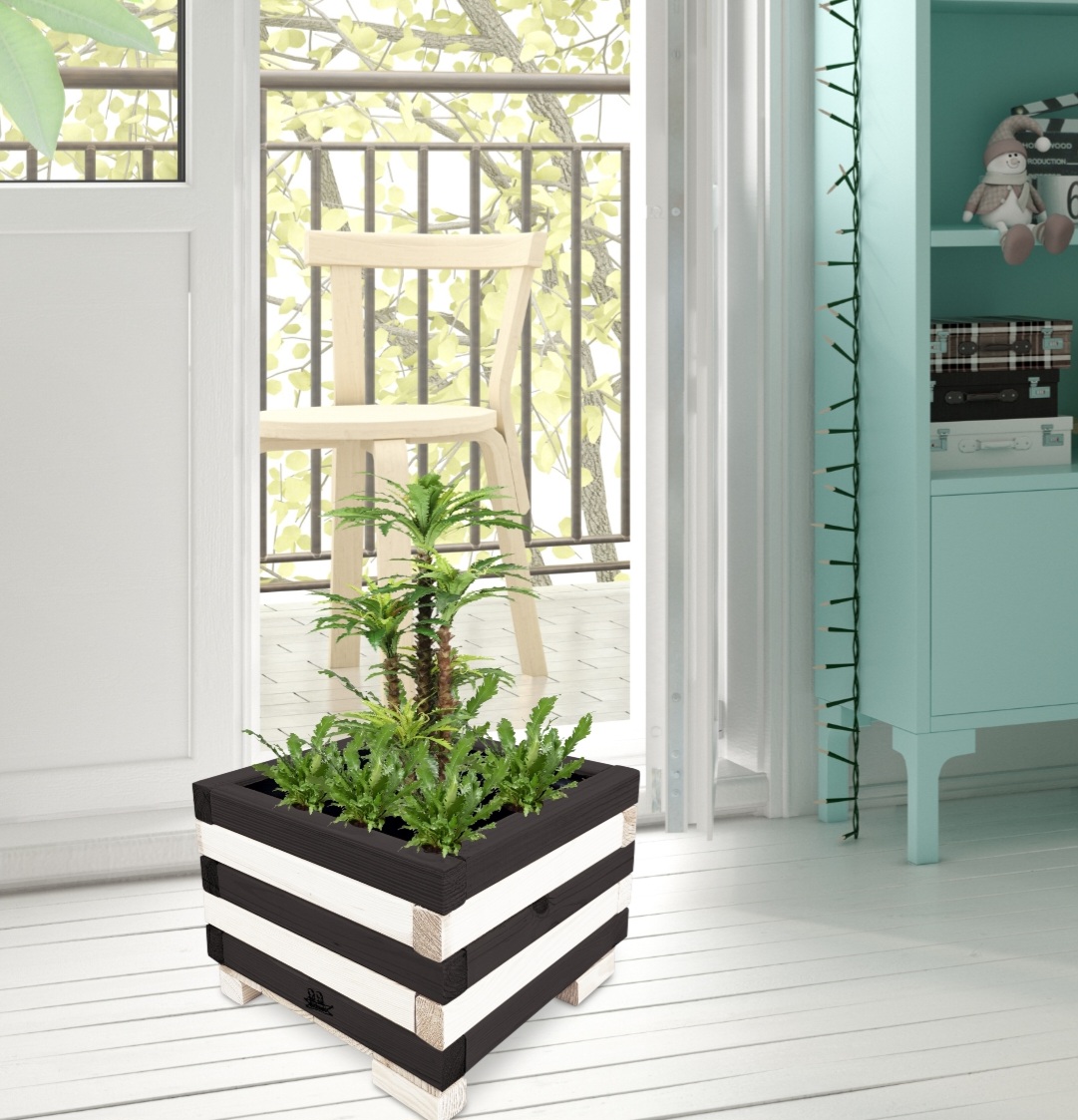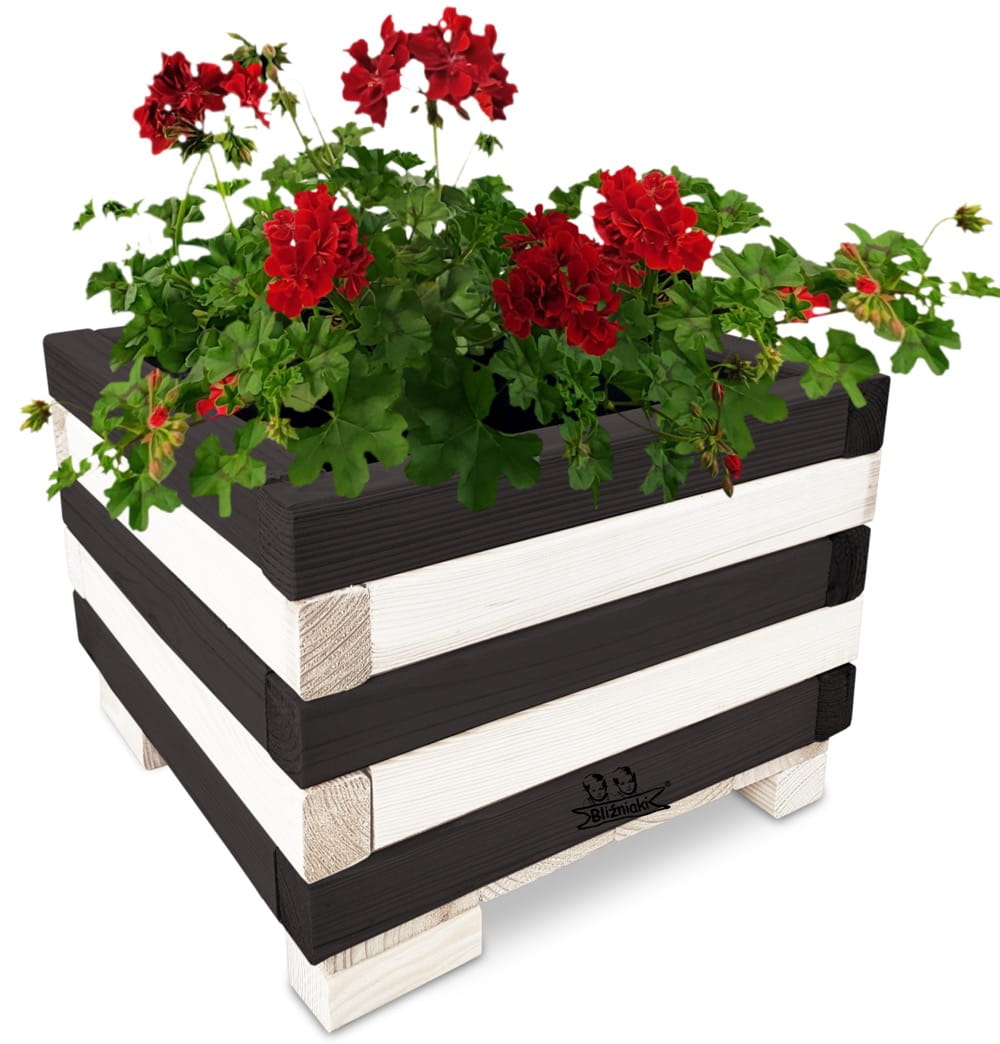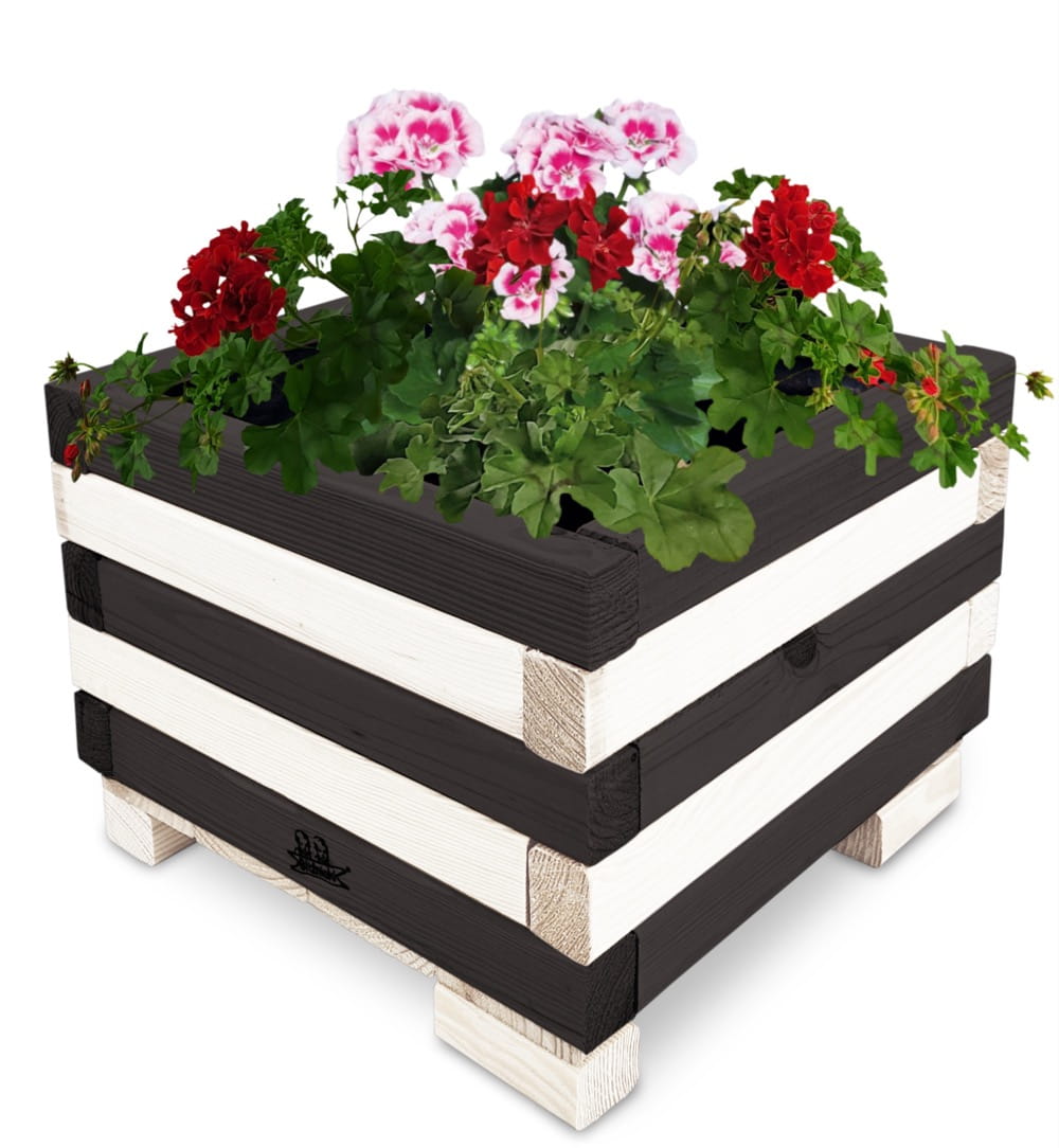 Doniczka kwadratowa z drewna litego zebra warzywniak skrzynka na kwiaty DONICA1 BI CZ