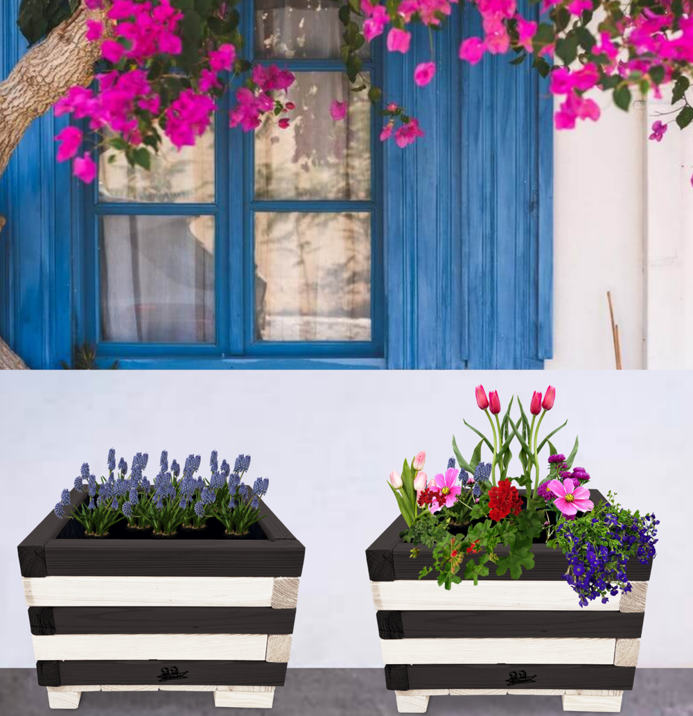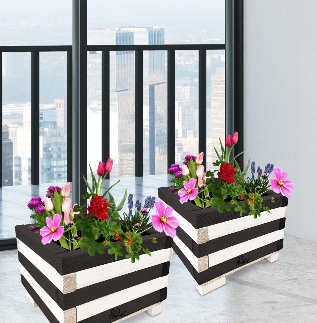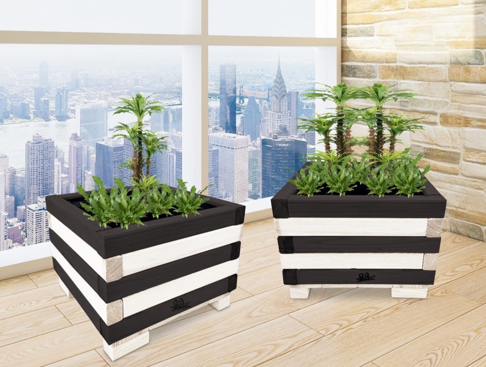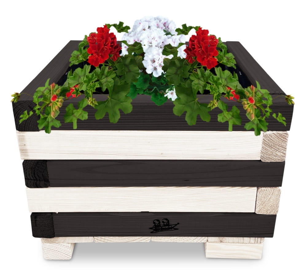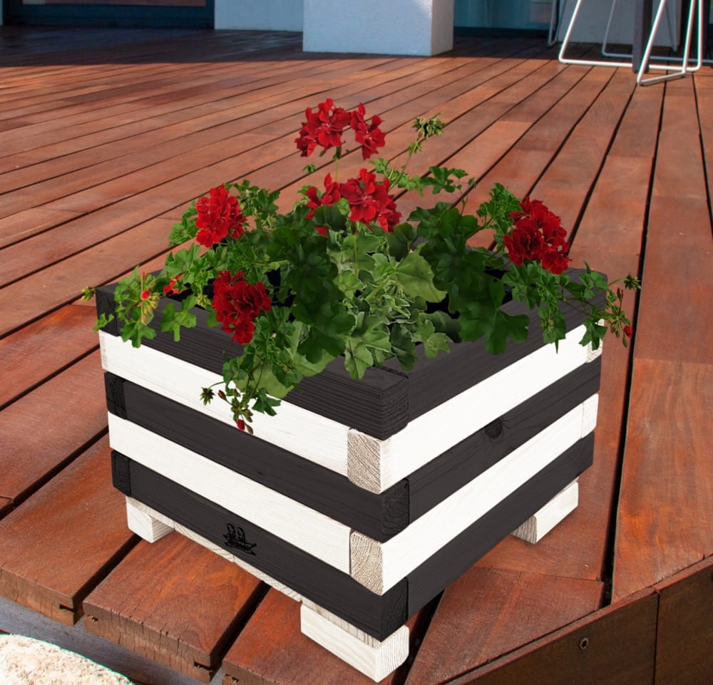 Doniczka kwadratowa z drewna litego zebra warzywniak skrzynka na kwiaty DONICA1 BI CZ