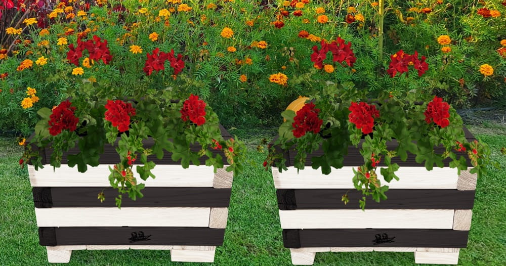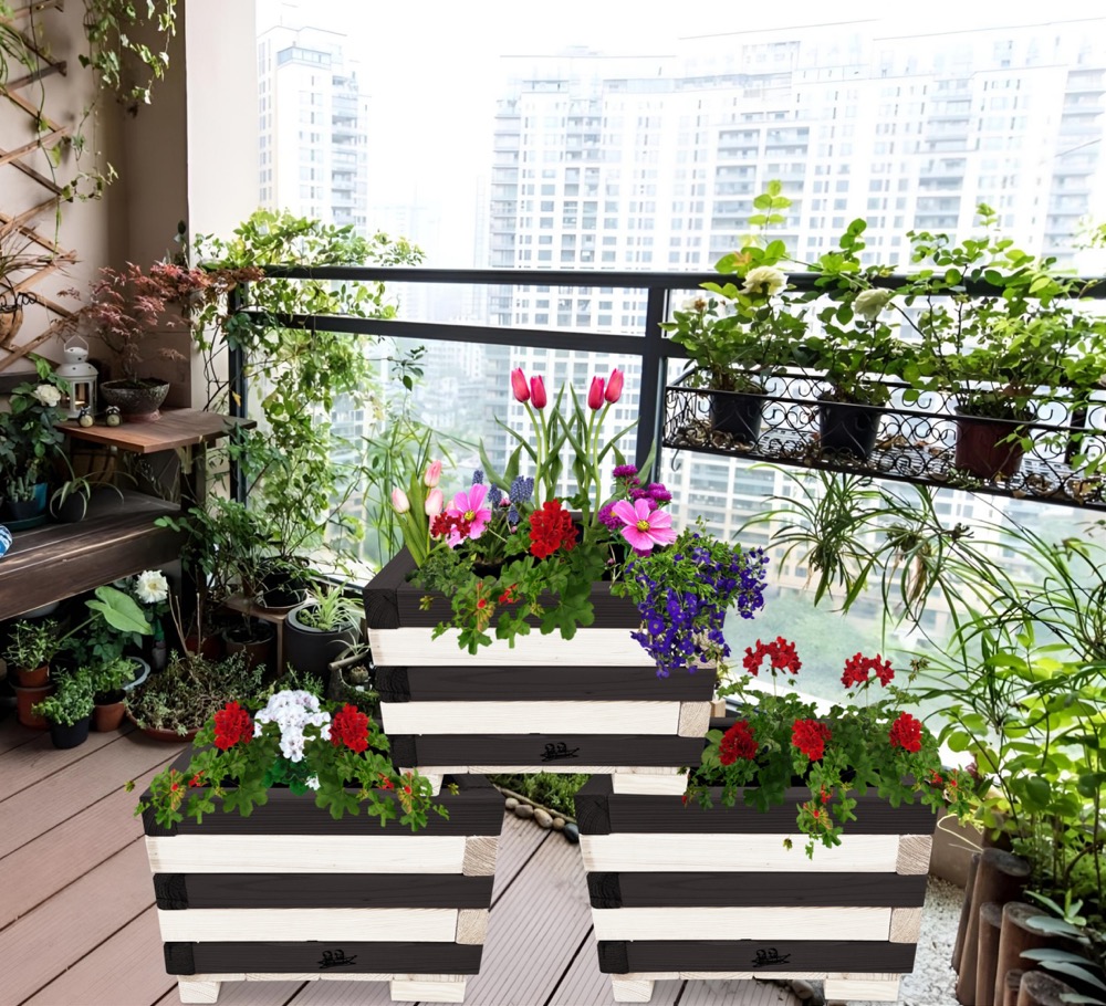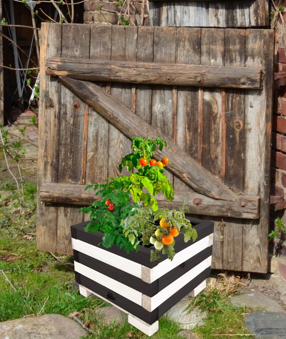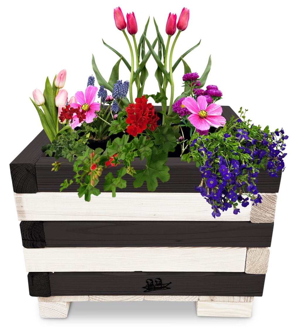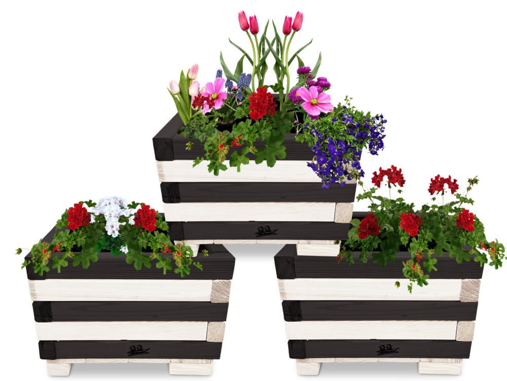 Doniczka kwadratowa z drewna litego zebra warzywniak skrzynka na kwiaty DONICA1 BI CZ