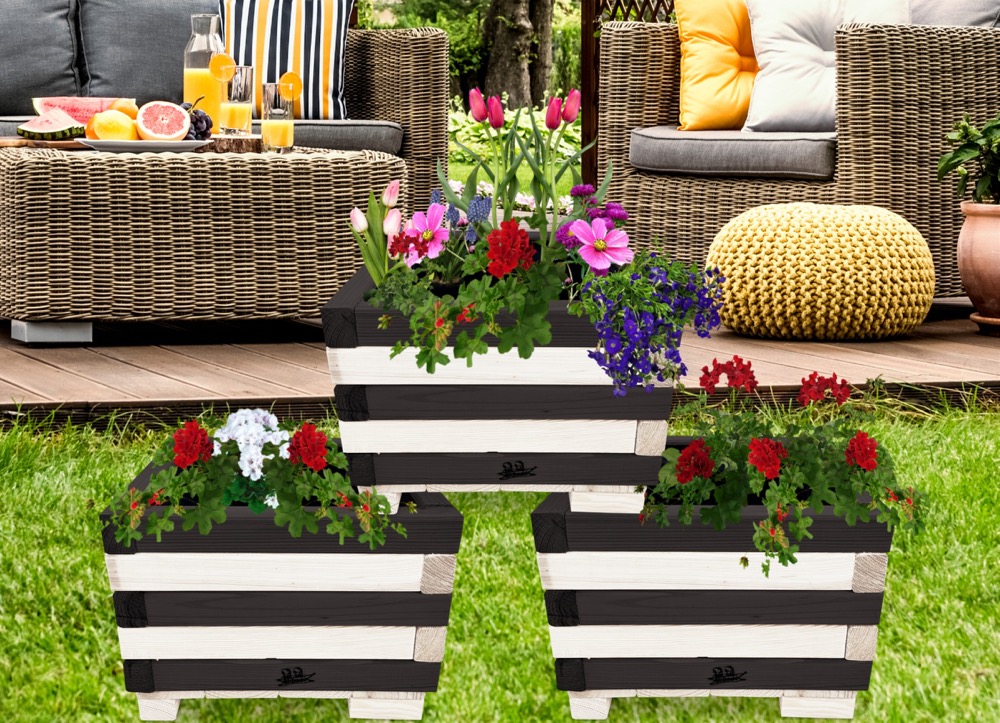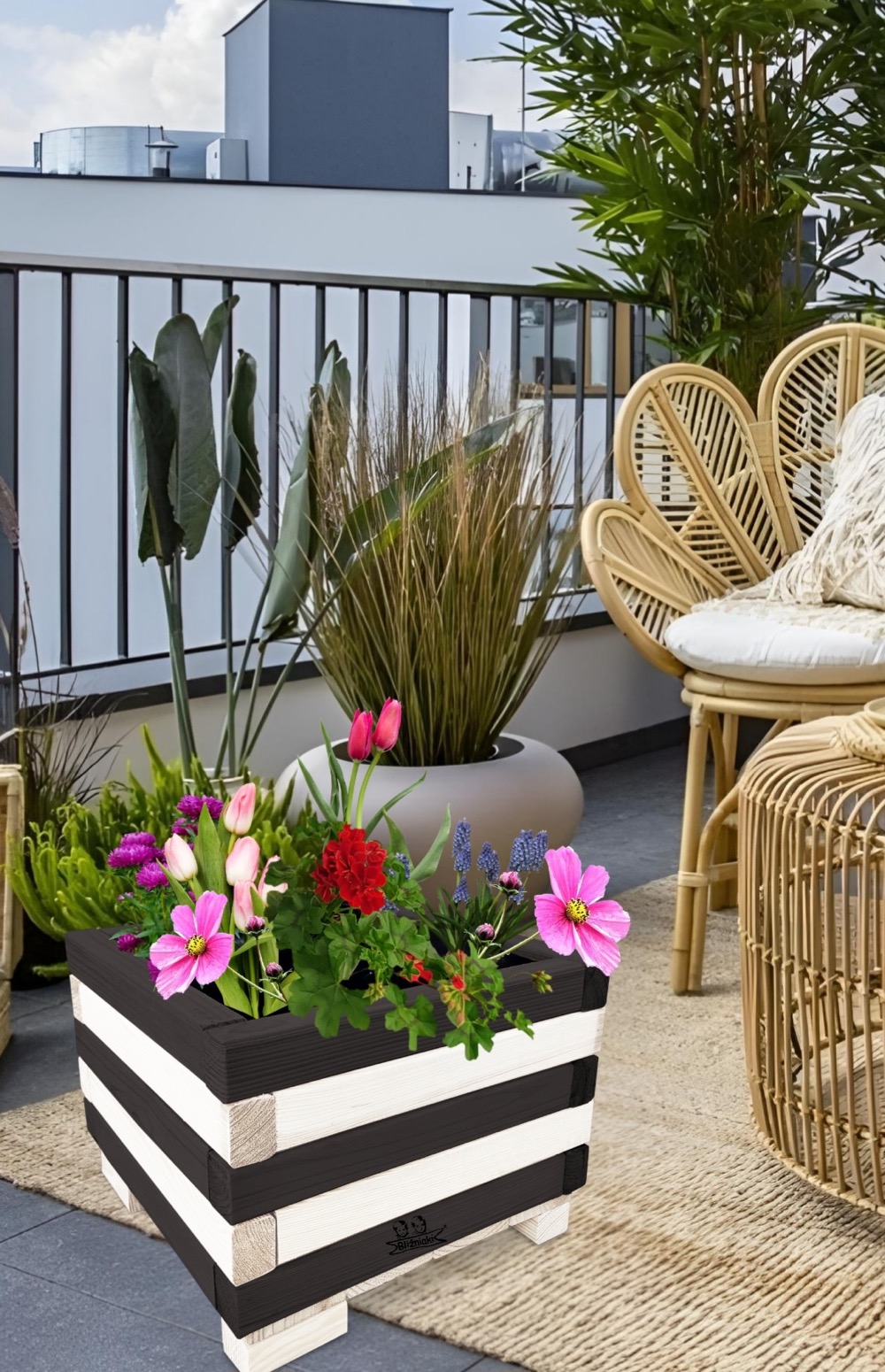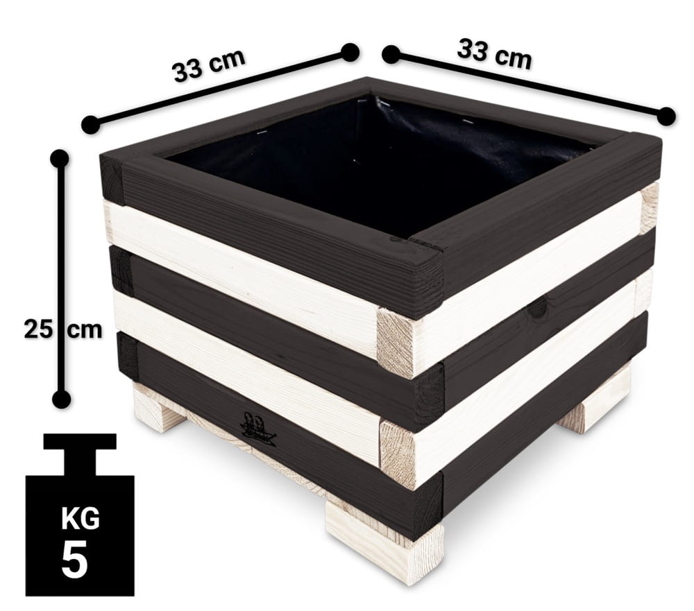 Szukasz wyjątkowego dodatku do swojego ogrodu, tarasu lub balkonu? Drewniana donica DONICA1 BI CZ w czarno-białe paski to niezwykle estetyczne i funkcjonalne rozwiązanie dla każdego miłośnika natury. Wykonana z wysokiej jakości drewna, łączy w sobie ponadczasowy, prosty design, trwałość oraz praktyczność