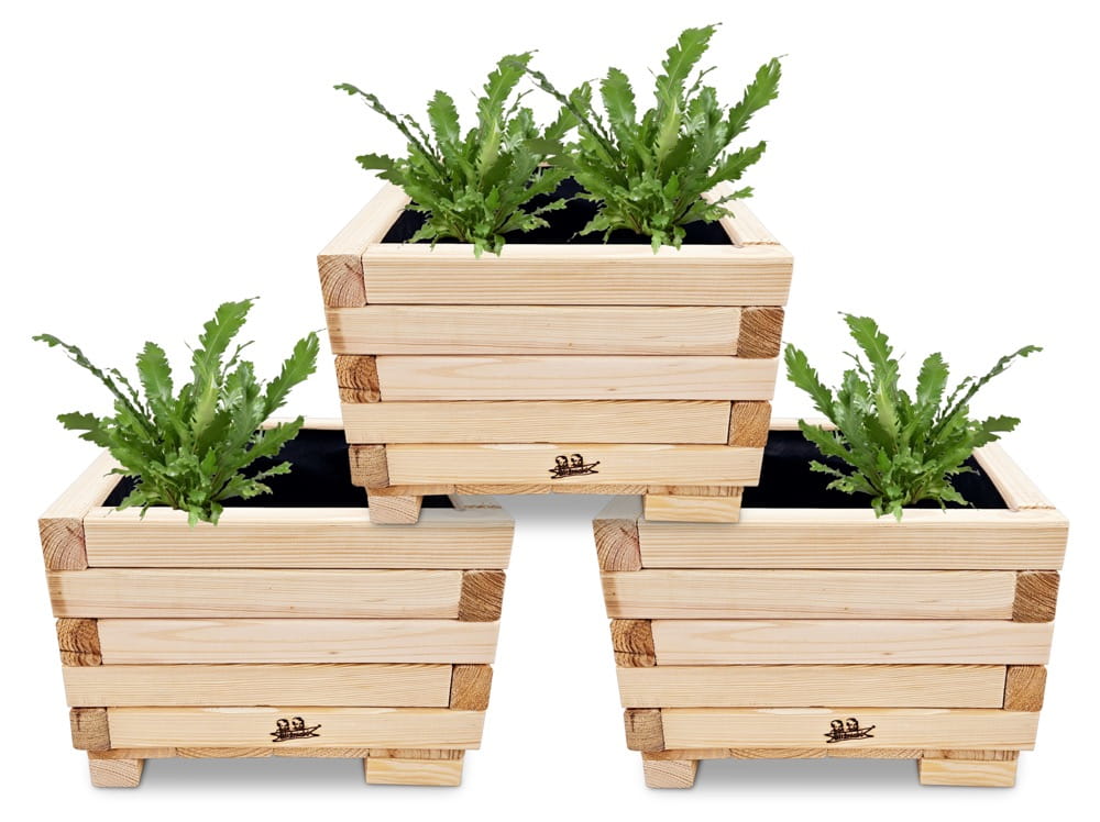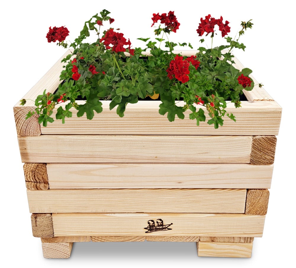 Donica wykonana została z naturalnego, nieimpregnowanego drewna. Jej ekologiczny charakter sprawia, że jest przyjazna dla środowiska i ulega naturalnemu rozkładowi po zakończeniu użytkowania. Dodatkowo lepiej komponuje się z otoczeniem, wprowadzając naturalny akcent do ogrodu.