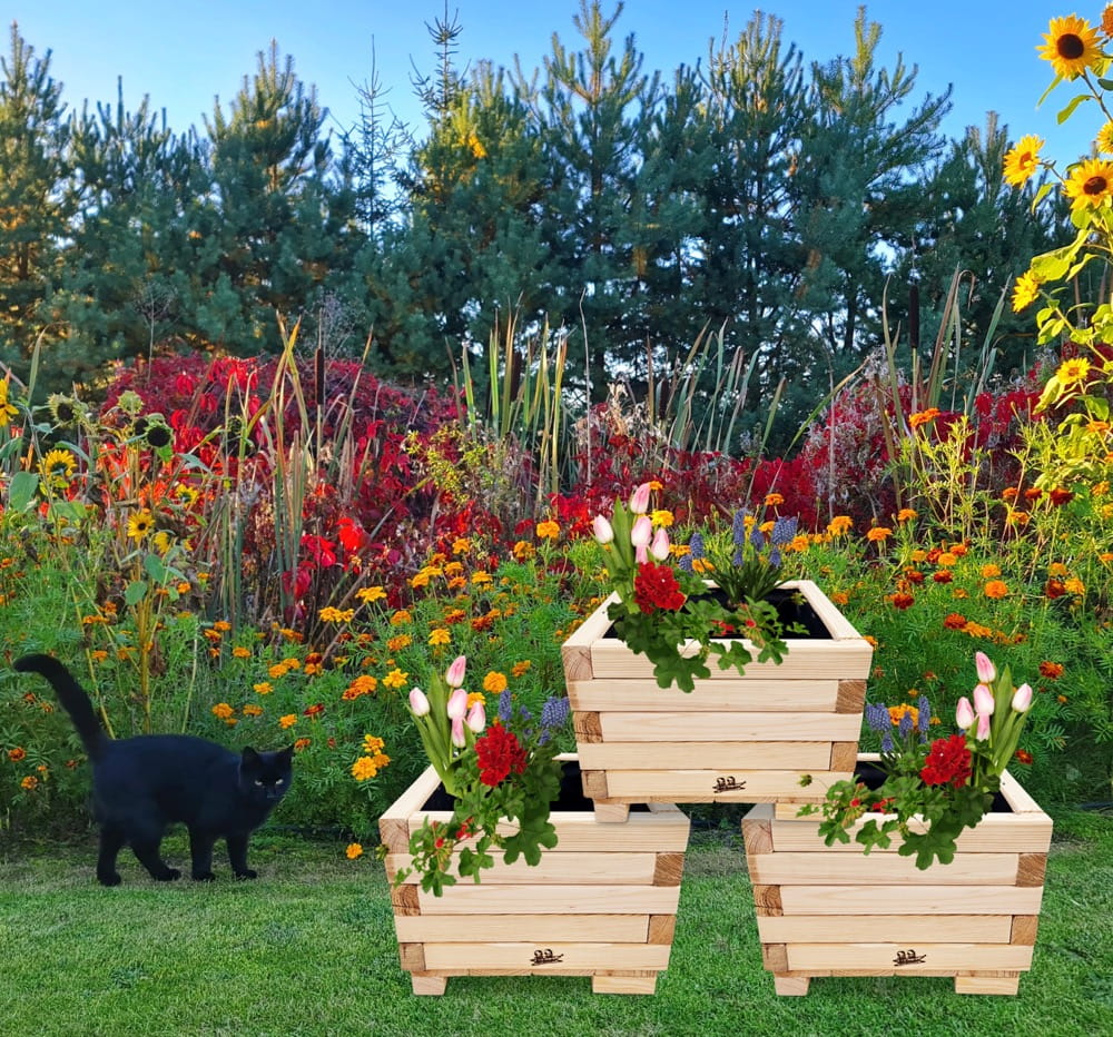 Doniczki kaskada na kwiaty grządki skrzynia drewniana zioła zielnik warzywnik donica z drewna litego kwietnik pojemnik KASKADA3 N
