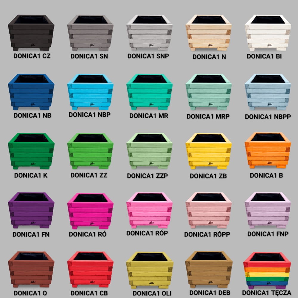 Oferujemy donice w różnych wariantach kolorystycznych. Dzięki temu możesz dopasować kolor do swojego stylu oraz otoczenia. Wybierz naturalne drewno, klasyczną biel, ciepły brąz lub inne opcje kolorystyczne.