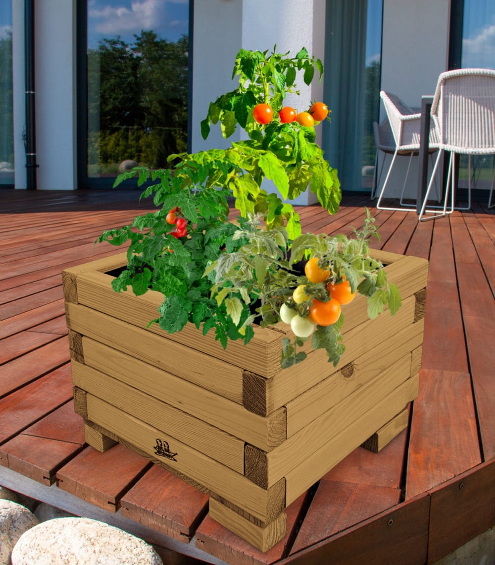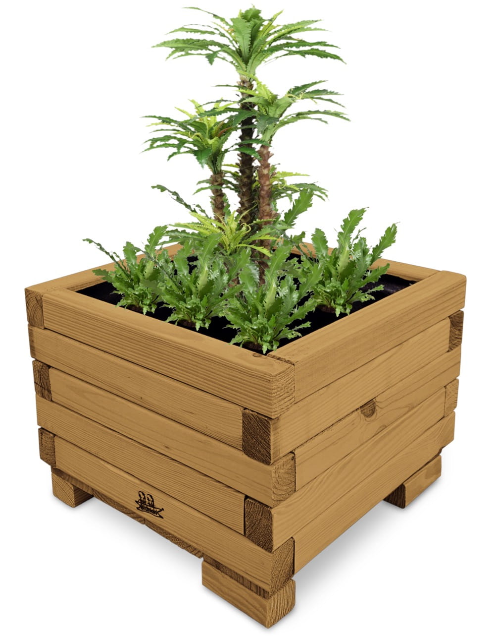 Doniczki z drewna litego koloru dębowego 3 donice kwadratowe dębowe zielnik warzywnik donica ogrodowa tarasowa DONICA1 DEB