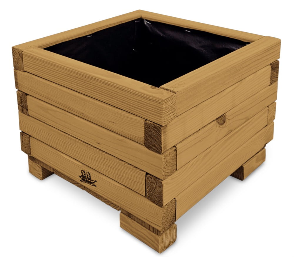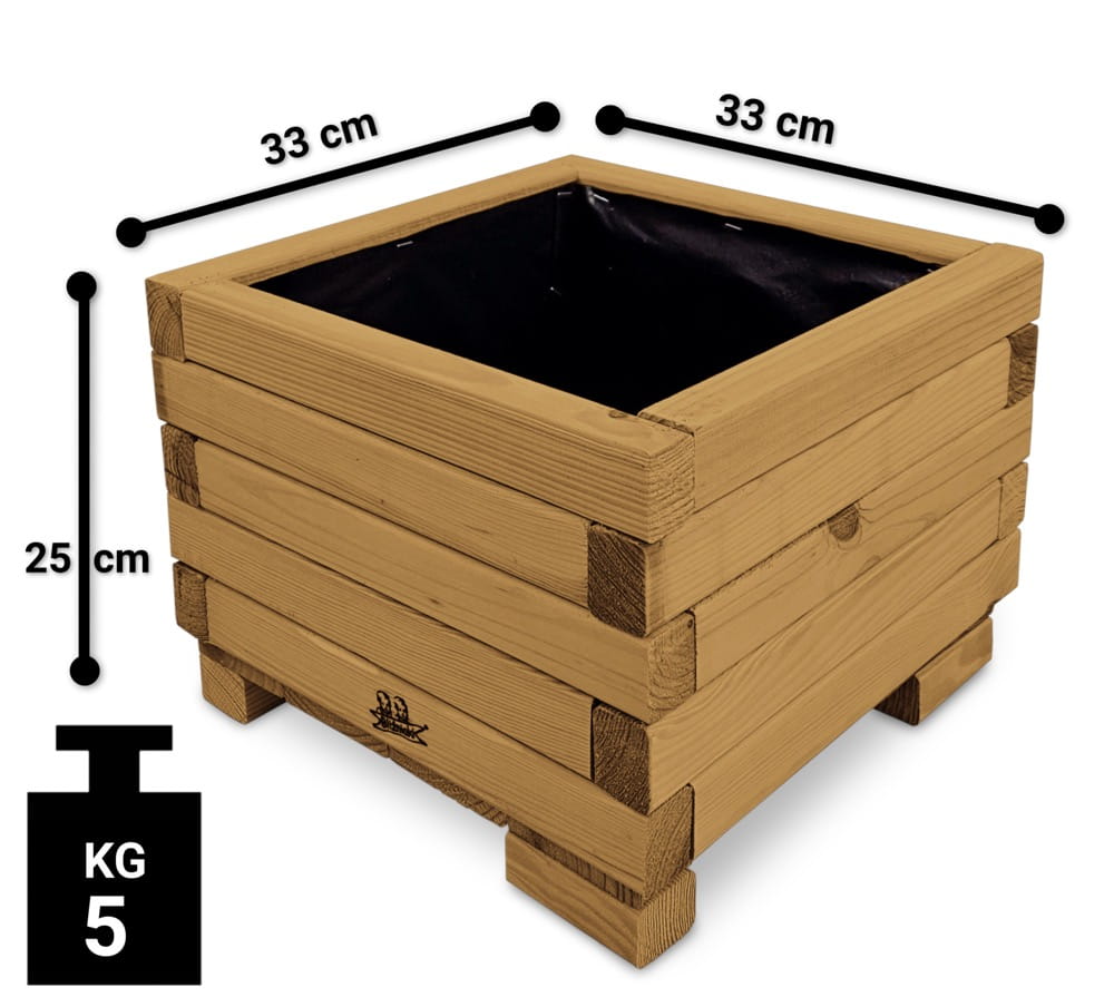 Donice są zabezpieczone w środku folią czarną, która chroni drewno przed wilgocią z ziemi.