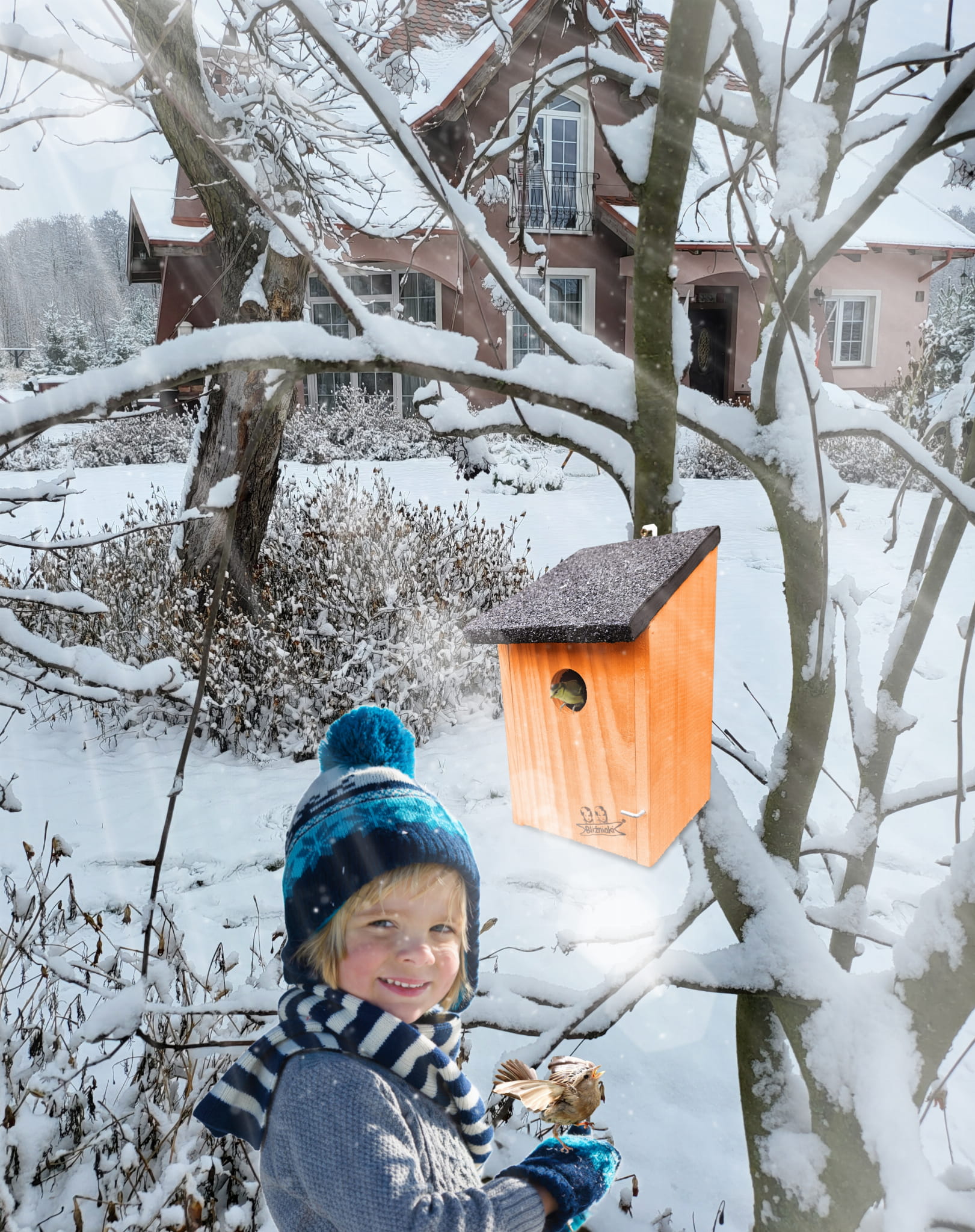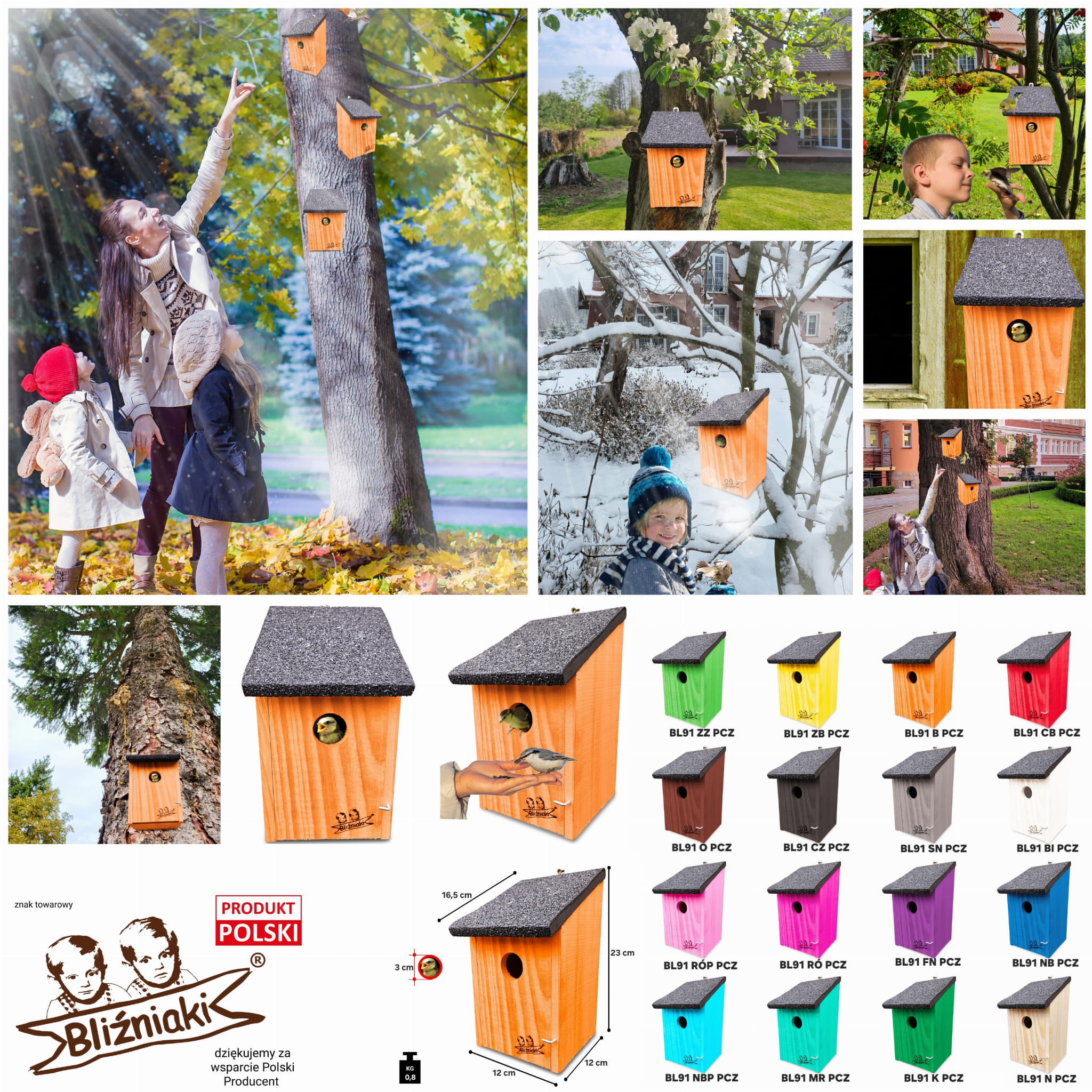 Skrzynki są perfekcyjnie zaprojektowane z myślą o małych ptakach tj. sikorkach, mazurkach, wróblach, muchołówkach i in., dostarczając im nie tylko przestrzeni, ale także komfortu do swobodnego poruszania się i zakładania gniazd w okresie wiosenno - letnim oraz schronienia w czasie zimowych nocy, podczas których ptaki mogą w budkach spokojnie przenocować.