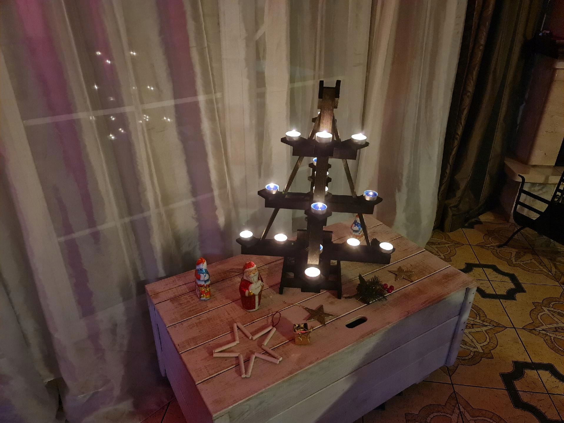 Ozdobny drewniany świecznik w kształcie choinki. Świąteczna ozdoba.