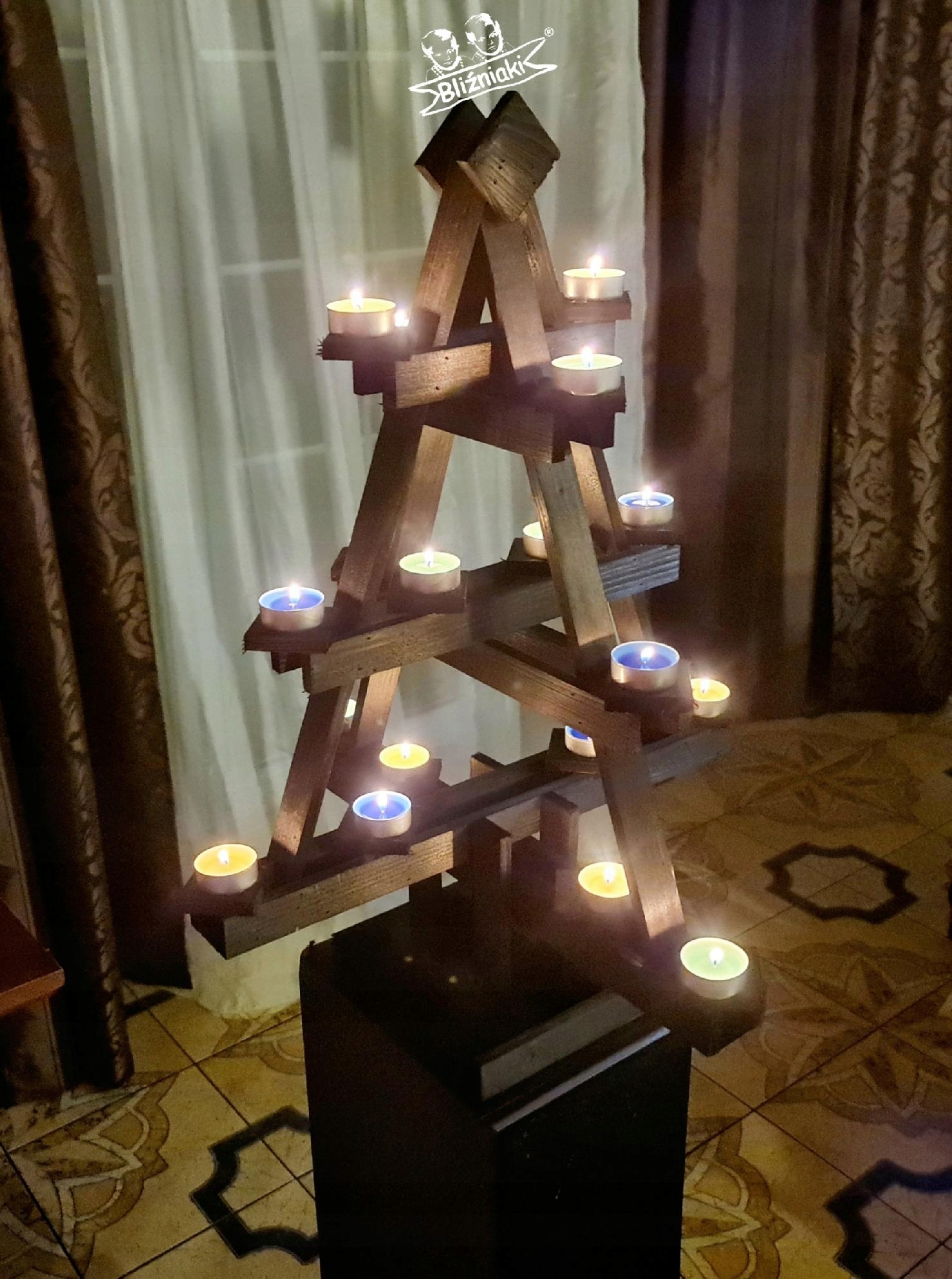 - Choinka wykonana jest w całości z drewna.