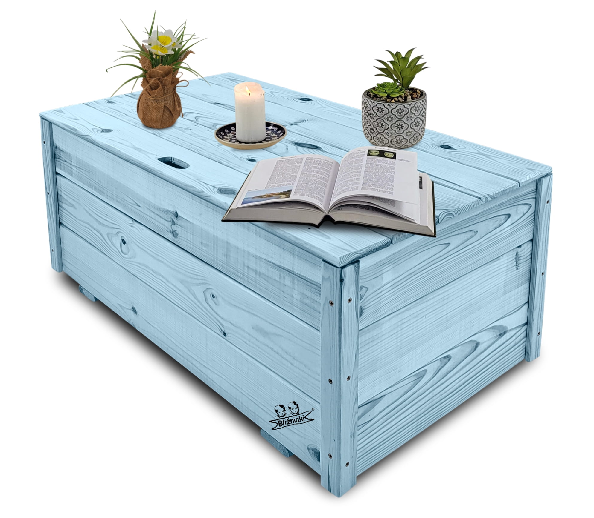 Drewniana Komoda ze schowkiem Skrzynia Stolik kawowy Mebel W Pięknym Pastelowo Niebieskim Kolorze HADE2 NBPP