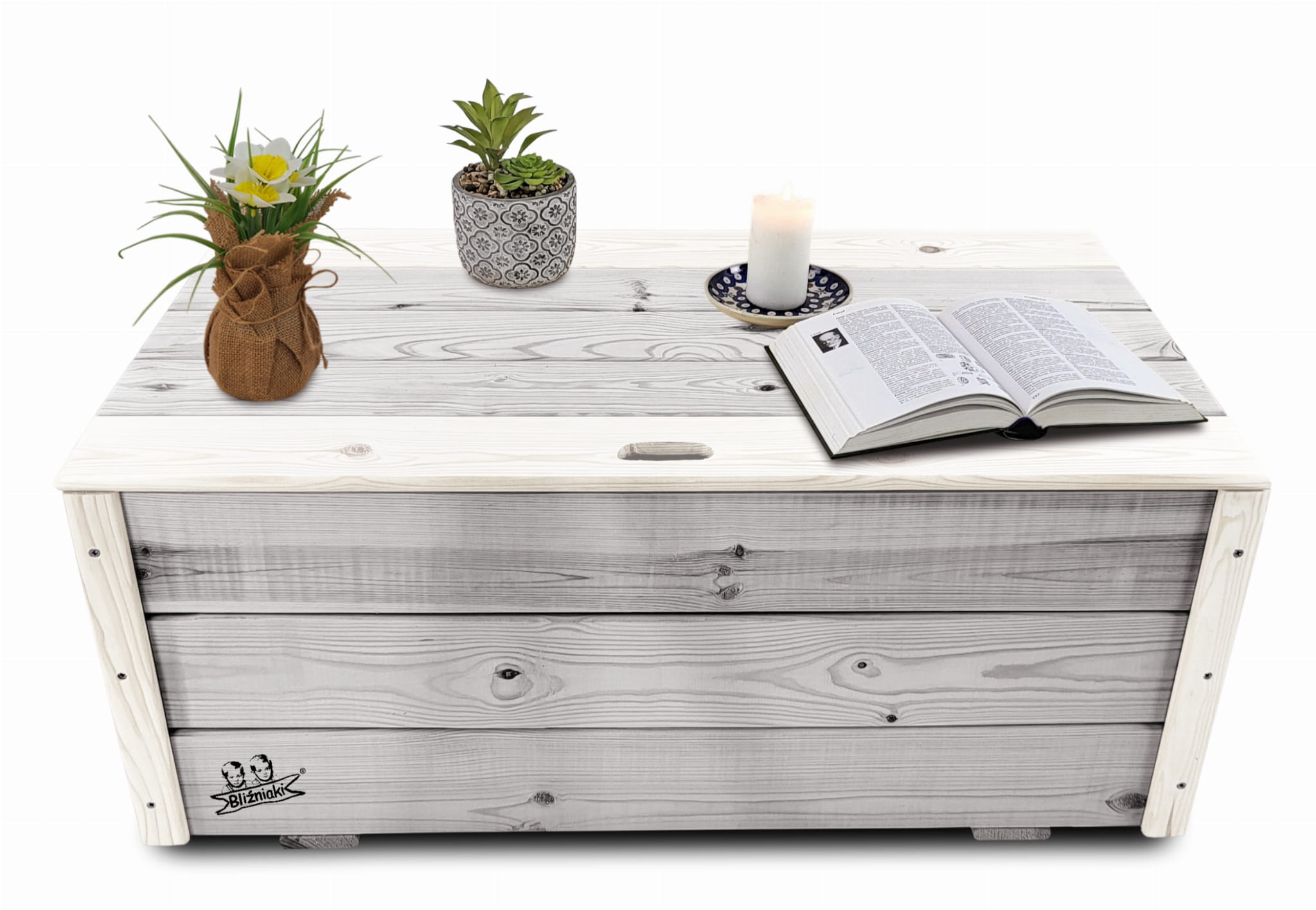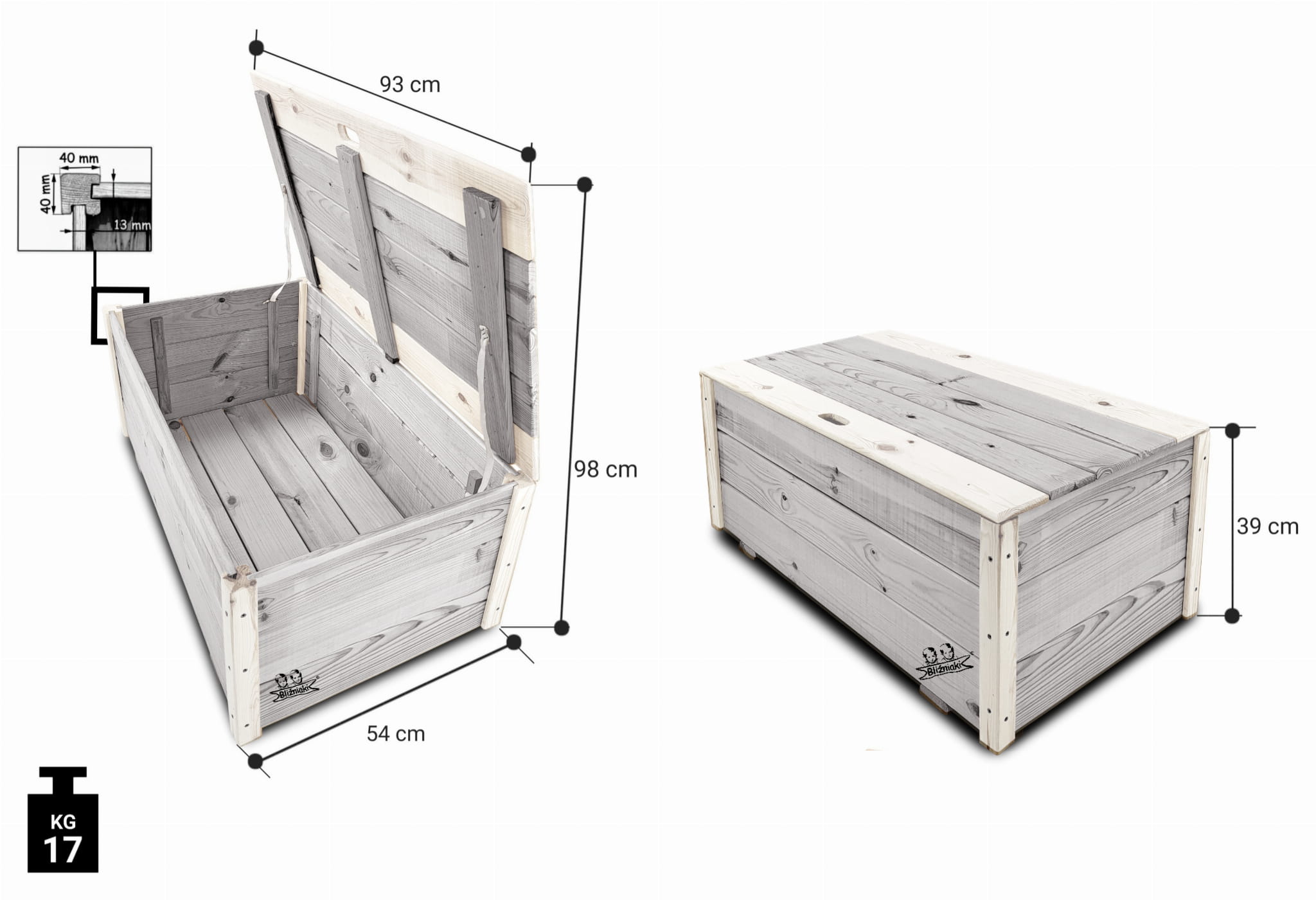 Poddane impregnacji drewno sprawia, że skrzynia HADE2 SNP BI jest odporna na szkodliwe działanie wody oraz wilgoci, promieni UV, a także grzybami i pleśnią, może być więc przechowywana przez cały rok na zewnątrz, na tarasie, w ogrodzie, czy na balkonach .