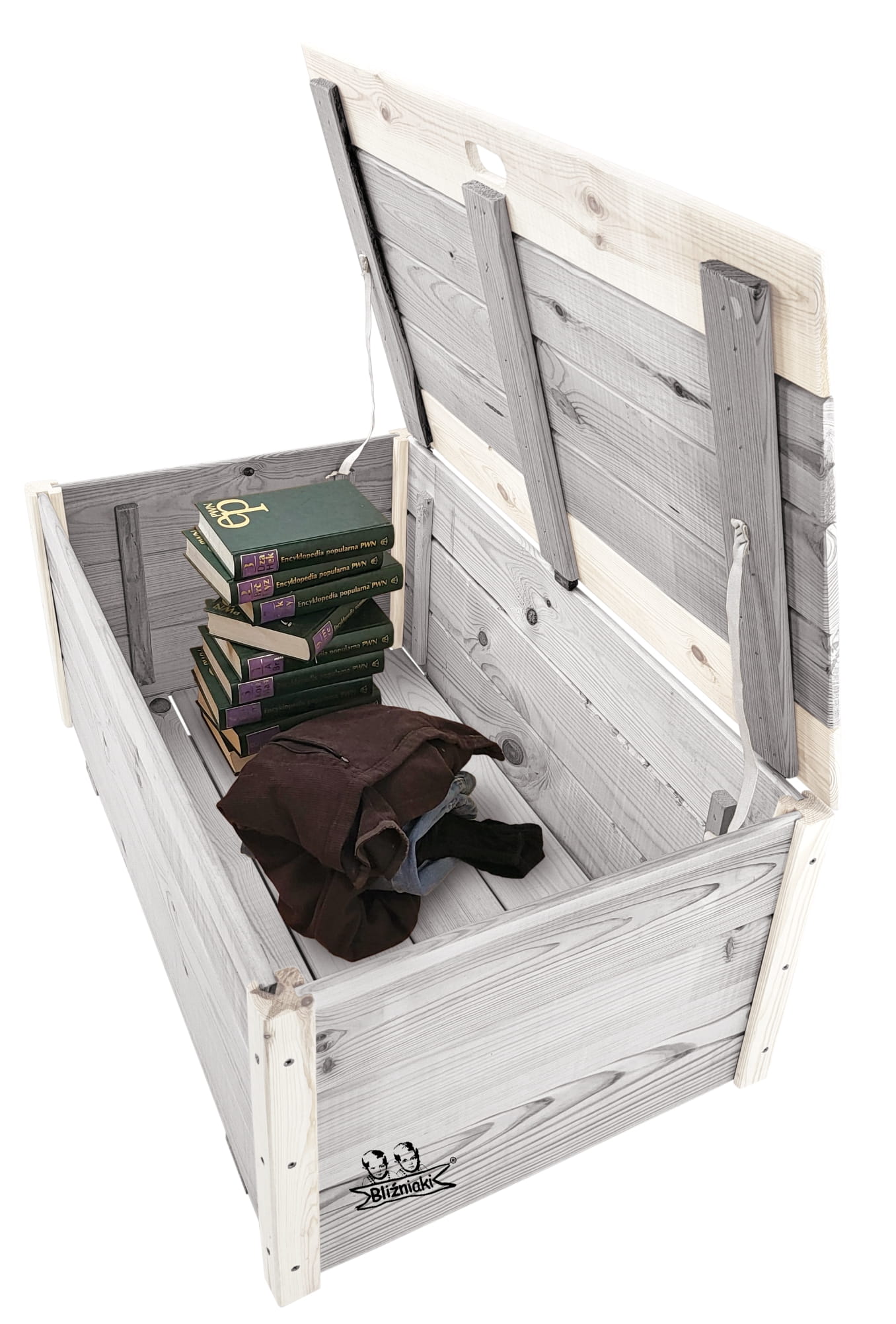 Pojemnik na zabawki idealnie komponuje się, z pozostałymi produktami drewnianymi z naszych ofert, które dają możliwość dowolnego komponowania zestawu tak, by dopasować go do wielkości pomieszczenia oraz potrzeb i wieku małego mieszkańca.
