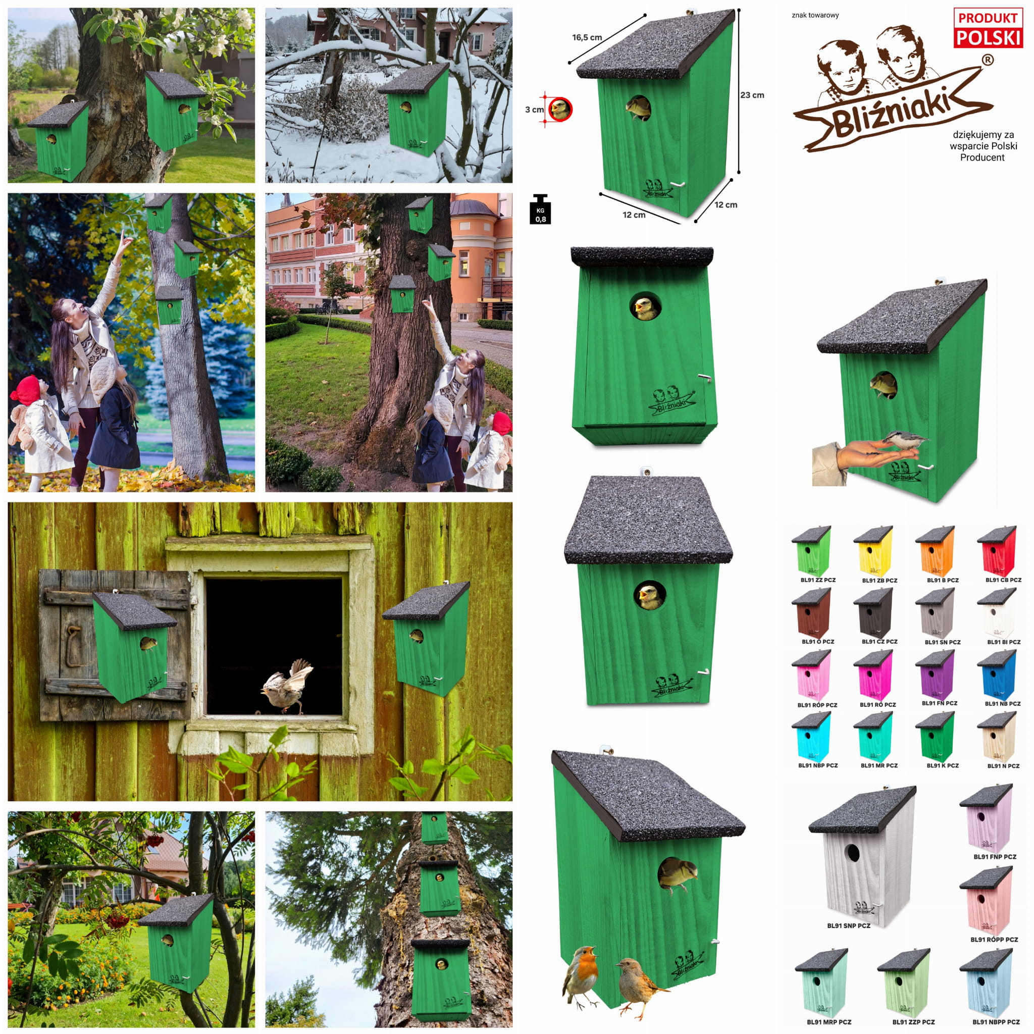Drewniana budka lęgowadla Ptaków Domek dla Kowalików Wróbli Sikorek Zimowe Schronienie Skrzynka Lęgowa BL91 K PCZ