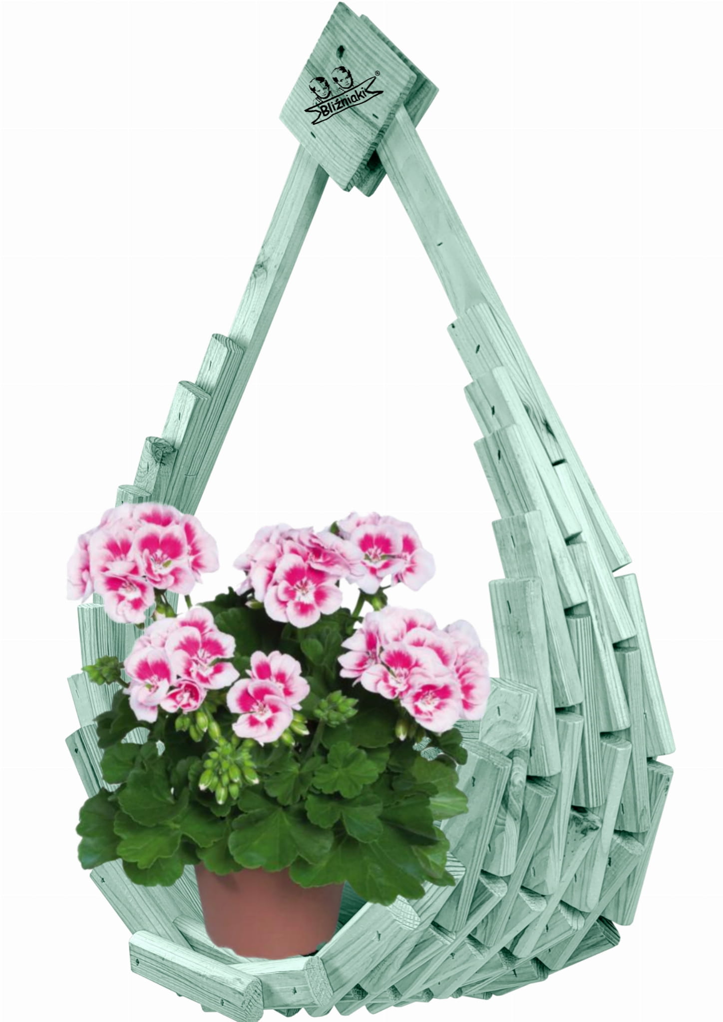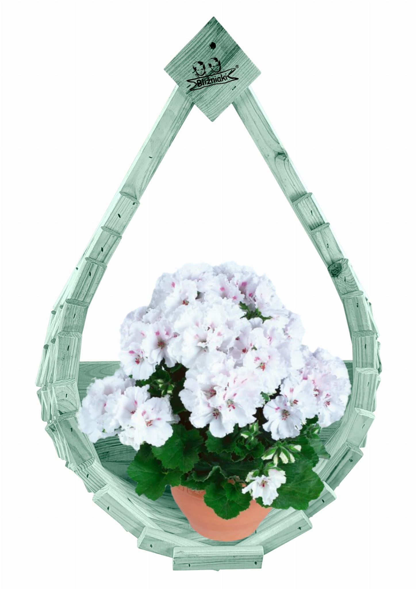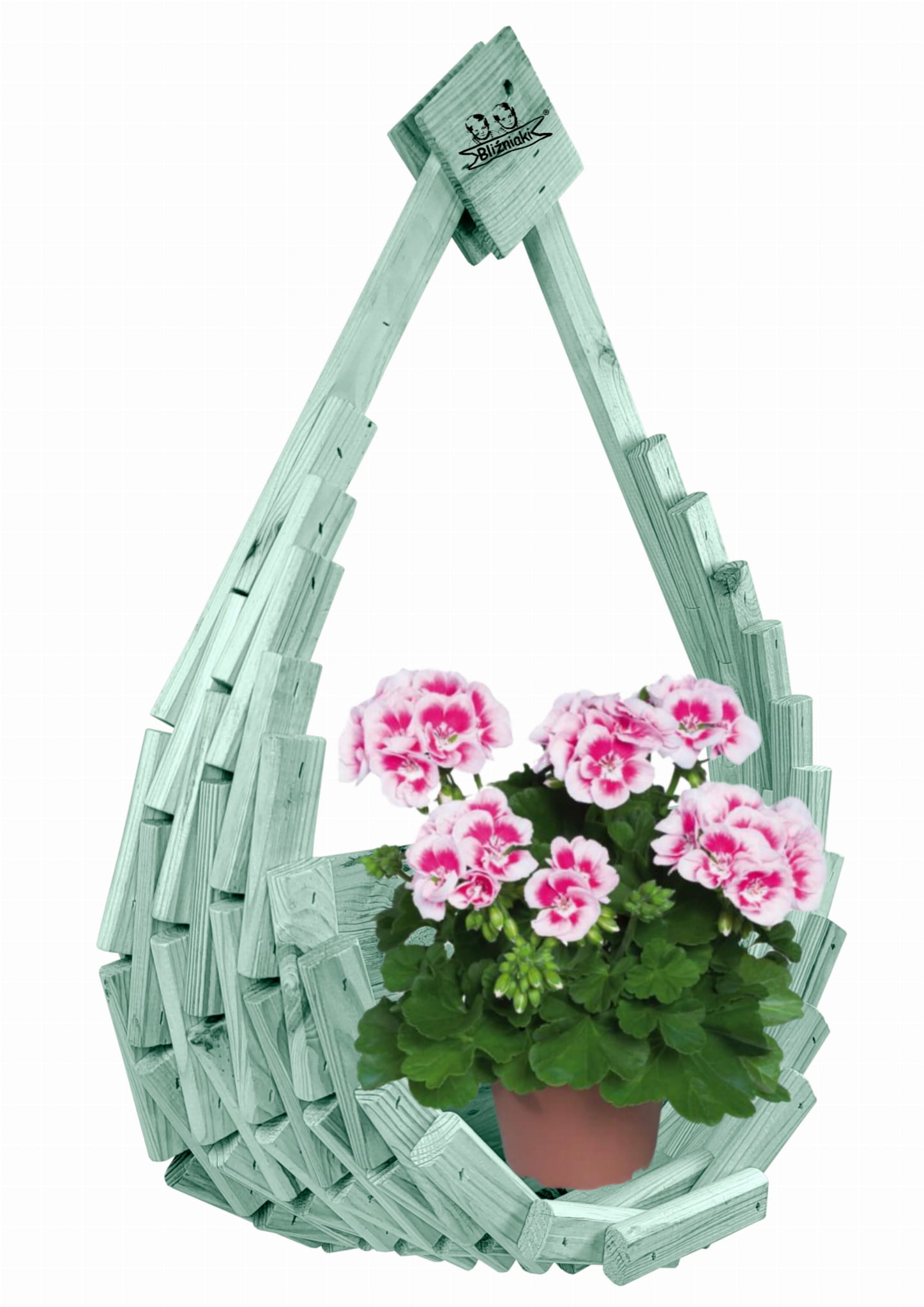 Elegancki drewniany kosz to miejsce na ulubione kwiaty m.in pelargonie, bratki, ale też wszystkie kwiaty wiszące, które dopiero z naszym produktem otrzymają należną im ekspozycję.