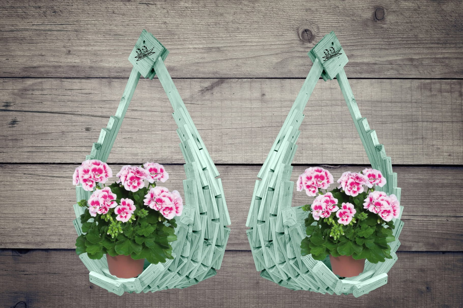 Drewniana donica do ogrodu Wisząca ozdoba kwietnik do ogrodu Kosz ozdobny Doniczka na kwiaty Kwietnik na pelargonie bratki KOSZ1 MRP