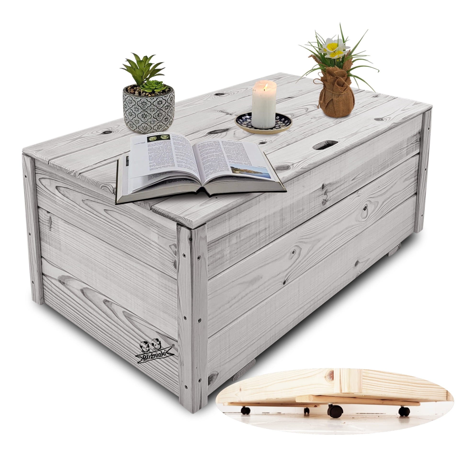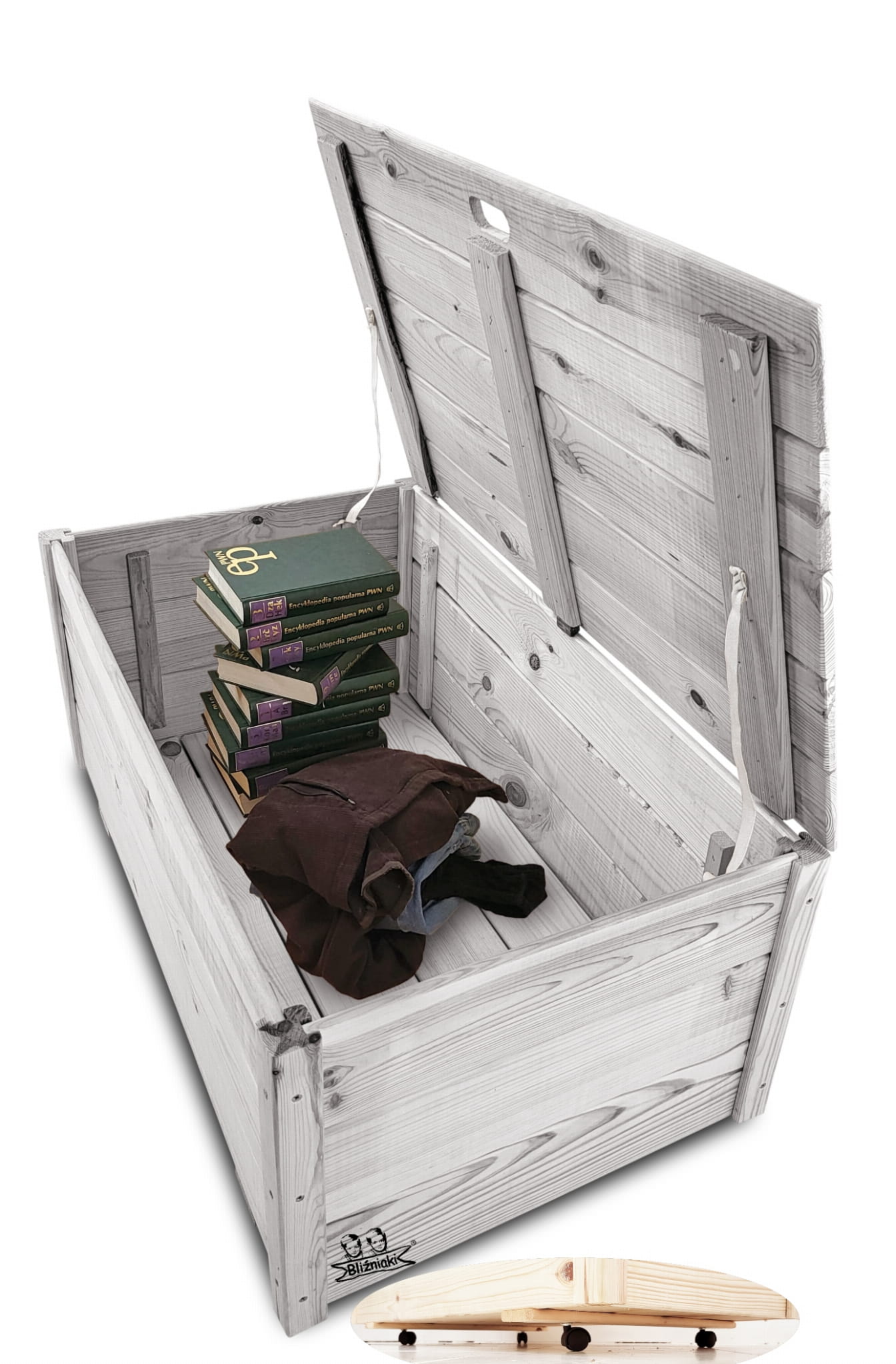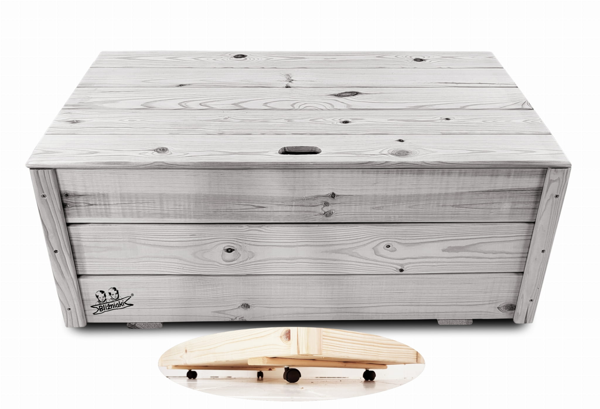 Drewniana komoda ze schowkiem Skrzynia na kółkach Mobilny kufer do przechowywania Stolik kawowy Mebel do domu Pojemna duża skrzynia szara otwierana HADE1 SNP