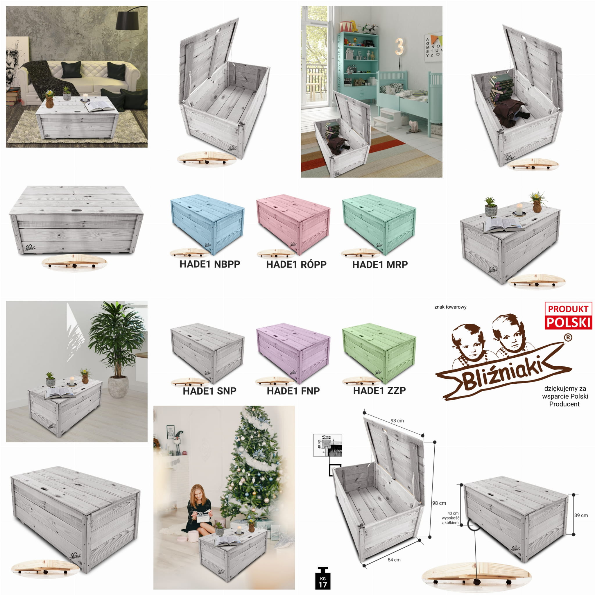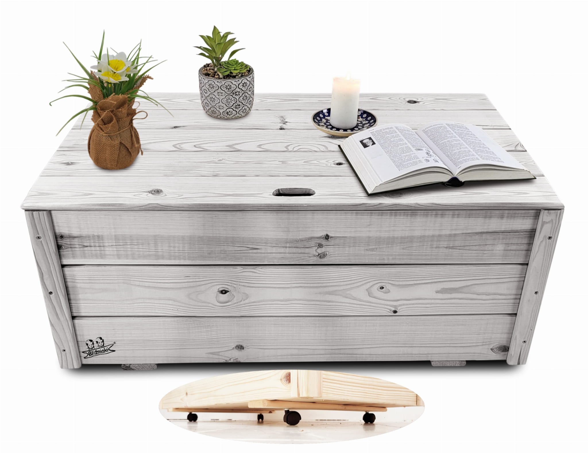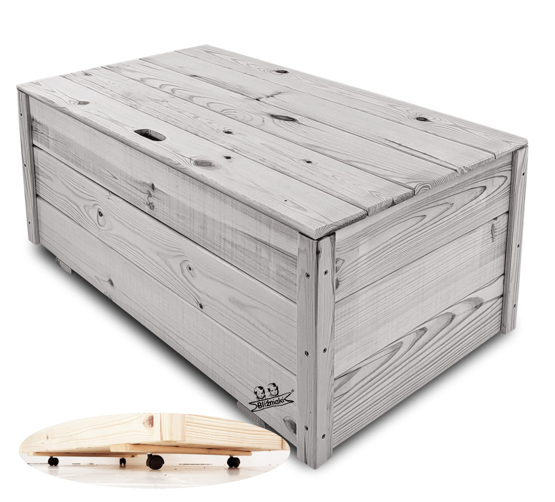 Drewniana komoda ze schowkiem Skrzynia na kółkach Mobilny kufer do przechowywania Stolik kawowy Mebel do domu Pojemna duża skrzynia szara otwierana HADE1 SNP
