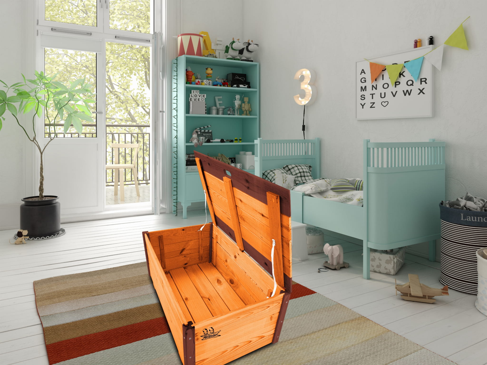 Pojemnik na zabawki będzie idealnie komponować się z pozostałymi produktami drewnianymi z naszych ofert, które dają możliwość dowolnego mieszania zestawu tak, by dopasować go do wielkości pomieszczenia oraz potrzeb i wieku małego mieszkańca.