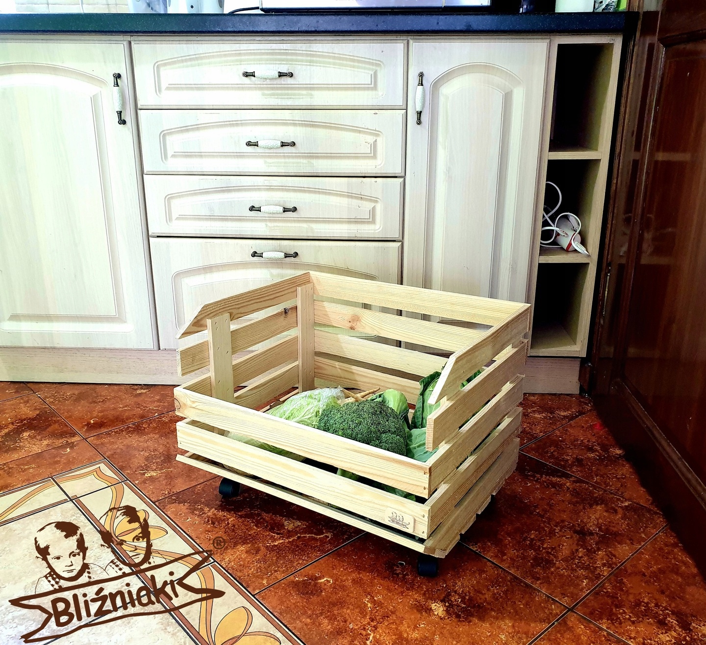 Drewniana skrzynia na warzywa owoce Na 4 kółkach (REG4 N)