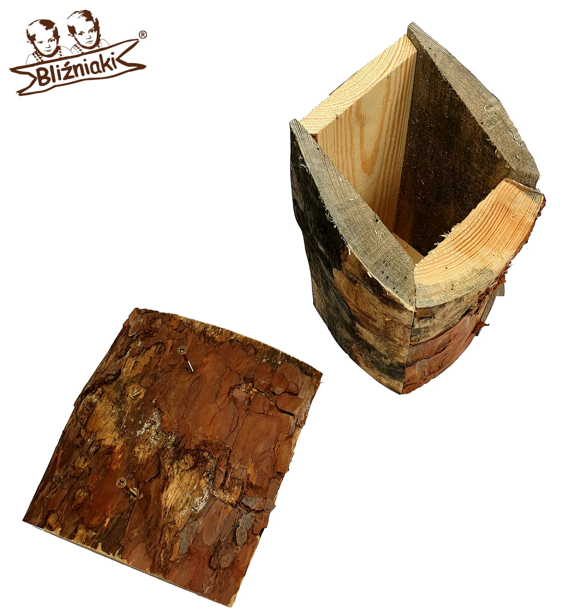 - Posiada otwór, o średnicy 32mm. Idealny dla taki ptaków jak: sikorka, wróbelek, dzięciołek i innych.