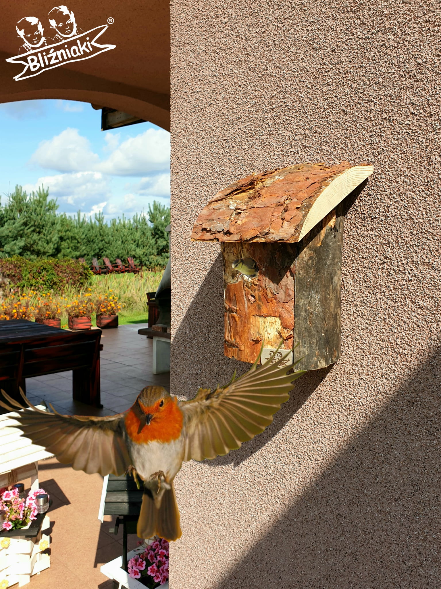 Nasza budka z powodzeniem może zostać powieszona, na drzewie, ścianie zewnętrznej, a także postawiona w dostępnym dla ptaków miejscu.