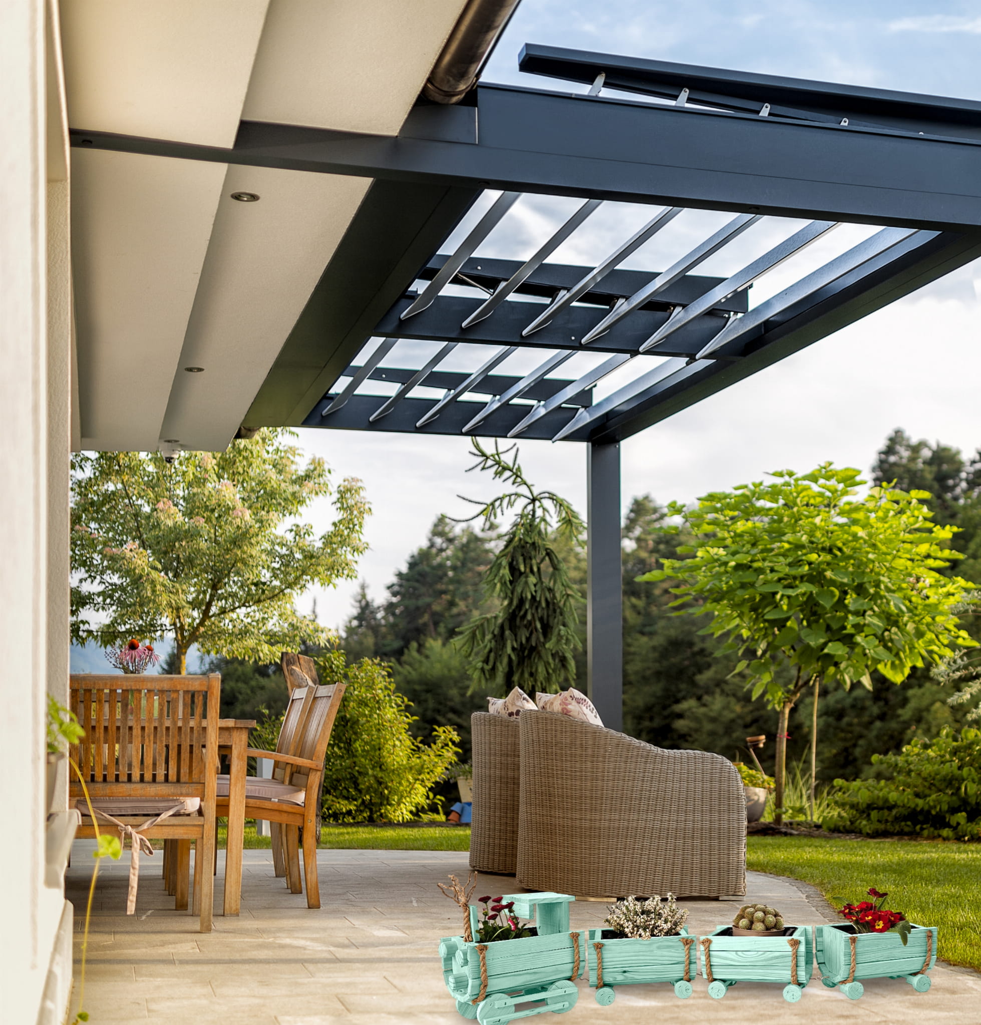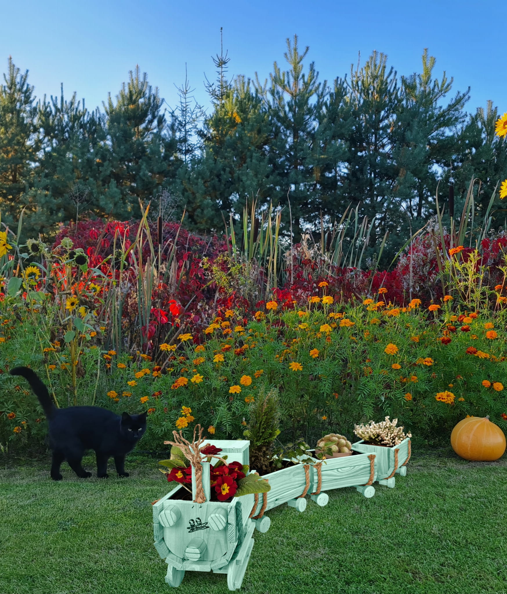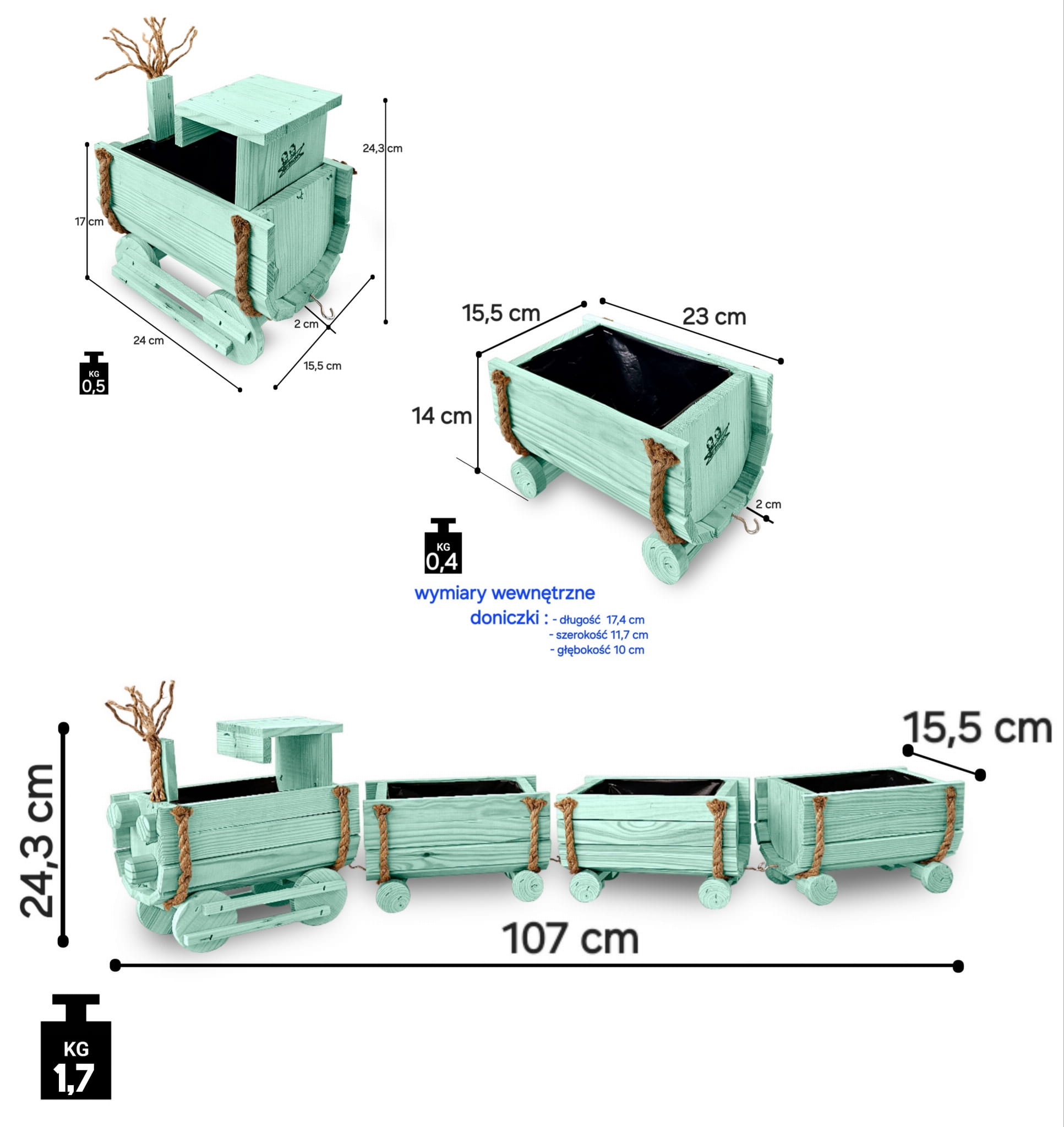 Nasz kwietnik to niezwykła kombinacja funkcjonalności i estetyki. Lokomotywa oraz wagony stanowią nie tylko praktyczne donice, ale także designerską dekorację, która nadaje ogrodowi oryginalny charakter. Każdy detal został starannie zaprojektowany, byś mógł cieszyć się niepowtarzalnym stylem w swojej przestrzeni zarówno wewnętrznej, jak i zewnętrznej.