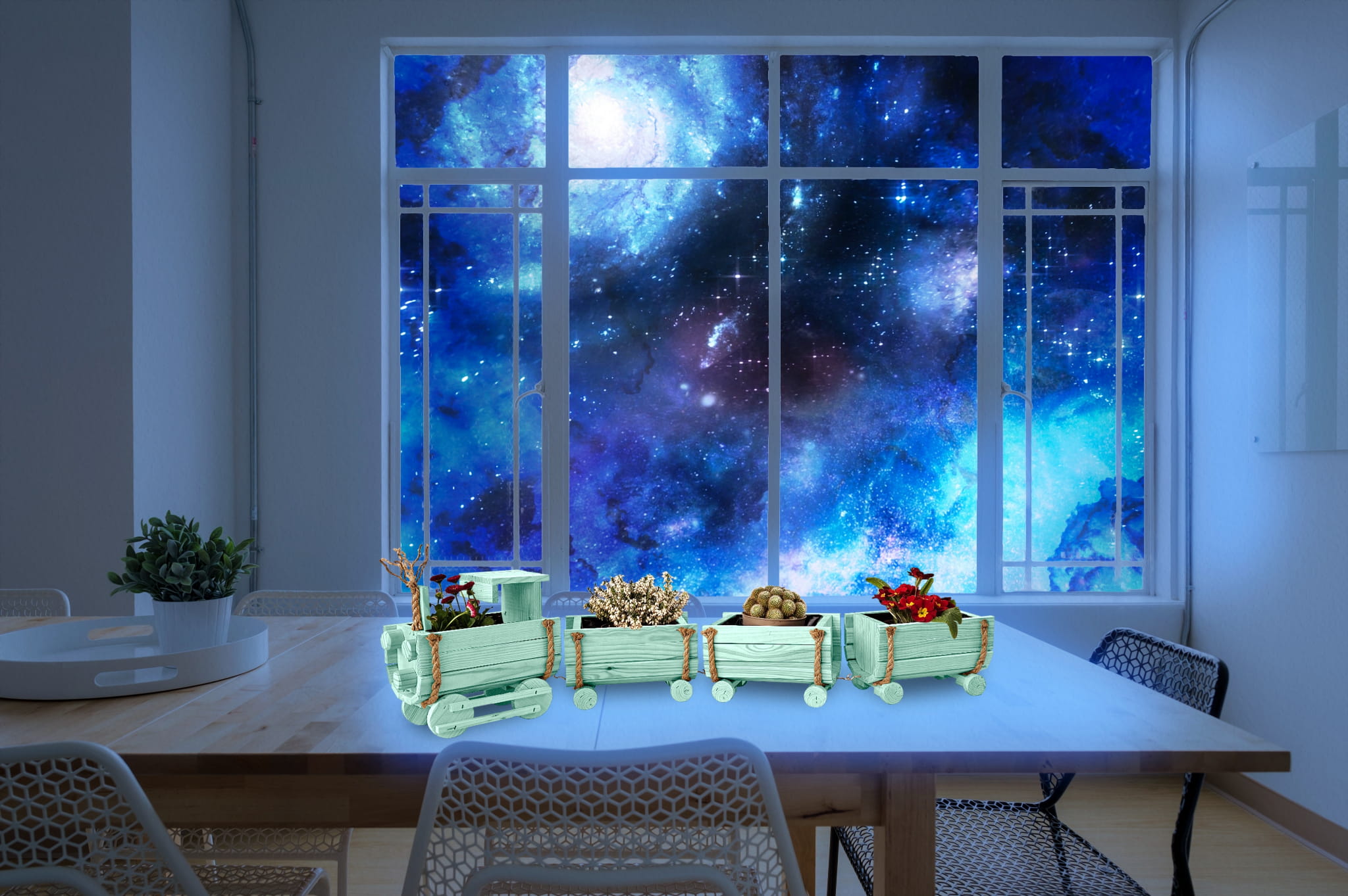 Ta designerska donica w kształcie pociągu stanowi idealną bazę do stworzenia wyjątkowych kompozycji kwiatowych.