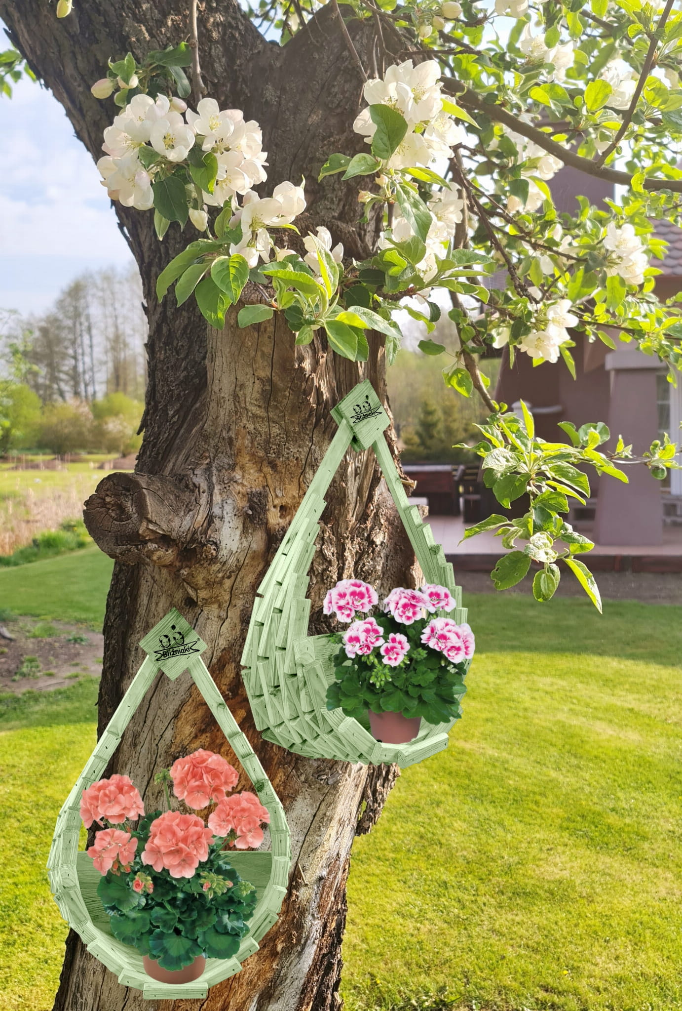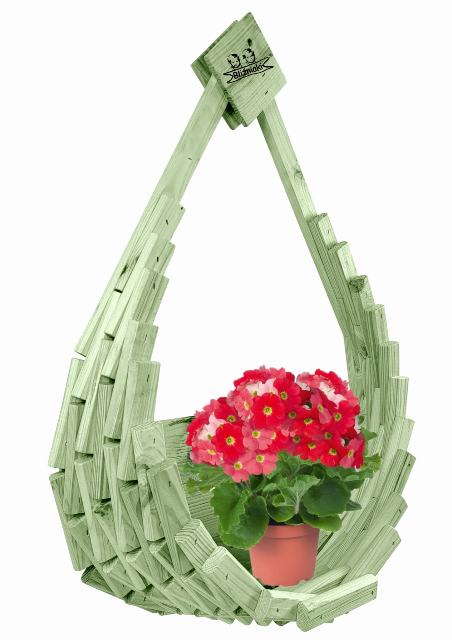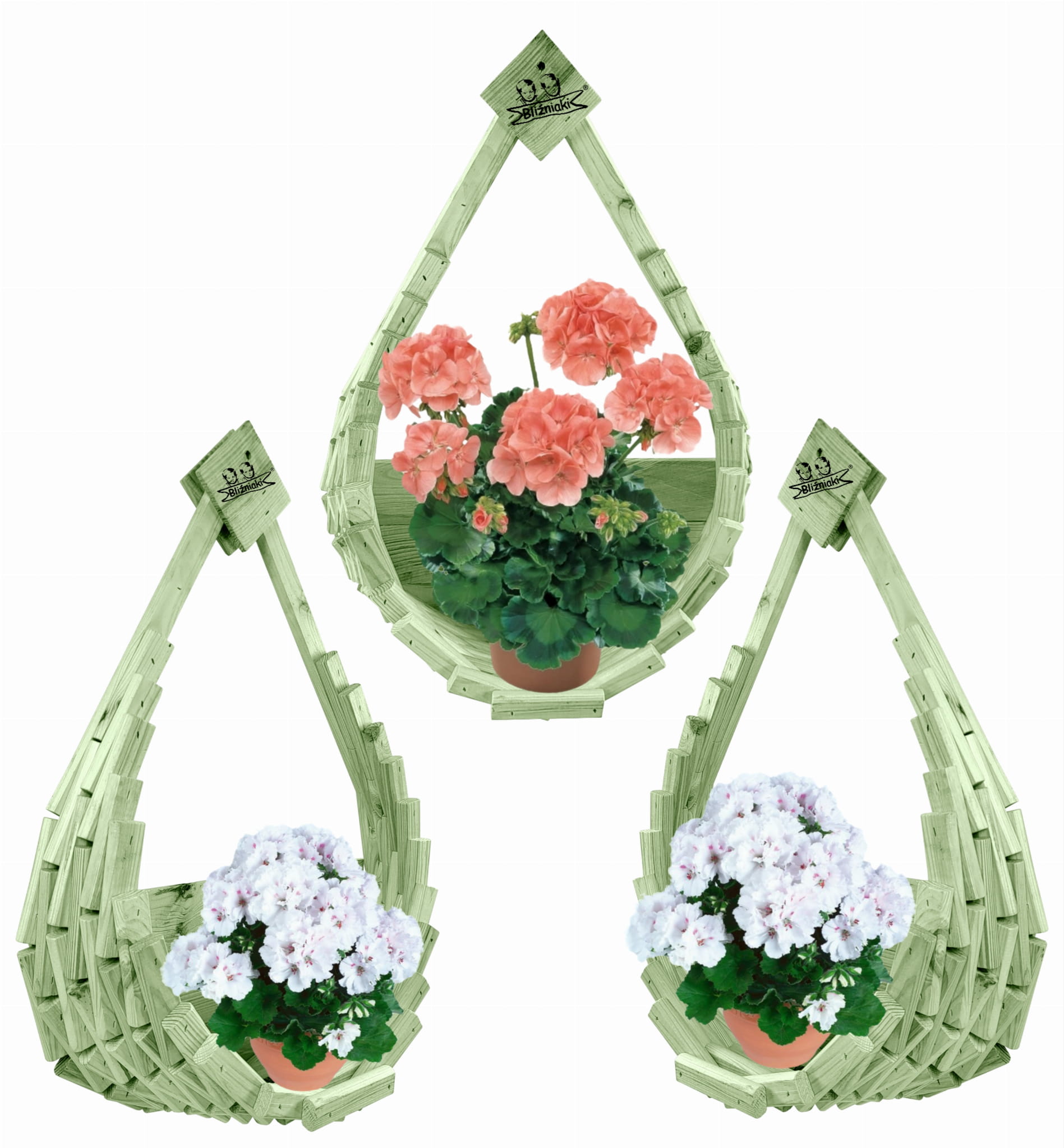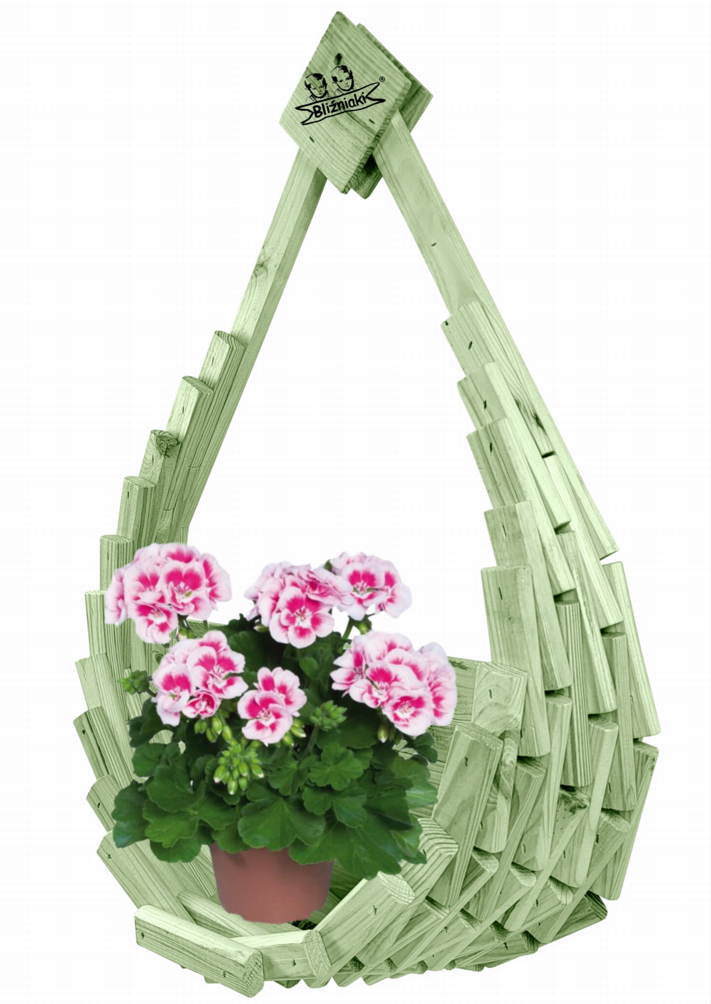 Elegancki drewniany kosz to miejsce na ulubione kwiaty m.in pelargonie, bratki, ale też wszystkie kwiaty wiszące, które dopiero z naszym produktem otrzymają należną im ekspozycję.