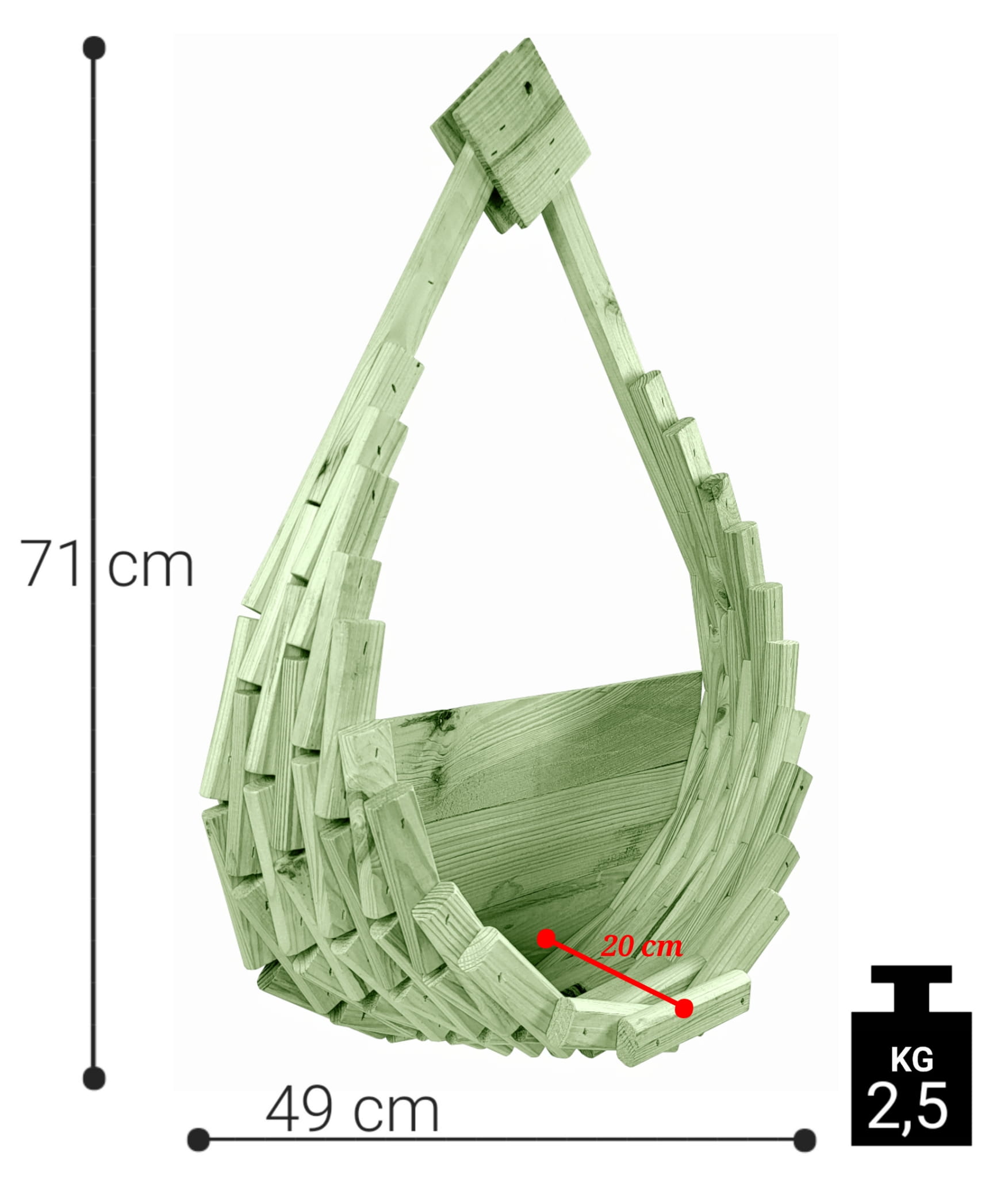 Produkt wykonany został z suszonego drewna sosnowego. Kwietnik w kolorze PASTELOWYM JASNYM ZIELONYM jest zabezpieczony metodą impregnowania. Środek na bazie wody użyty do impregnacji jest w pełni ekologiczny i bezpieczny dla ludzi i zwierząt. Zabezpieczone w taki sposób drewno sprawia, że kosz jest odporny na szkodliwe działanie wody oraz wilgoci, promieni UV, a także grzybów i pleśni, może być więc przechowywany przez cały rok na zewnątrz.