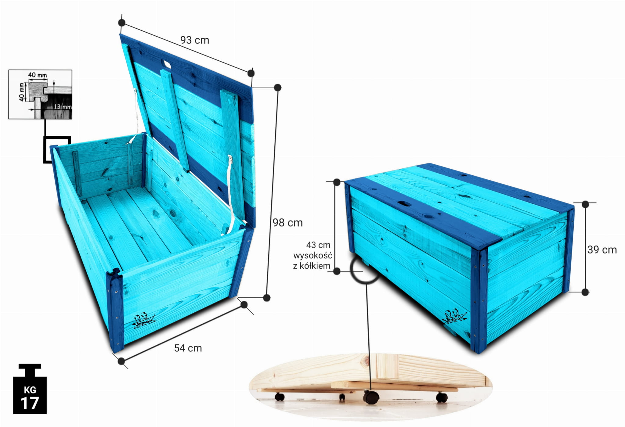 Na tej aukcji oferujemy skrzynię w podwójnym kolorze NIEBIESKIM PASTELOWO - NIEBIESKIM.