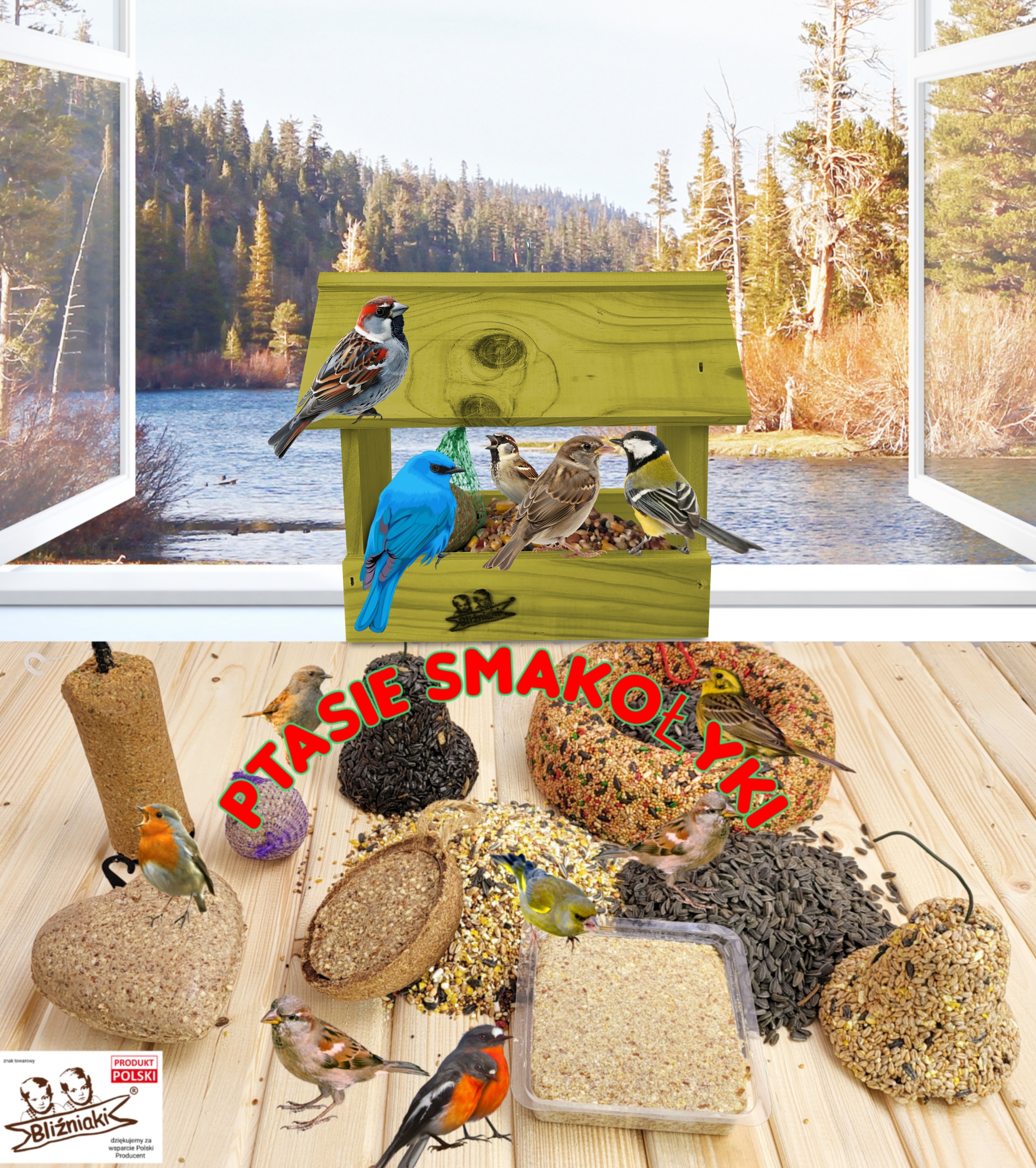 Drewniany karmnik dla ptaków mały idealny na parapet na balkon dzwońce dzięcioły K204 OLI