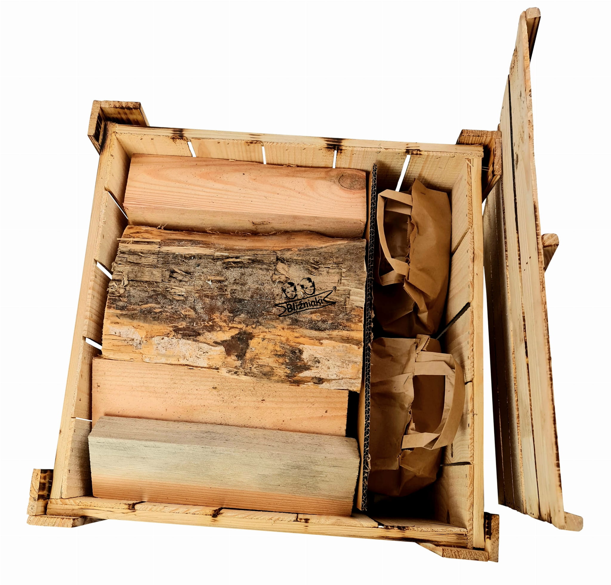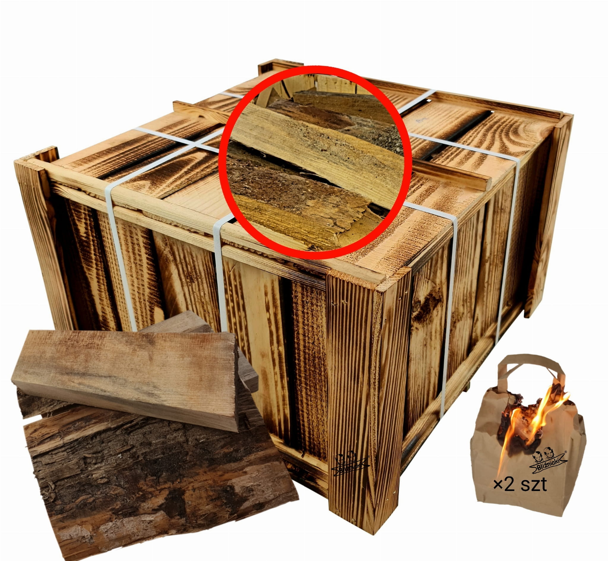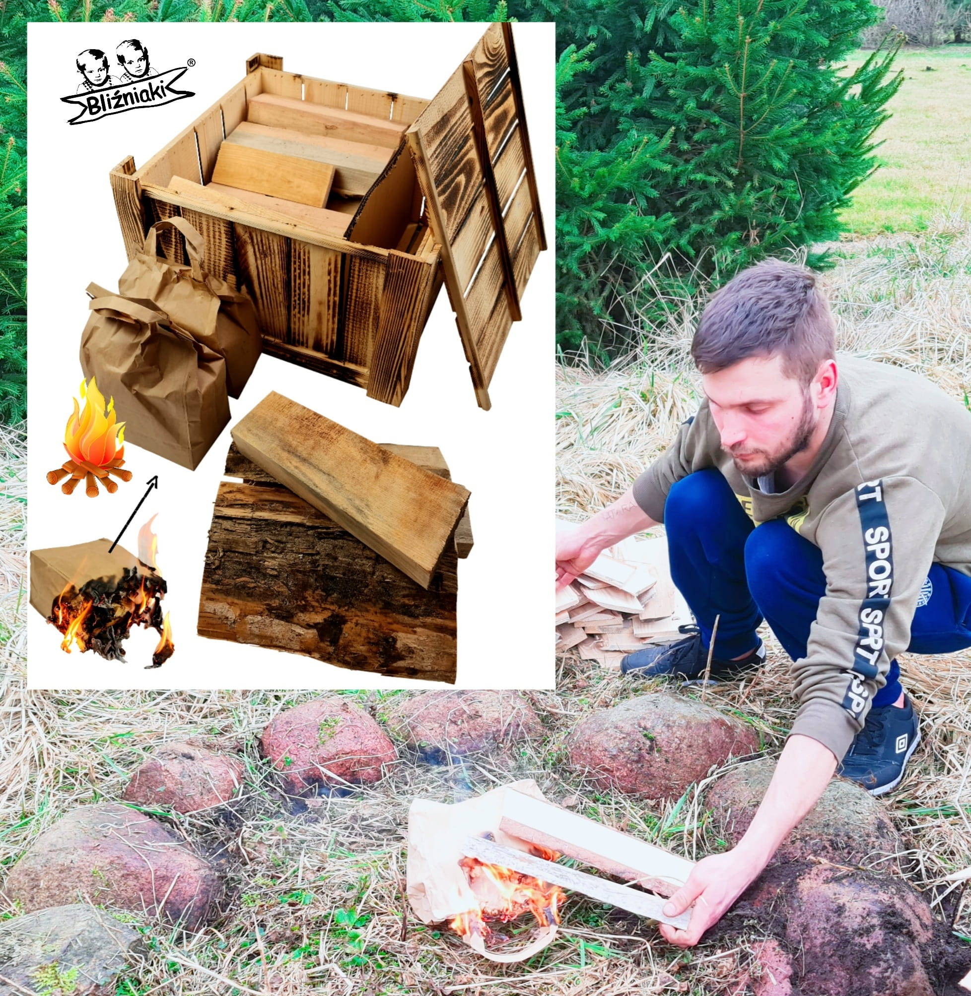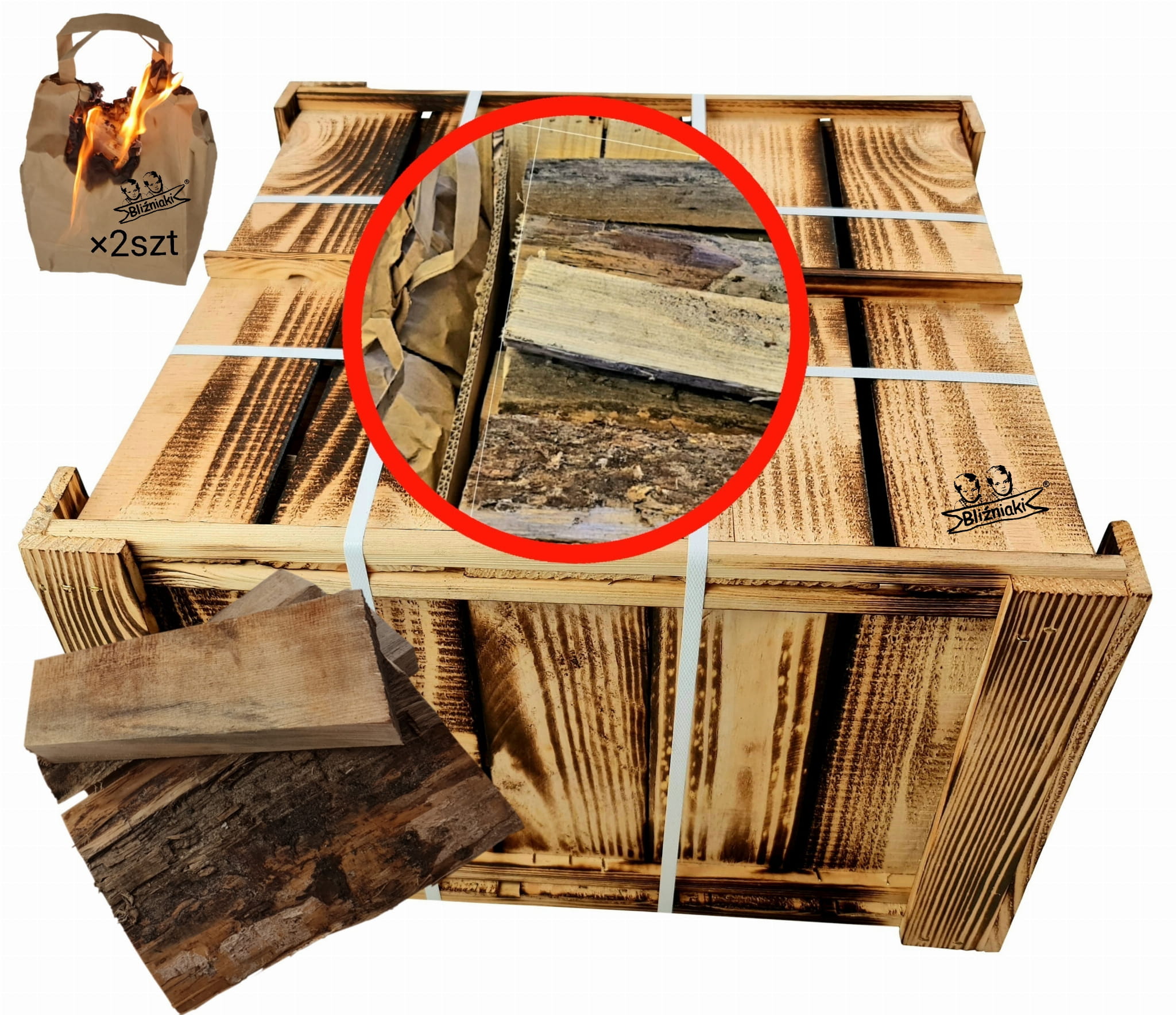 Drewno Kominkowe W Skrzyni Opał Do Kominka + 2 Torebki Rozpałki Podpałki Do Kominka Na Ognisko ( RZYGR1 14KG)