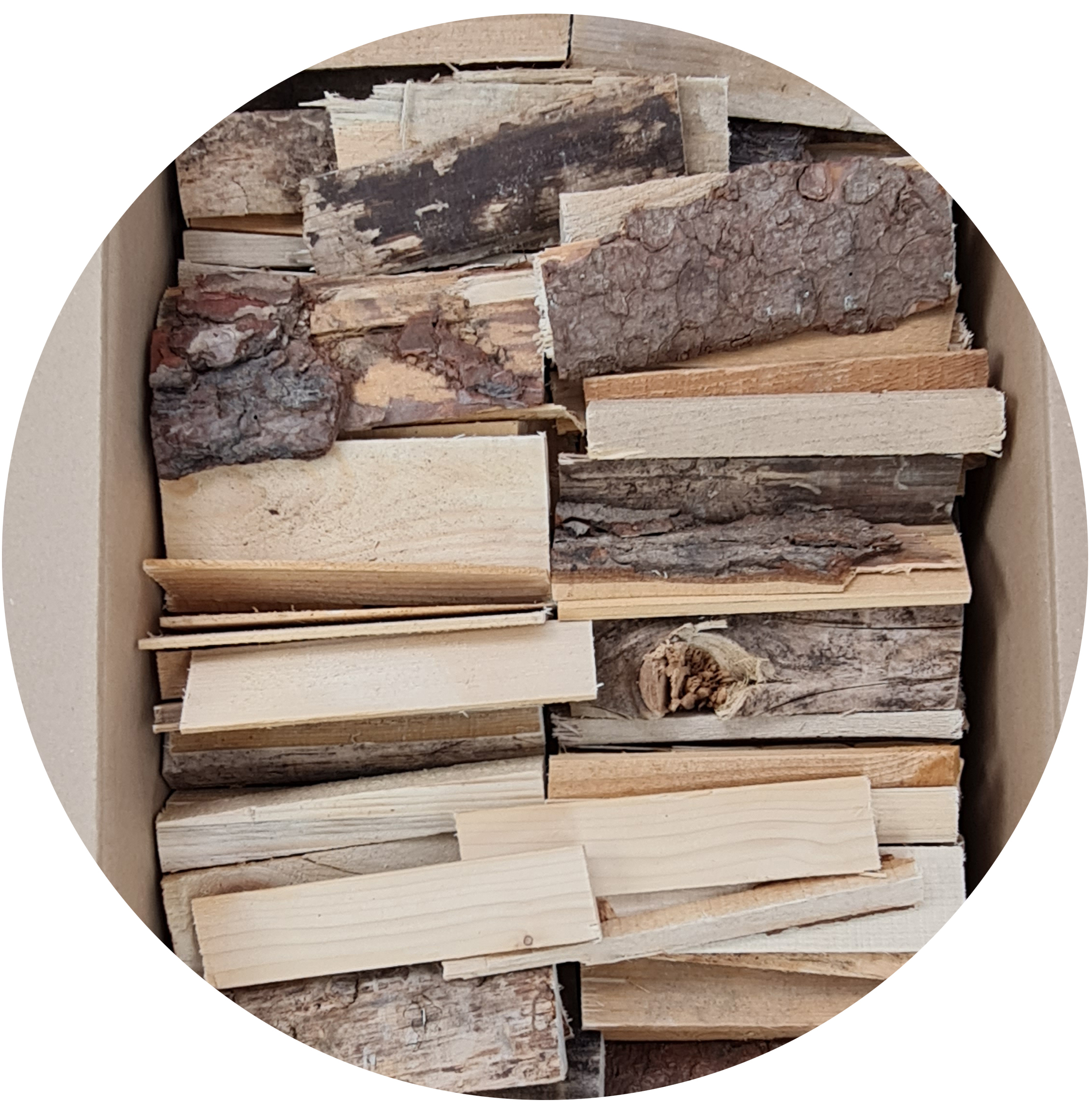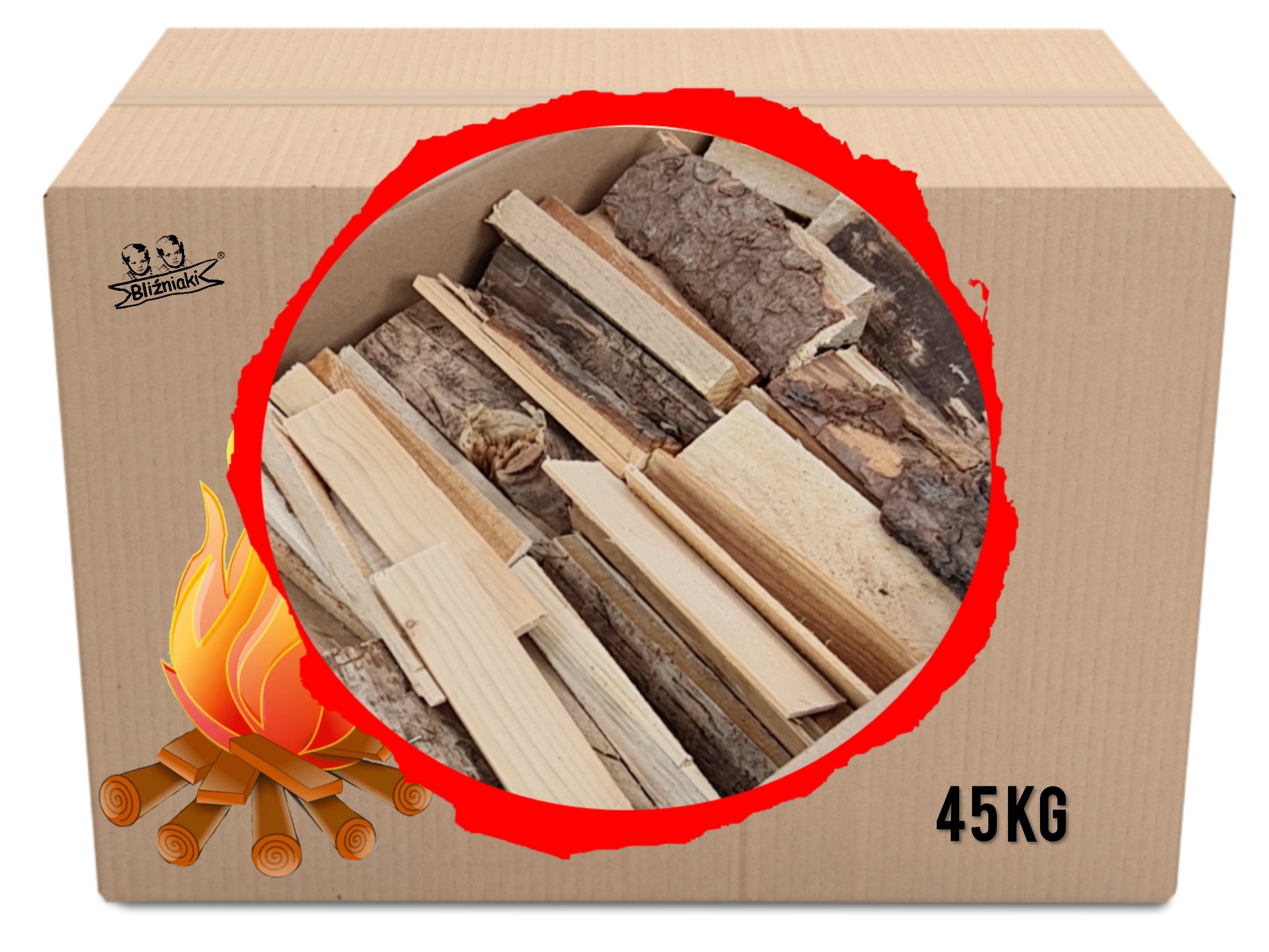 Karton wypełniony kawałkami drewna sosnowego ROZPAŁKA PODPAŁKA