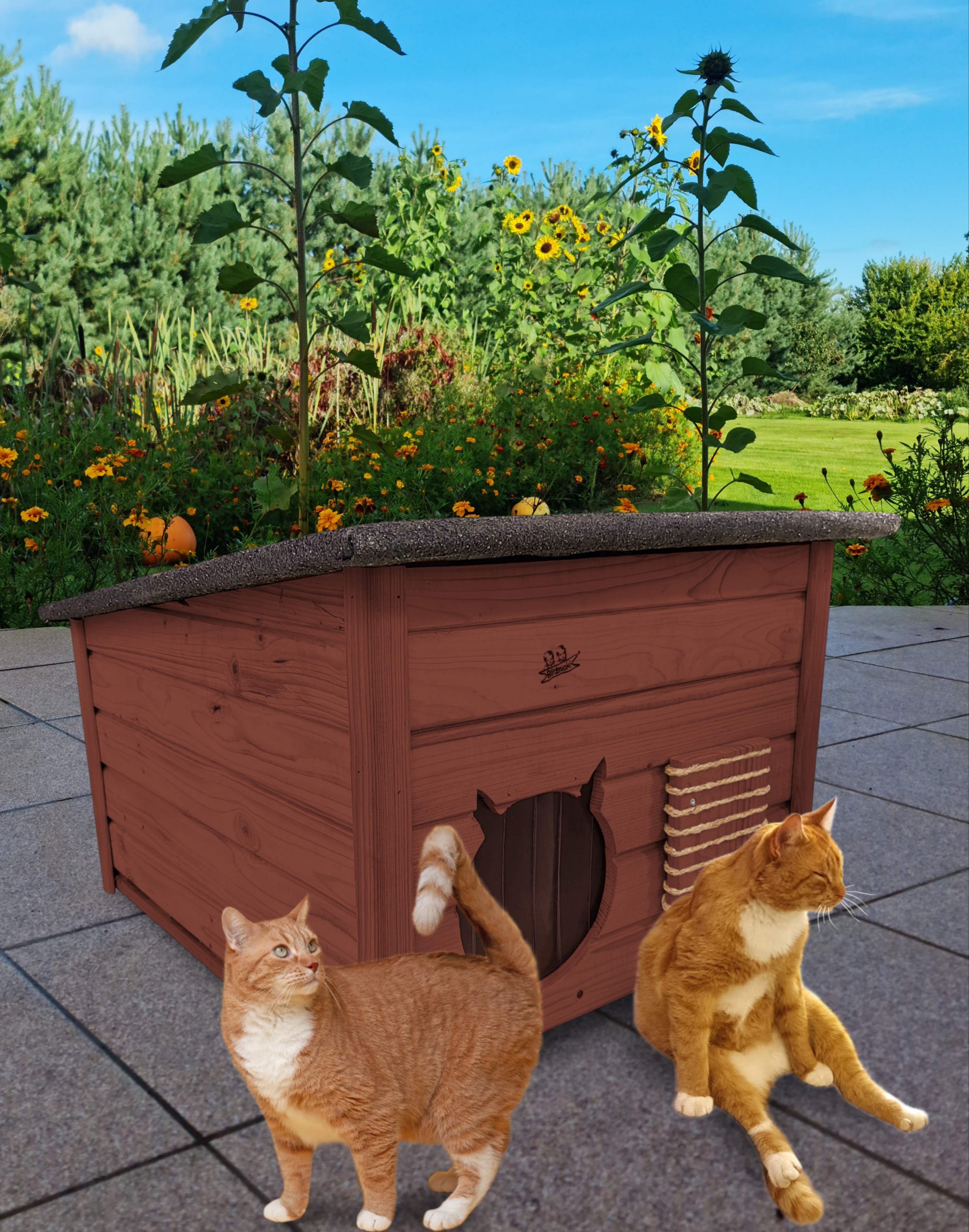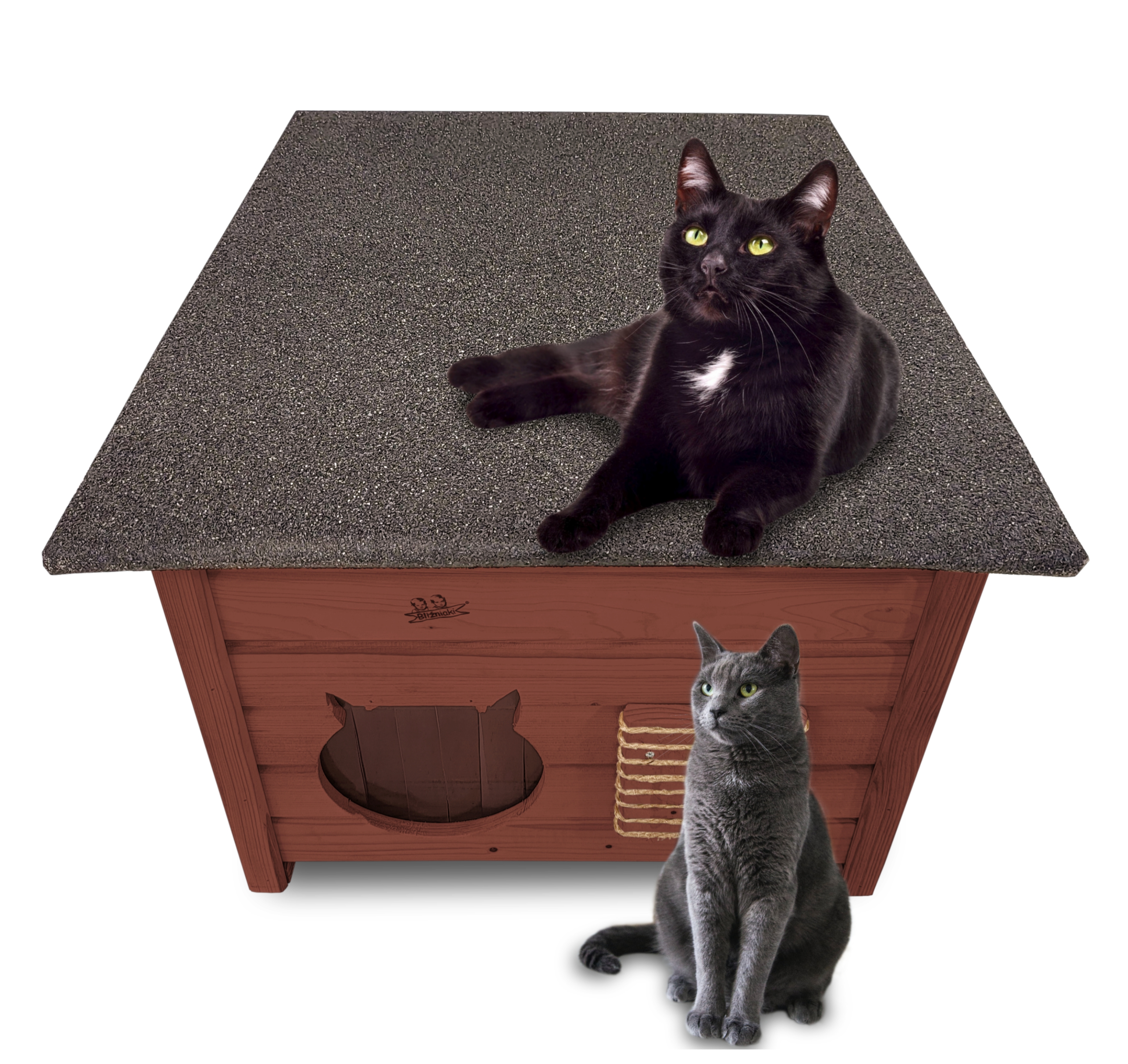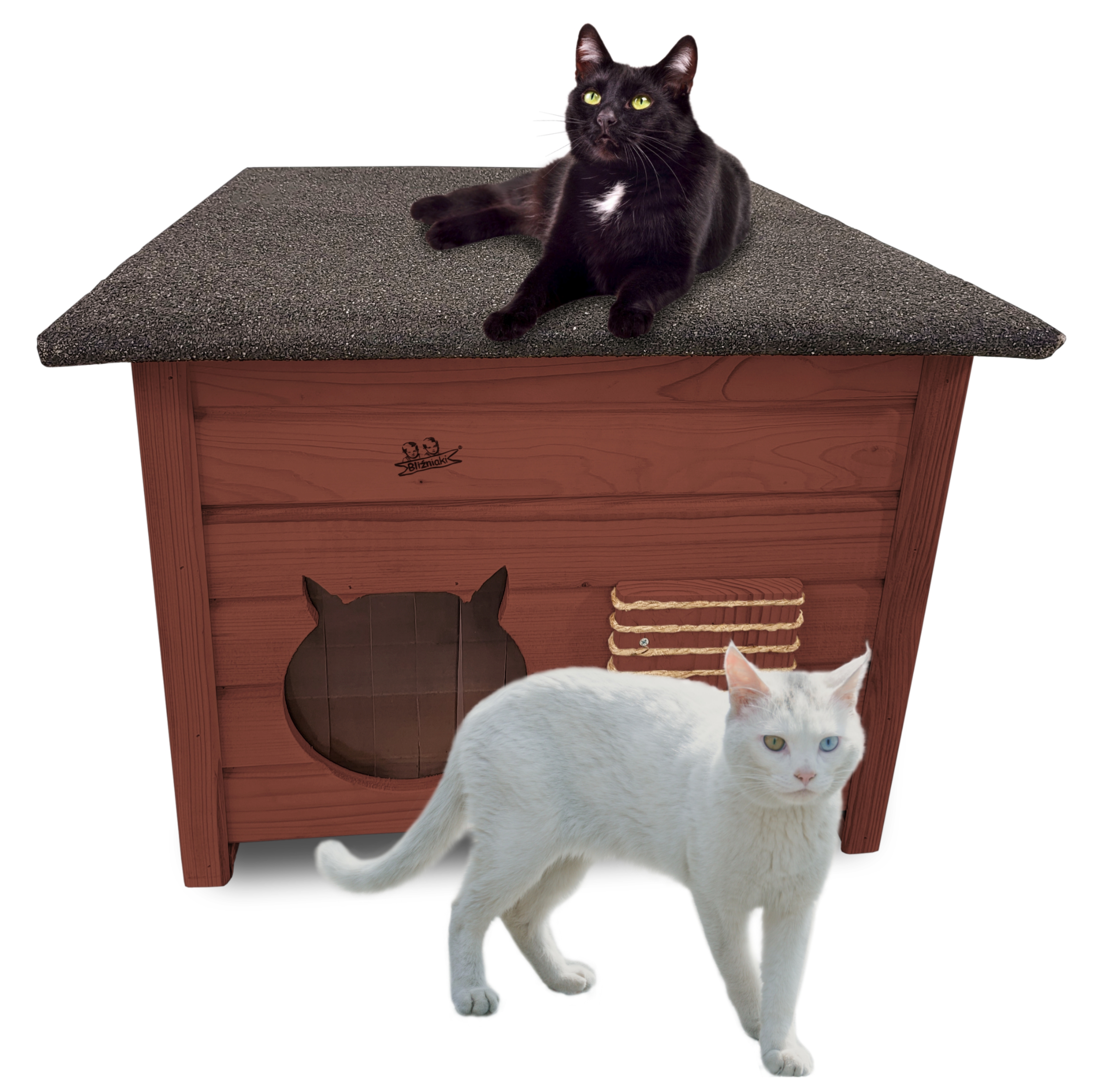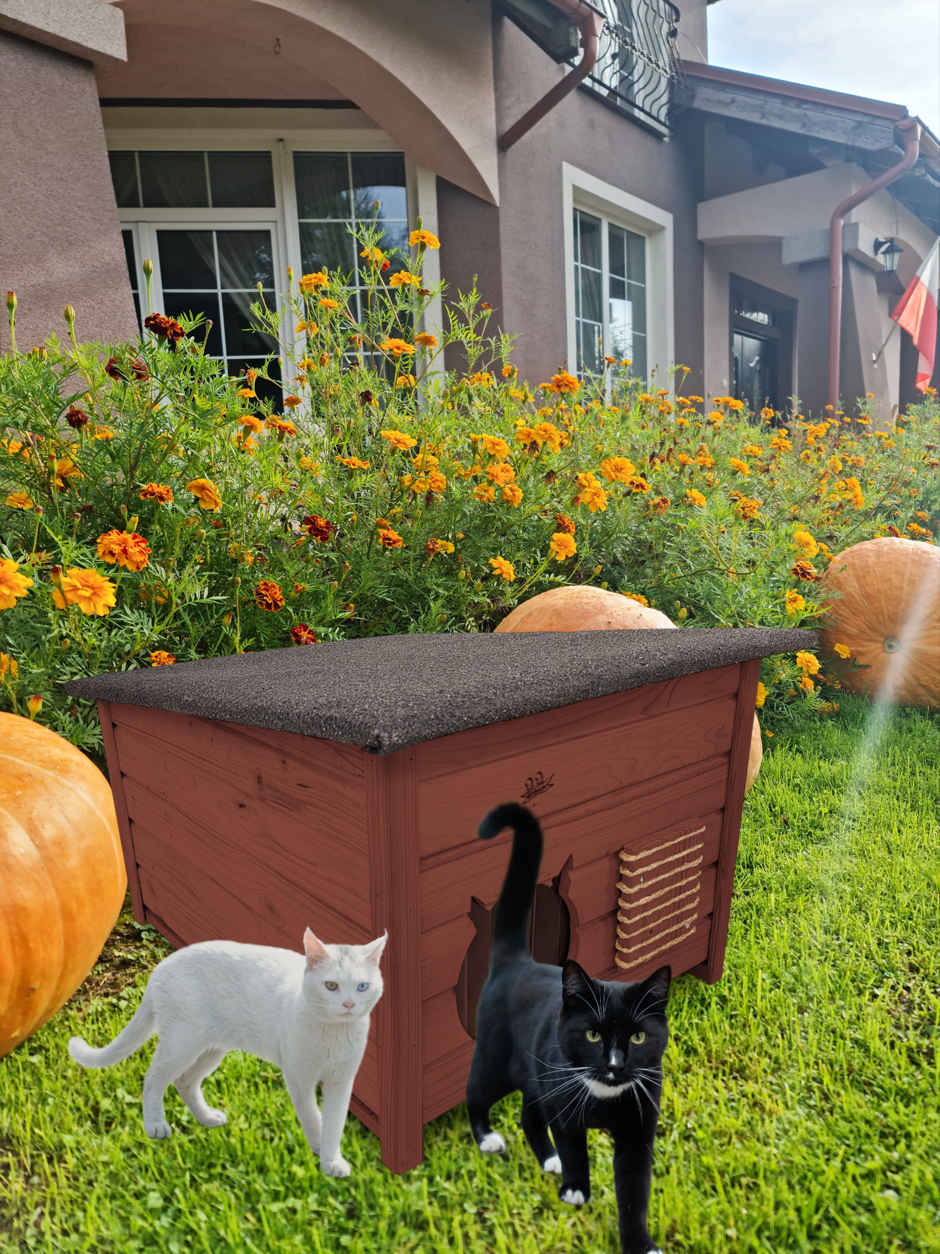Domek zapewni kotom spokojne, komfortowe miejsce odpoczynku i schronienie przed zimnem oraz upałami.