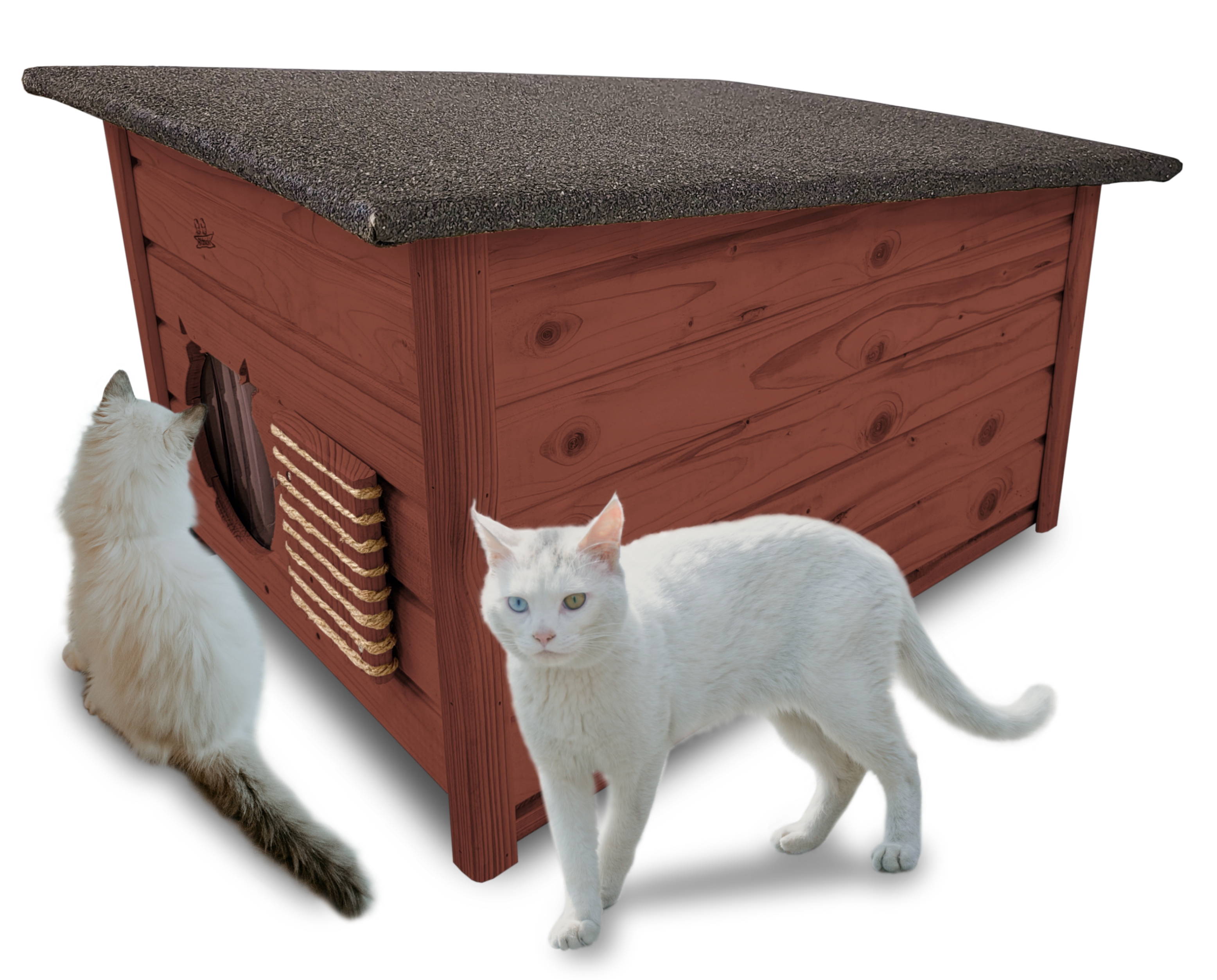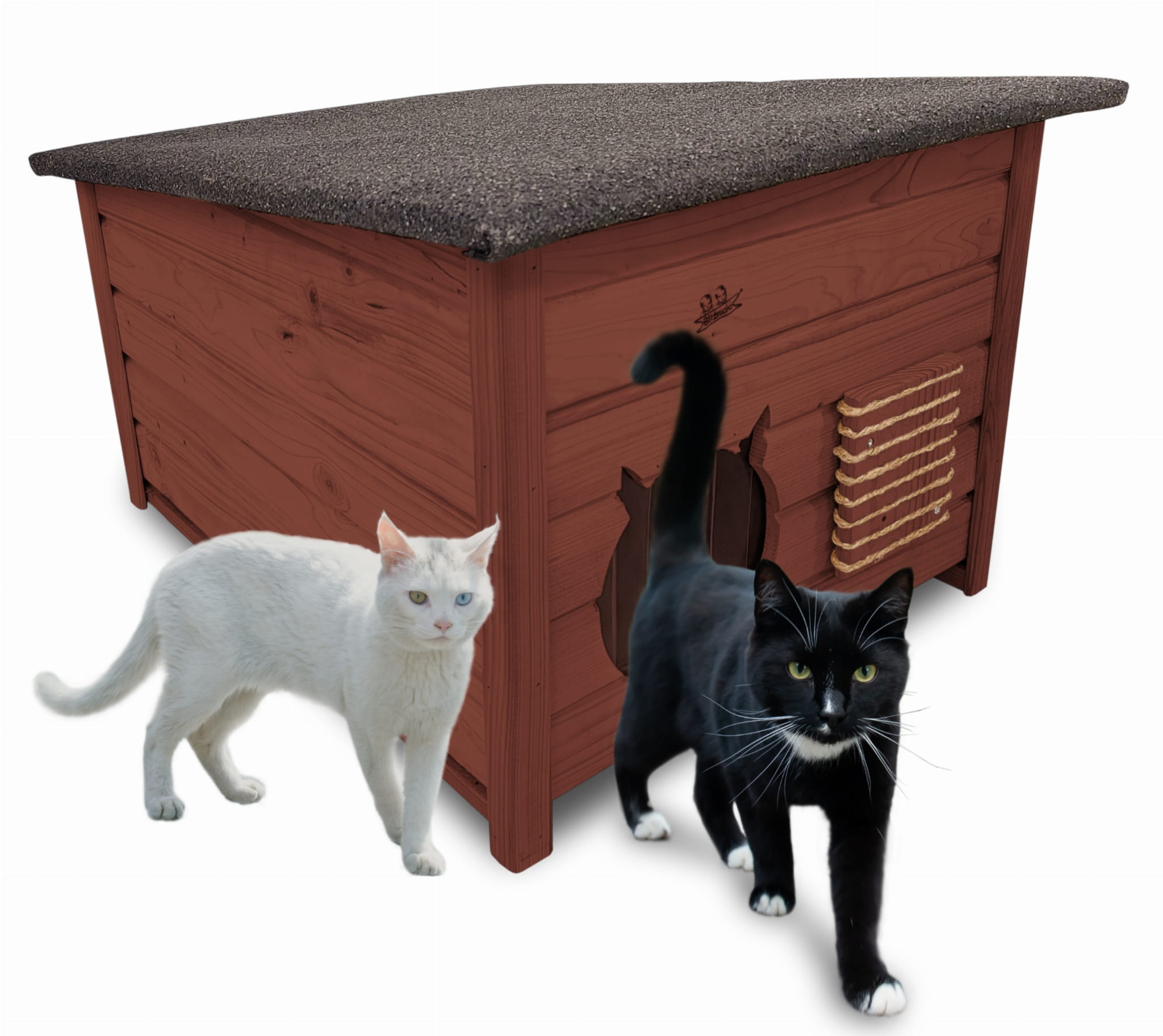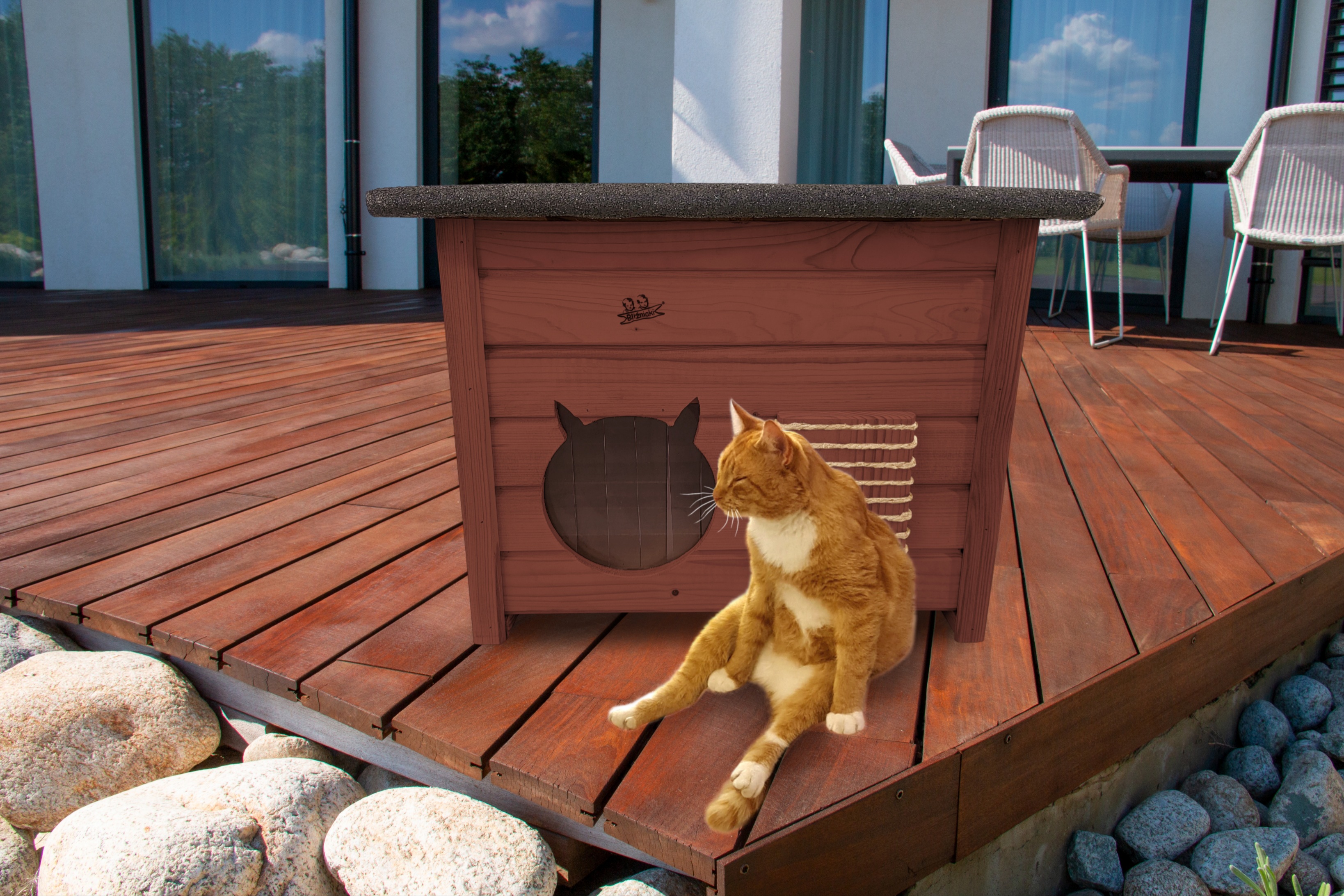 Domek zapewni kotom spokojne, komfortowe miejsce odpoczynku i schronienie przed zimnem oraz upałami.