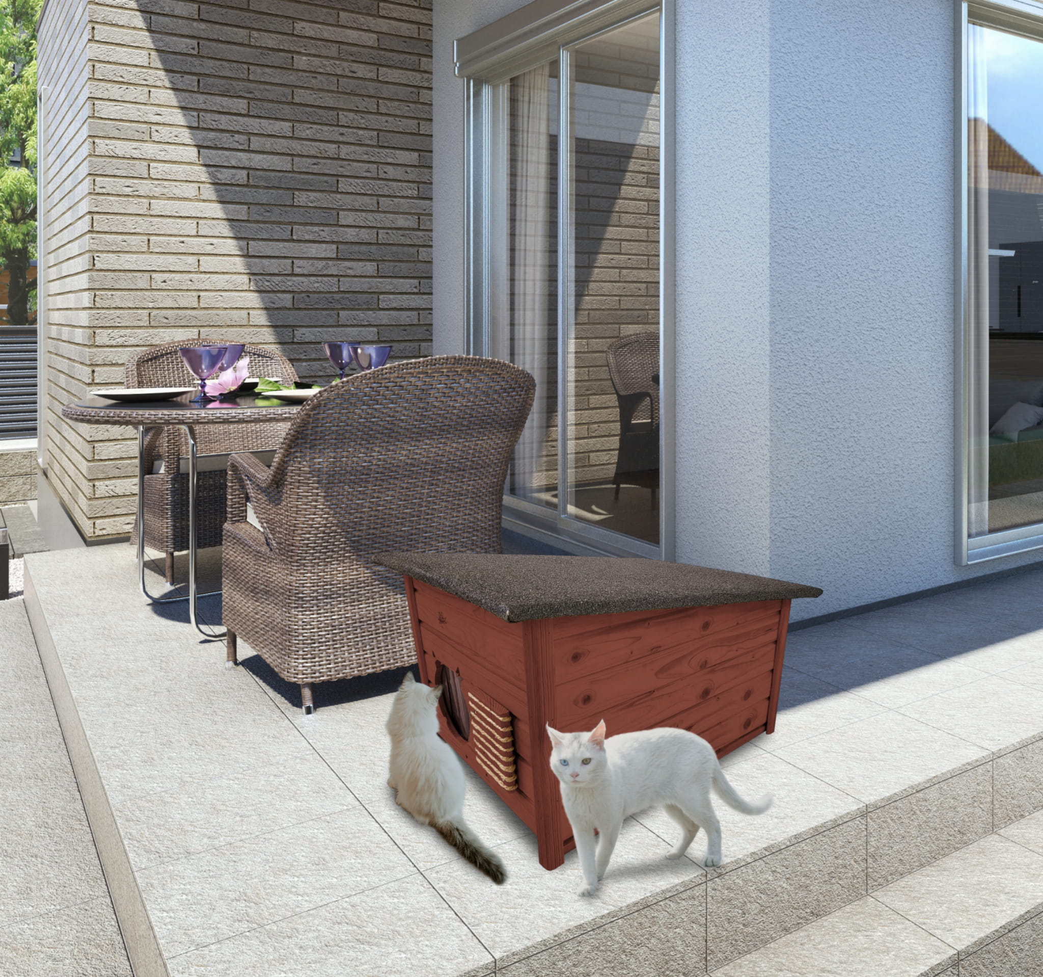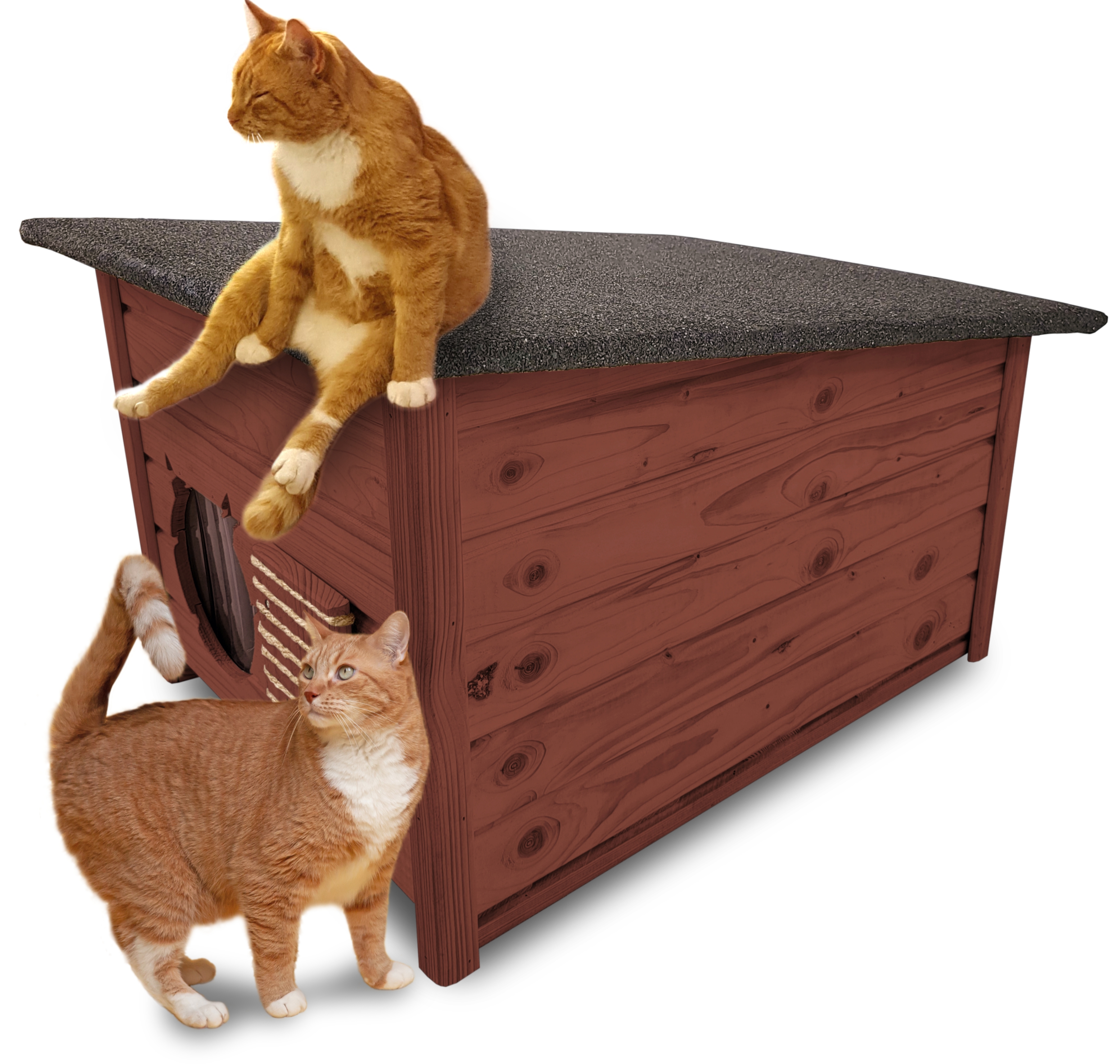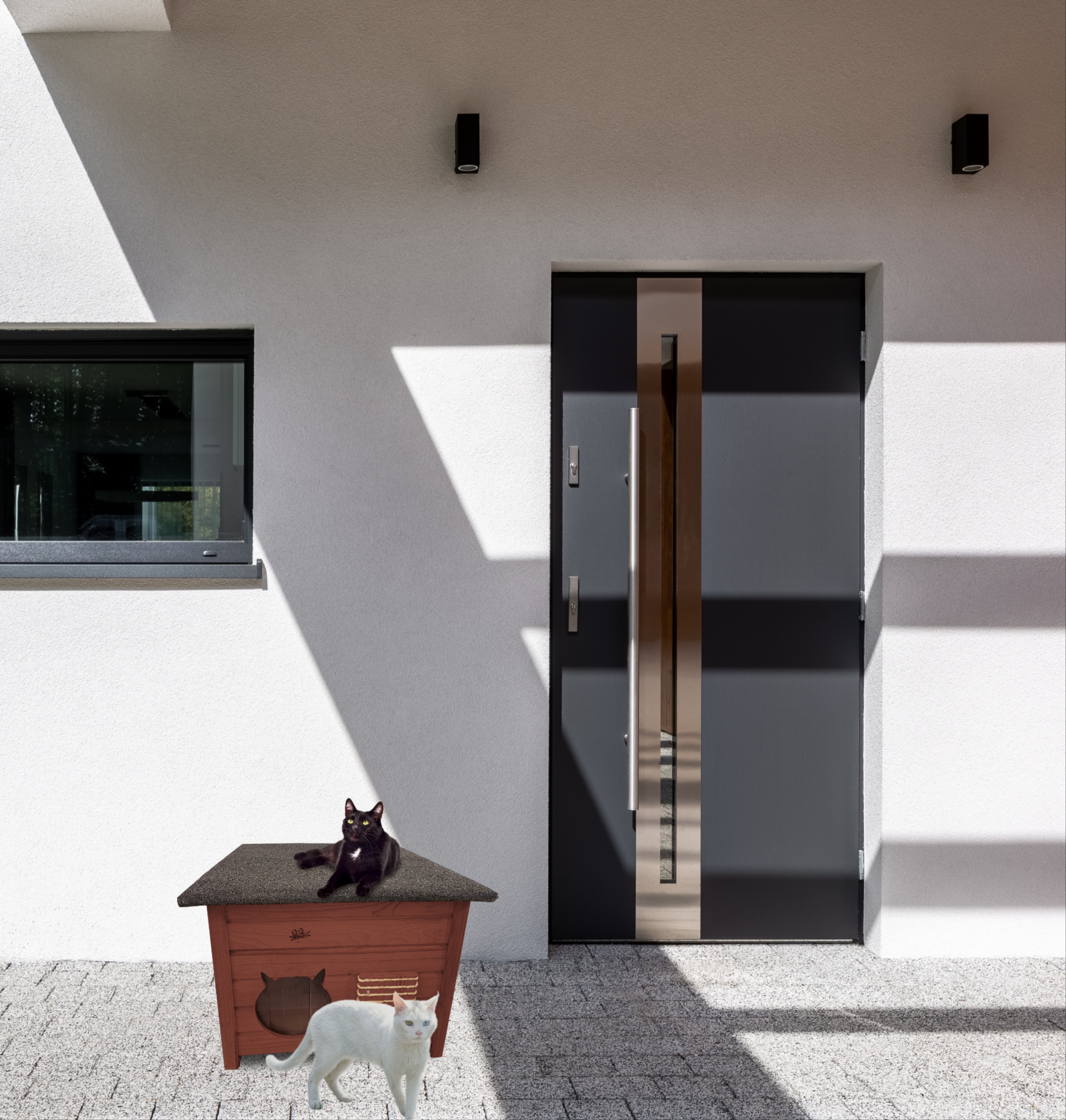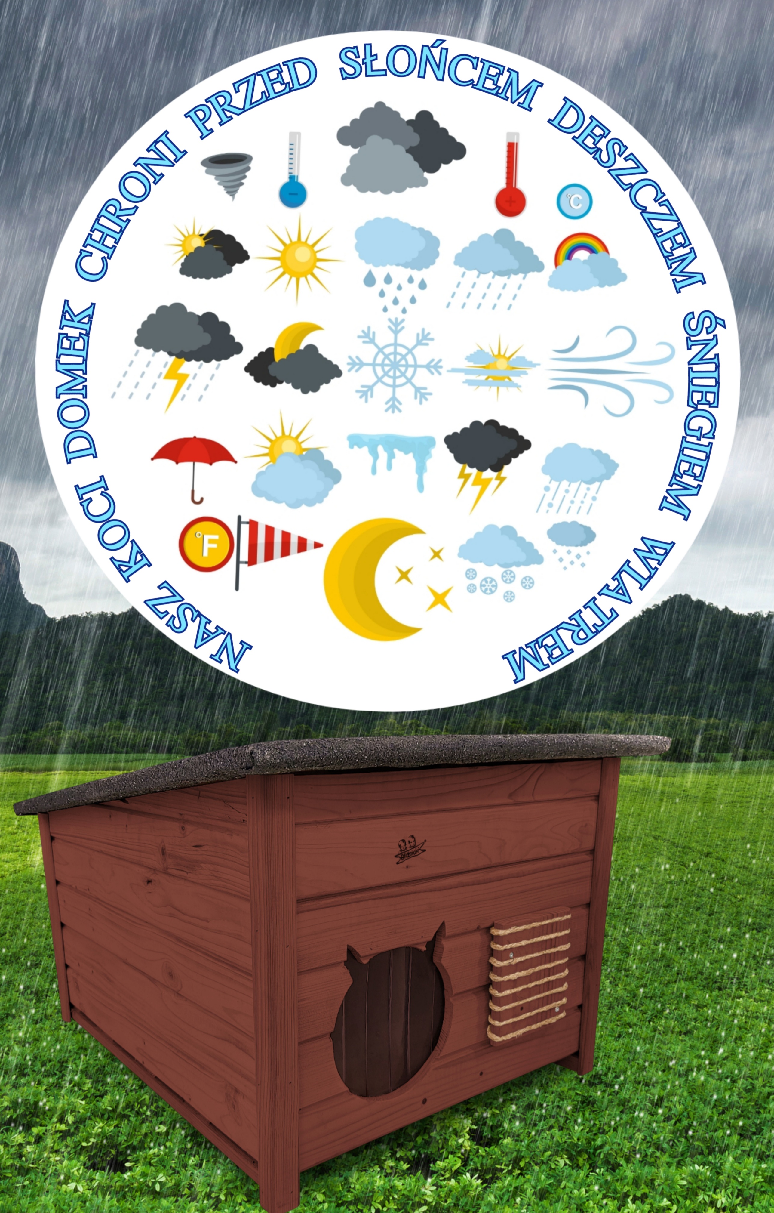 Domek zapewni kotom spokojne, komfortowe miejsce odpoczynku i schronienie przed zimnem oraz upałami.