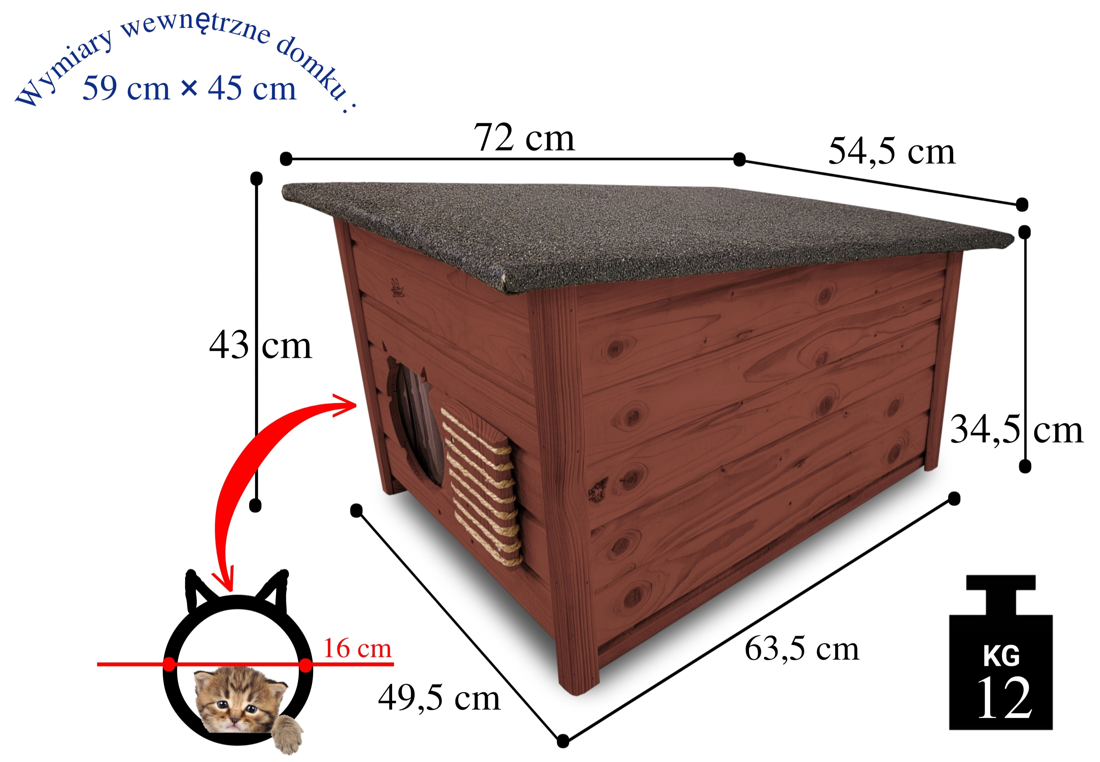 - wejście do domku ma odpowiedni duży otwór 16 cm