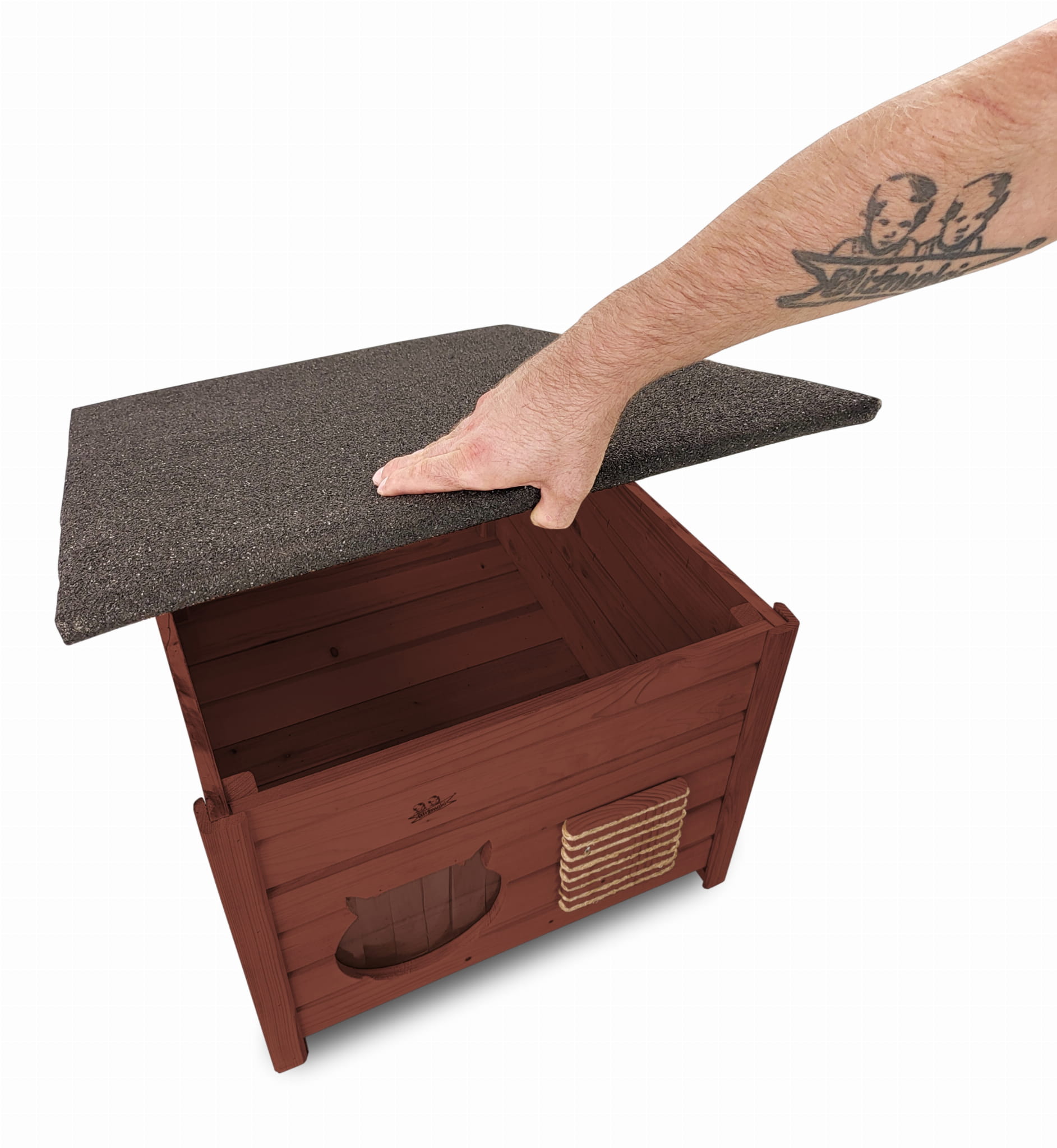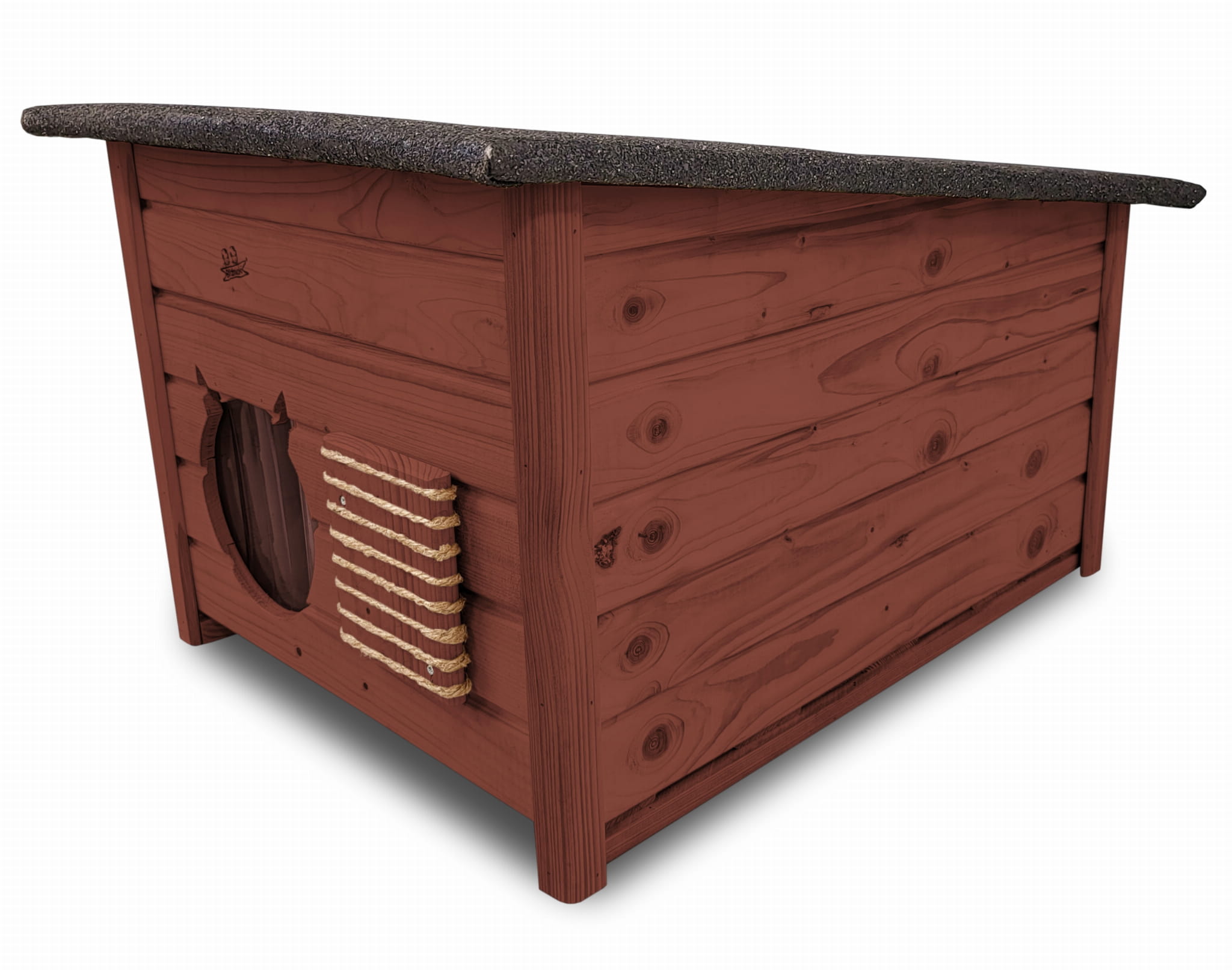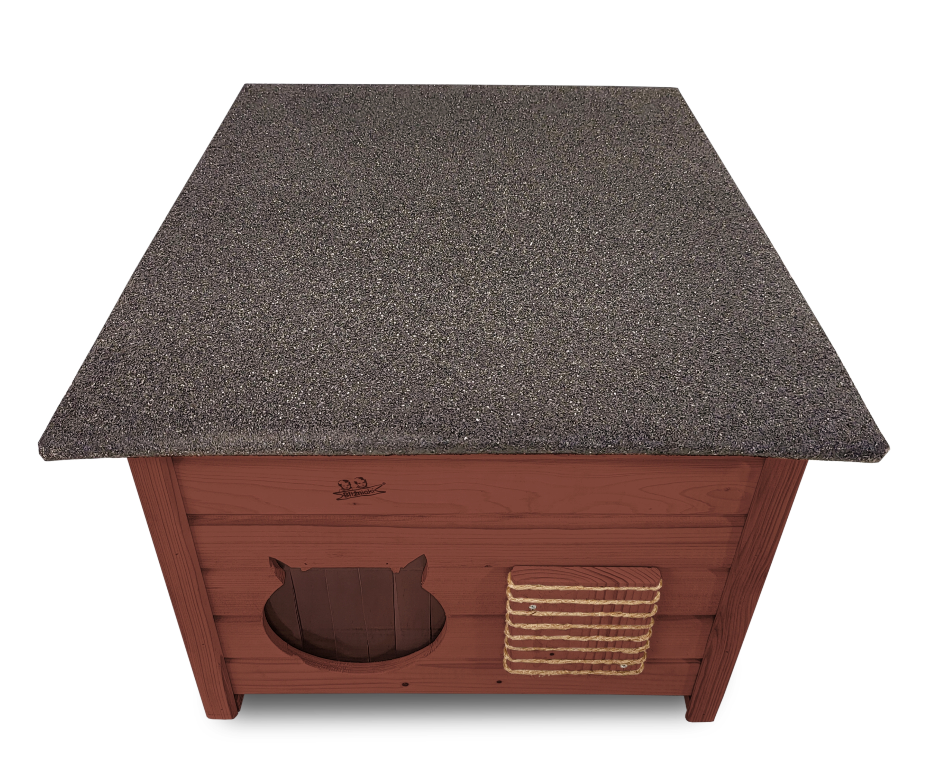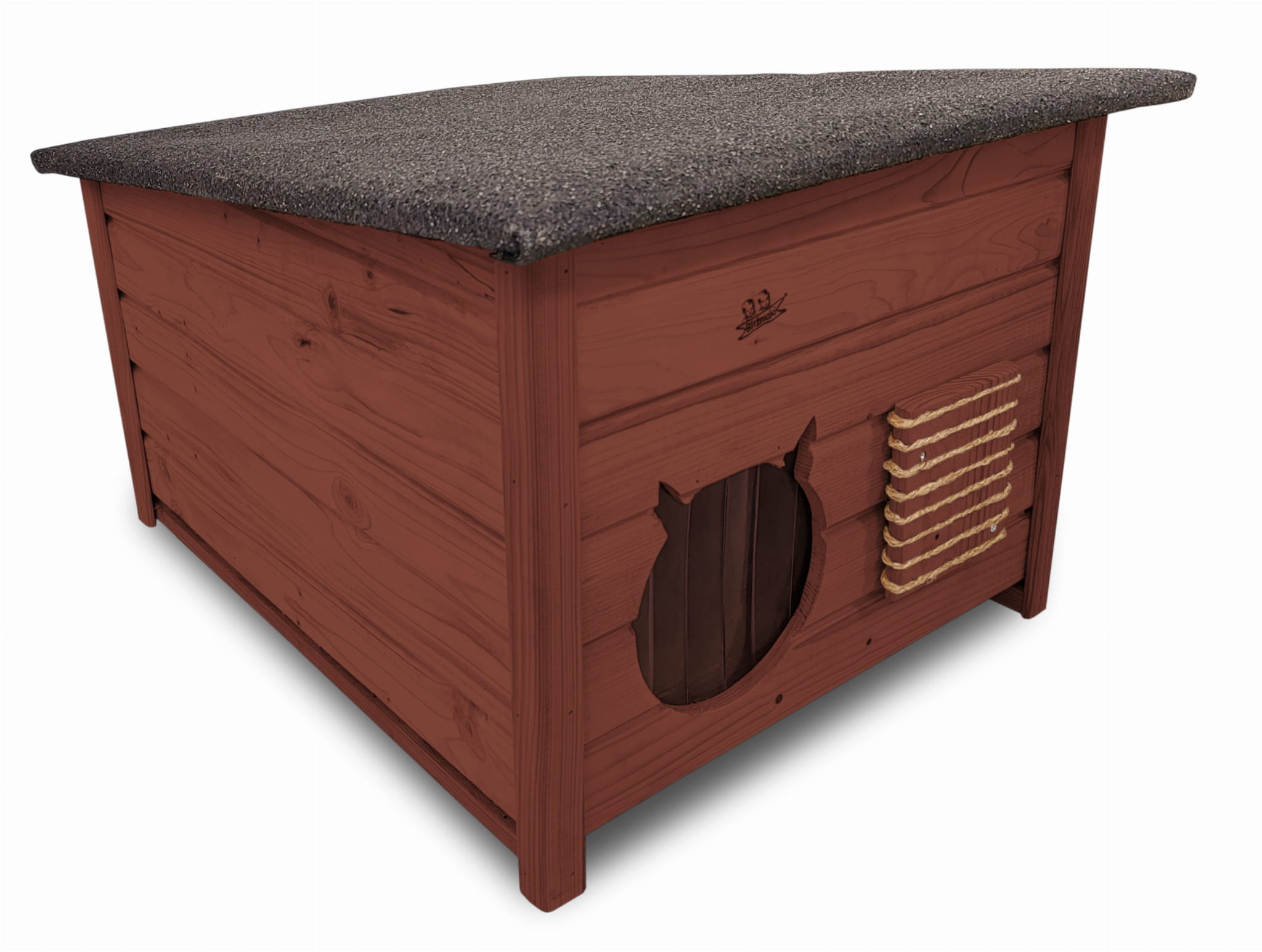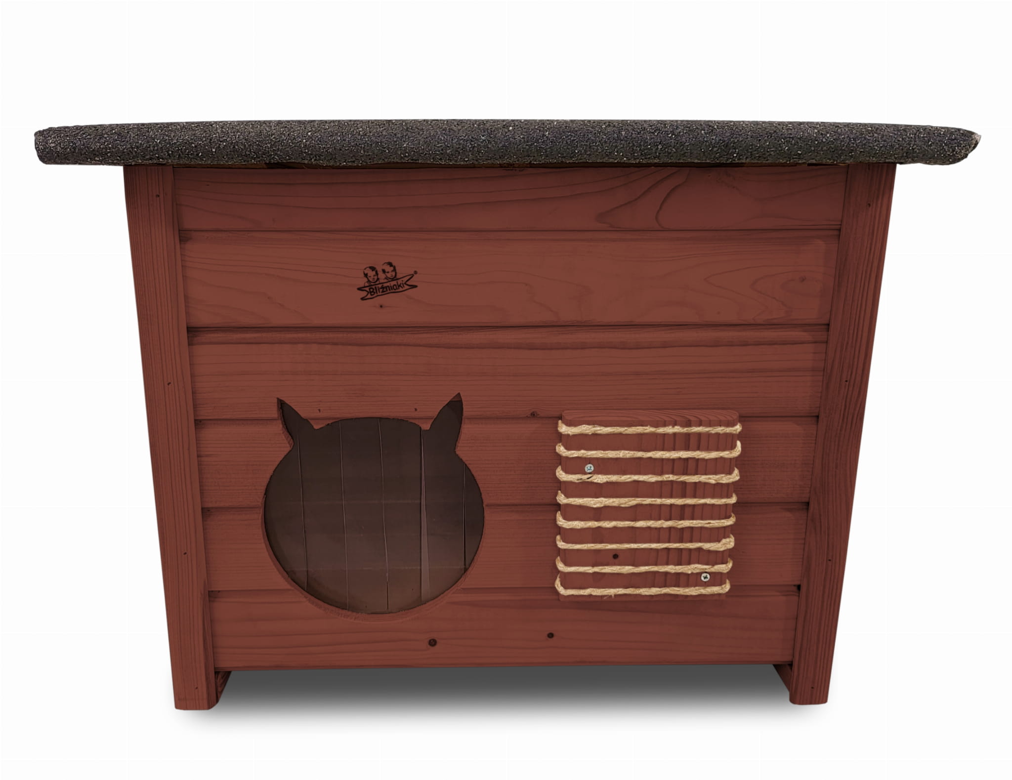 Poddane impregnacji drewno sprawia, że oferowana przez nas DOMEK DLA KOTA jest odporna na szkodliwe działanie wody oraz wilgoci, promieni UV, a także grzybów i pleśni a przy tym ma piękny ORZECHOWY kolor drewna.