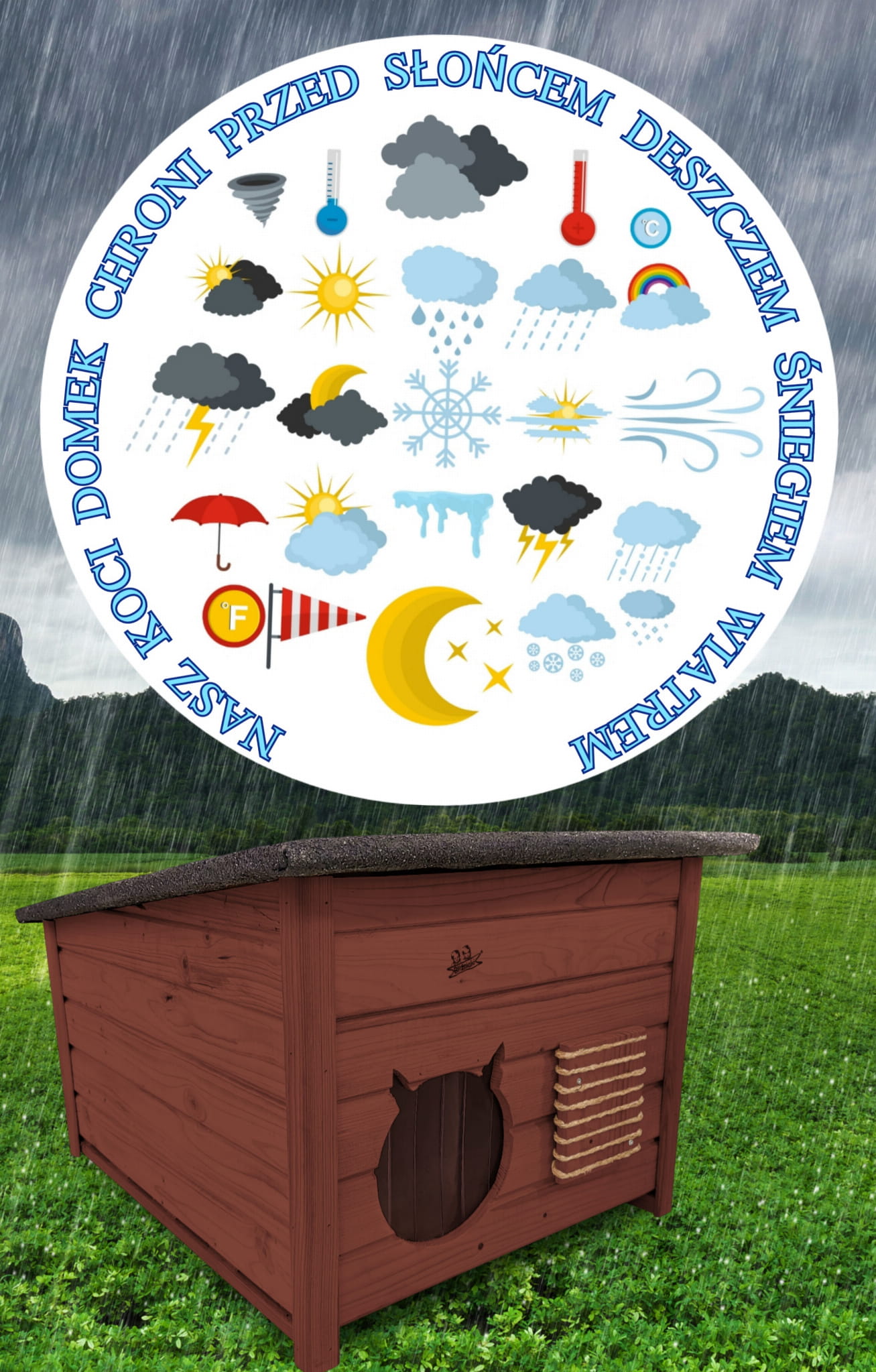 Produkt DOMEK DLA KOTA został zaimpregnowany środkiem na bazie wody, co czyni go dekoracyjnym a także przyjaznym dla przyrody.