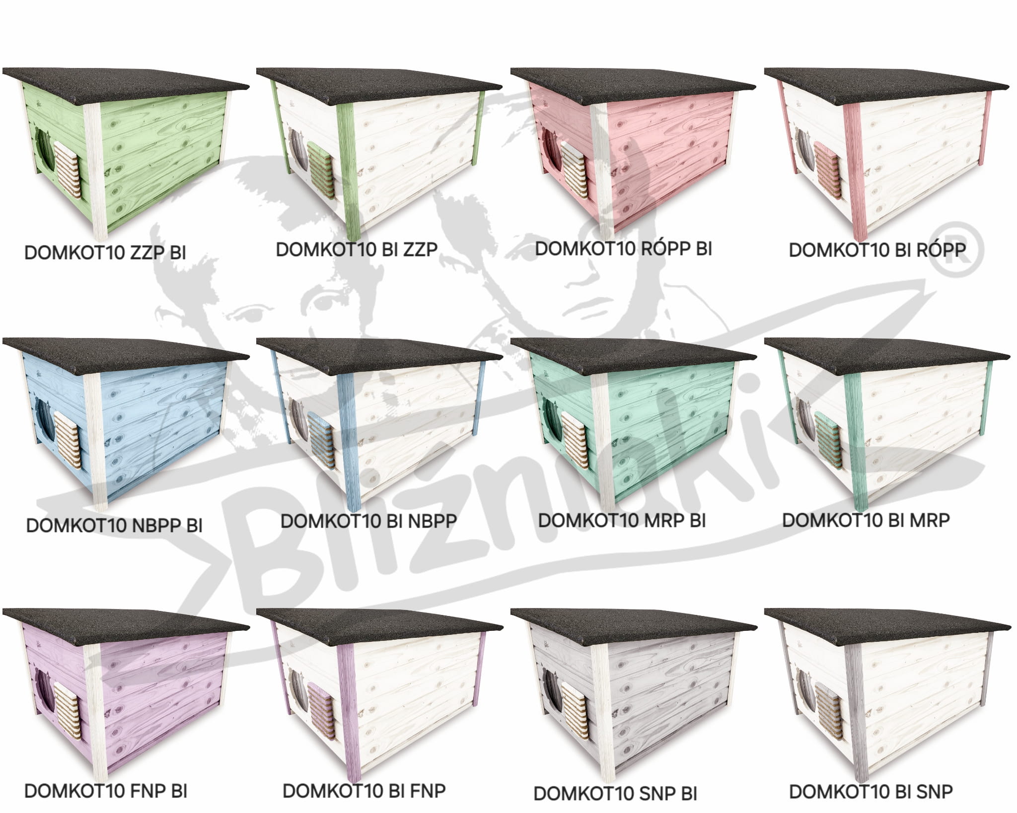 Posiadamy wiele więcej wersji kolorystycznych tego produktu, a także inne modele domków dla kotów. Pełna oferta znajduje się w wariantach, a poniżej na ilustracji katalogowej przedstawione są inne kolorystyczne opcje tego produktu wraz z ich symbolem modelu.