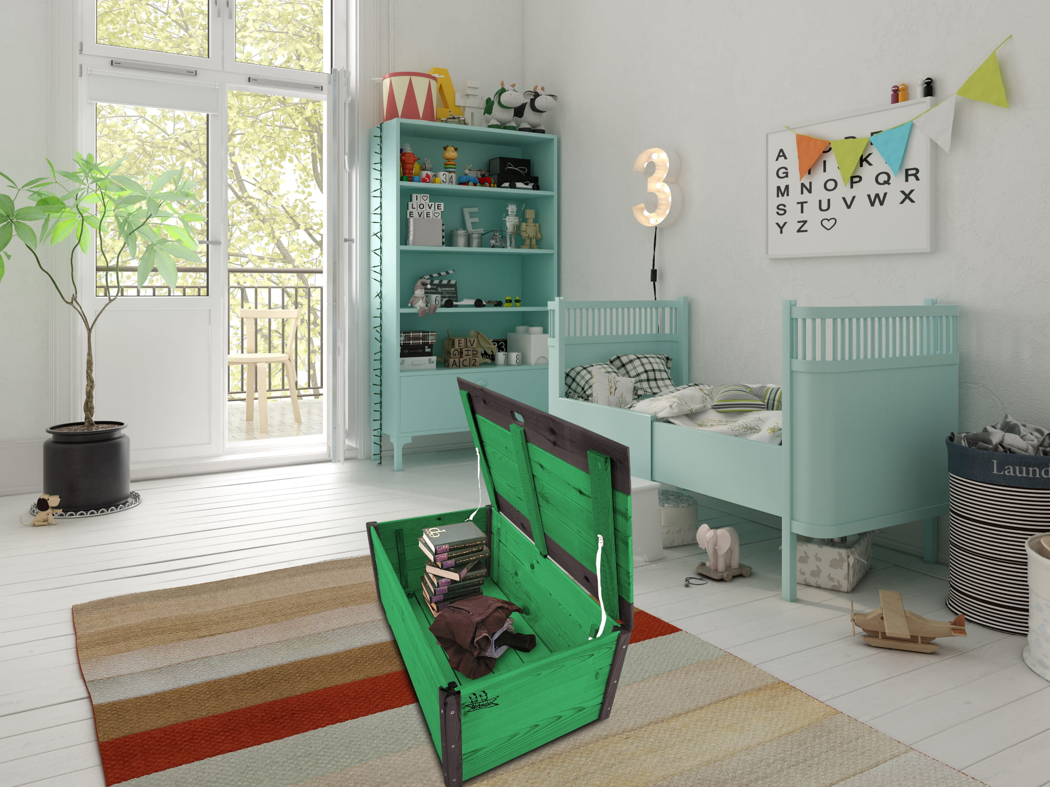 Pojemnik na zabawki będzie idealnie komponować się z pozostałymi produktami drewnianymi z naszych ofert, które dają możliwość dowolnego mieszania zestawu tak, by dopasować go do wielkości pomieszczenia oraz potrzeb i wieku małego mieszkańca.