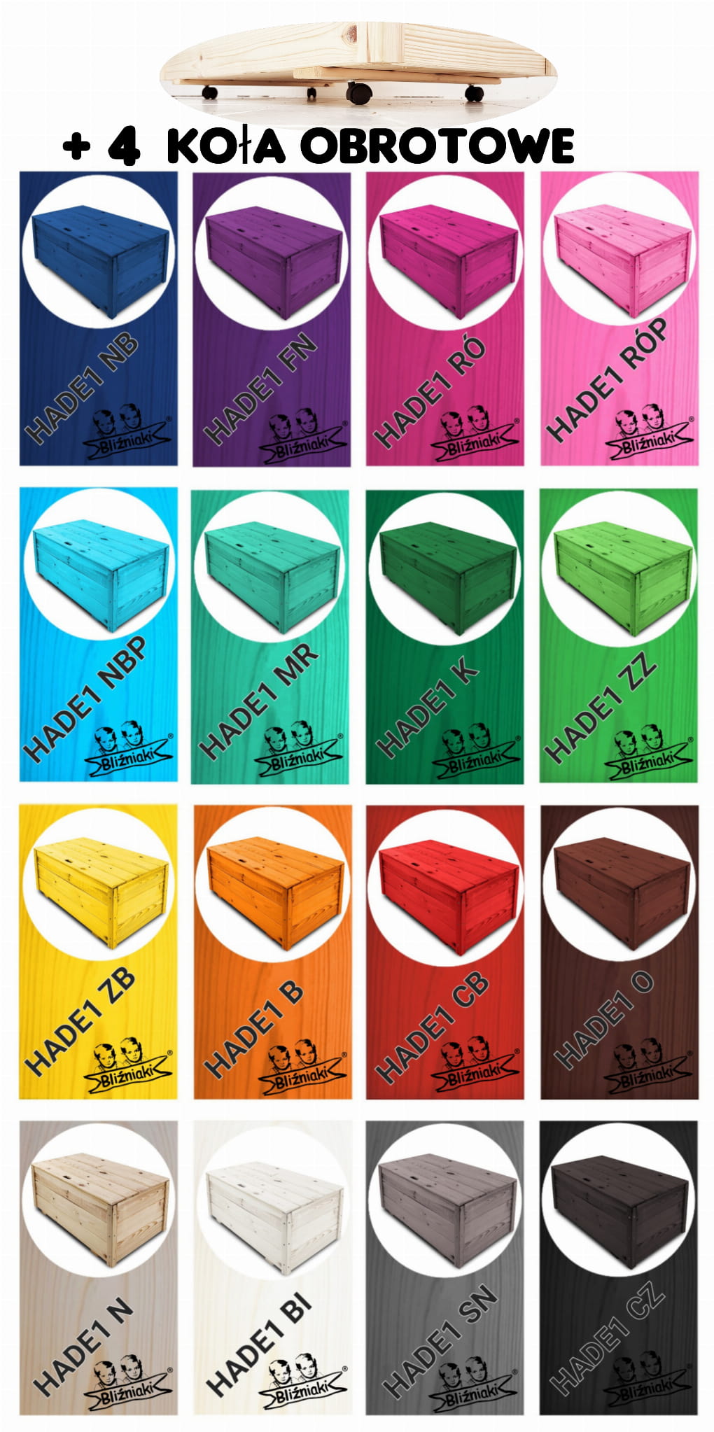 Skrzynia jest dostępna również w innej kolorystyce. Poniżej tabela z wzorami kolorów tego modelu.