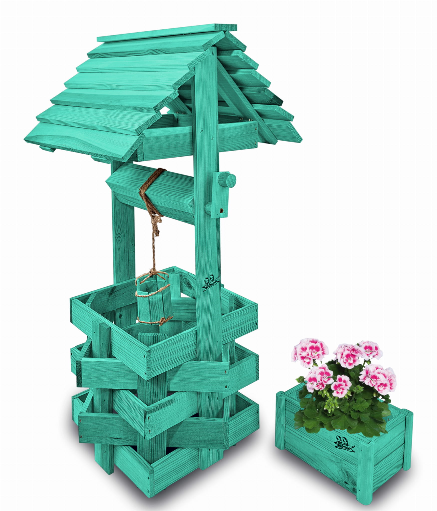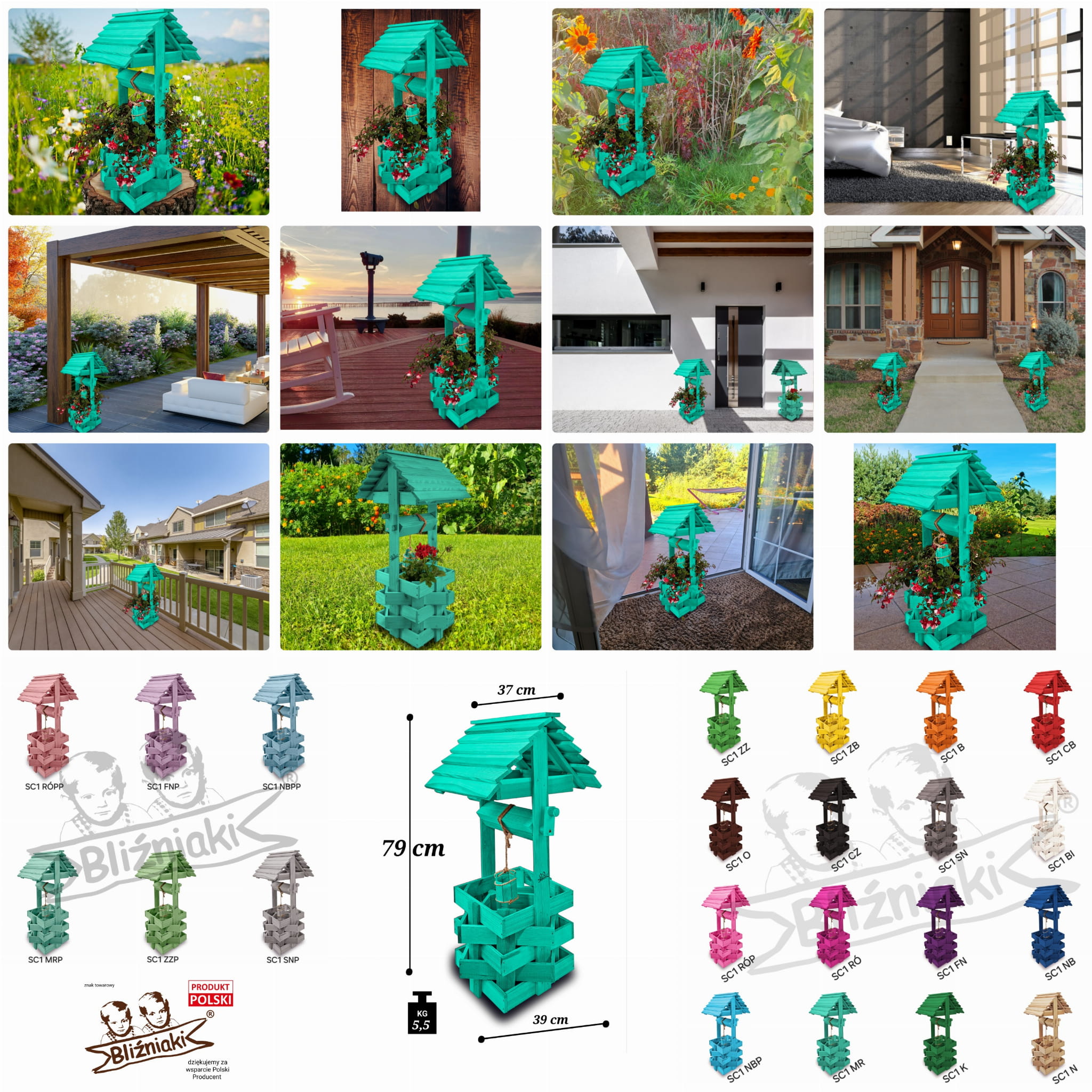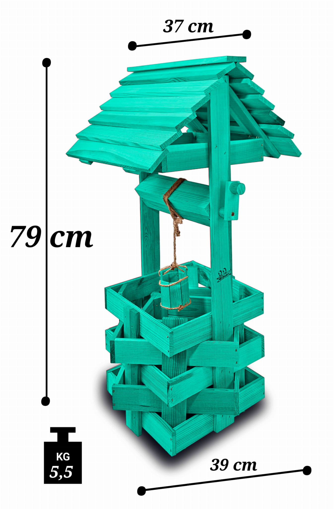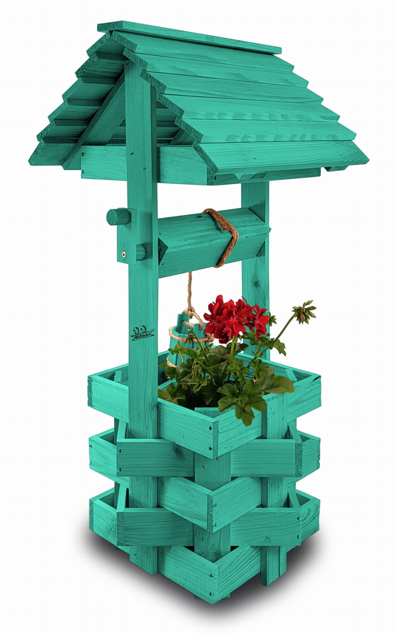 Duża studnia Drewniana ozdobna donica na pelargonie Kwietnik kolor morski Dekoracyjna studzienka do ogrodu Drewniane studnie tarasowe ogrodowe balkonowe Doniczka na kwiaty do domu i ogrodu SC1 MR