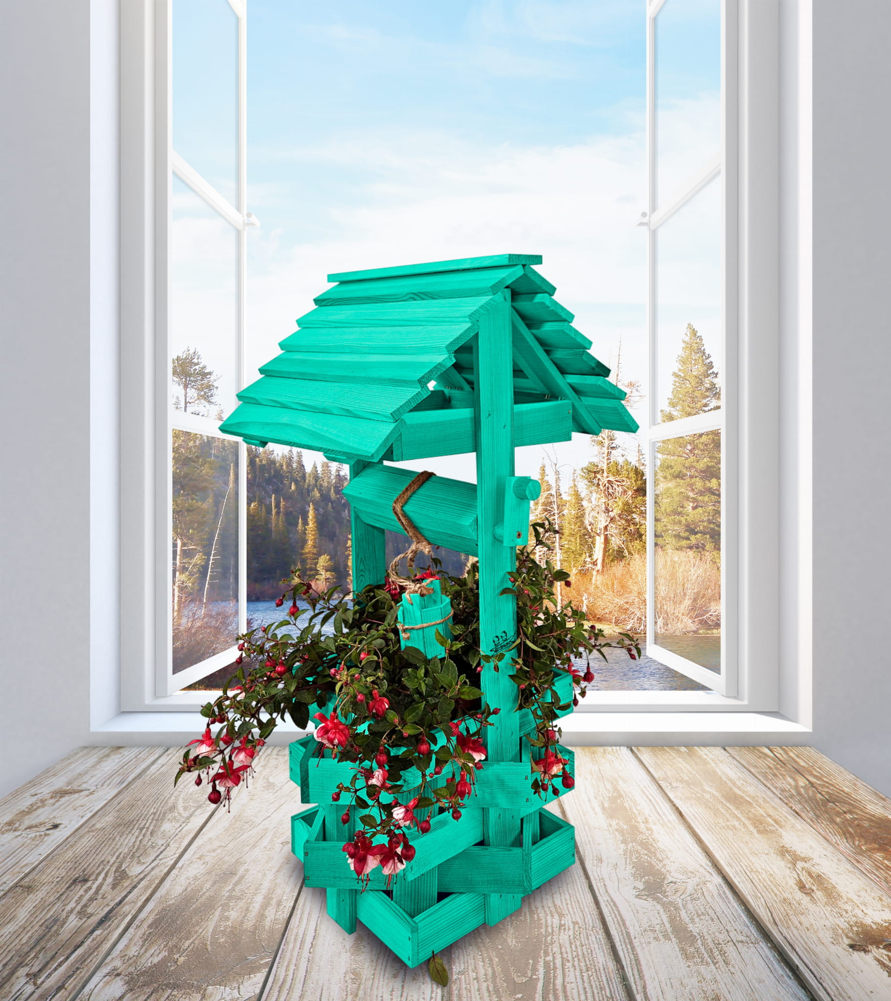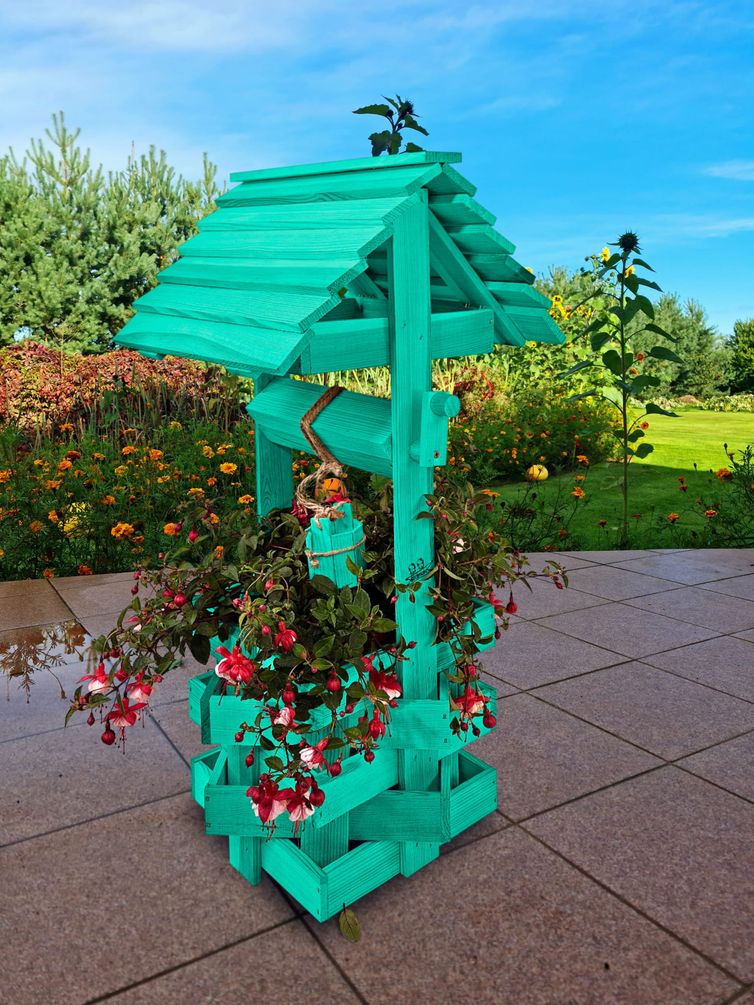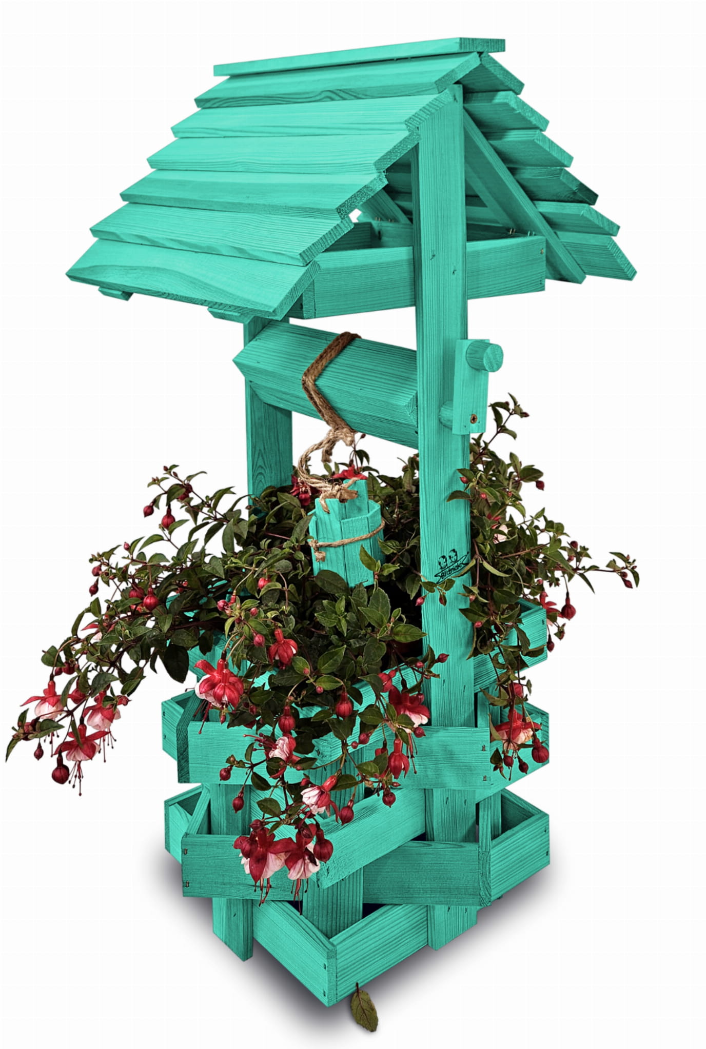 Duża studnia Drewniana ozdobna donica na pelargonie Kwietnik kolor morski Dekoracyjna studzienka do ogrodu Drewniane studnie tarasowe ogrodowe balkonowe Doniczka na kwiaty do domu i ogrodu SC1 MR