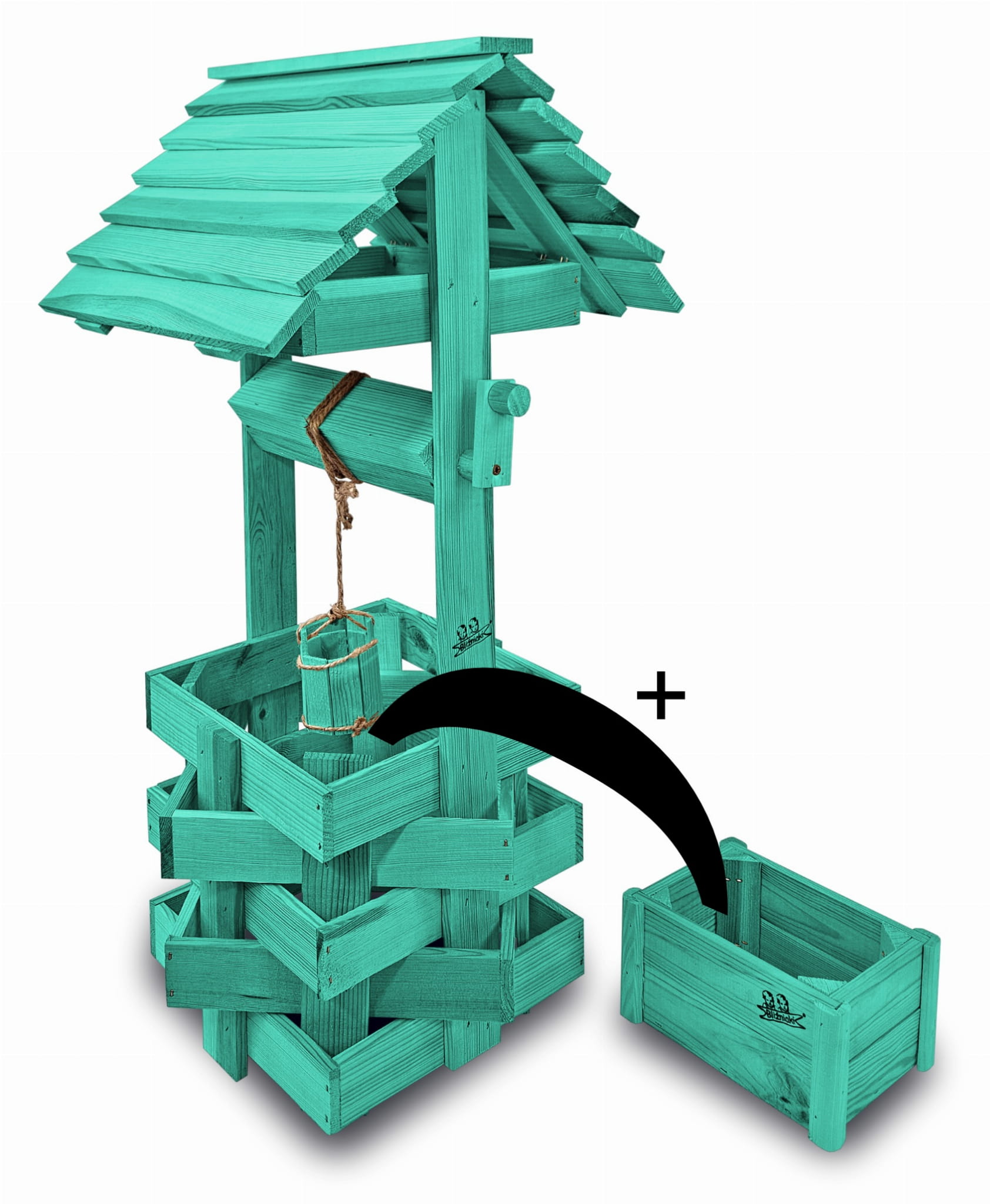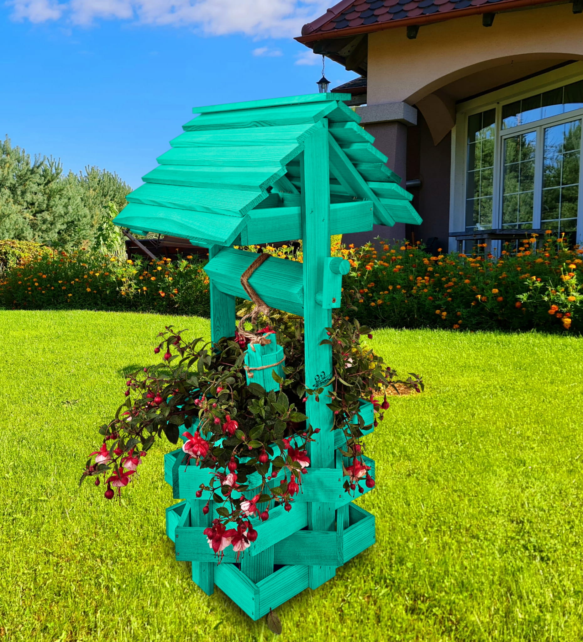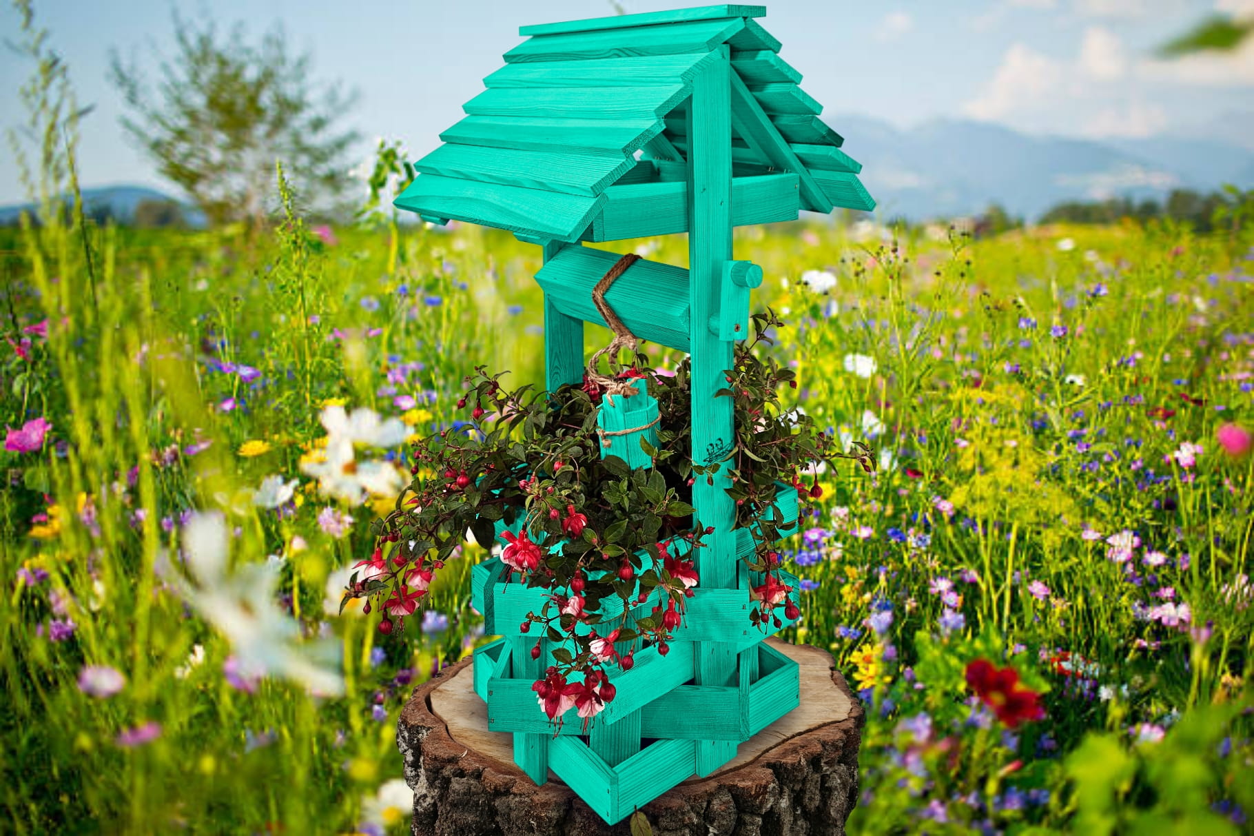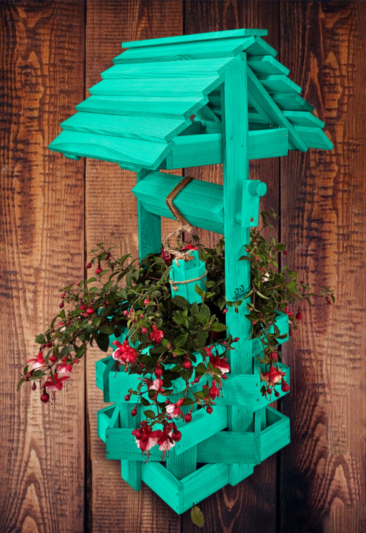 Duża studnia Drewniana ozdobna donica na pelargonie Kwietnik kolor morski Dekoracyjna studzienka do ogrodu Drewniane studnie tarasowe ogrodowe balkonowe Doniczka na kwiaty do domu i ogrodu SC1 MR